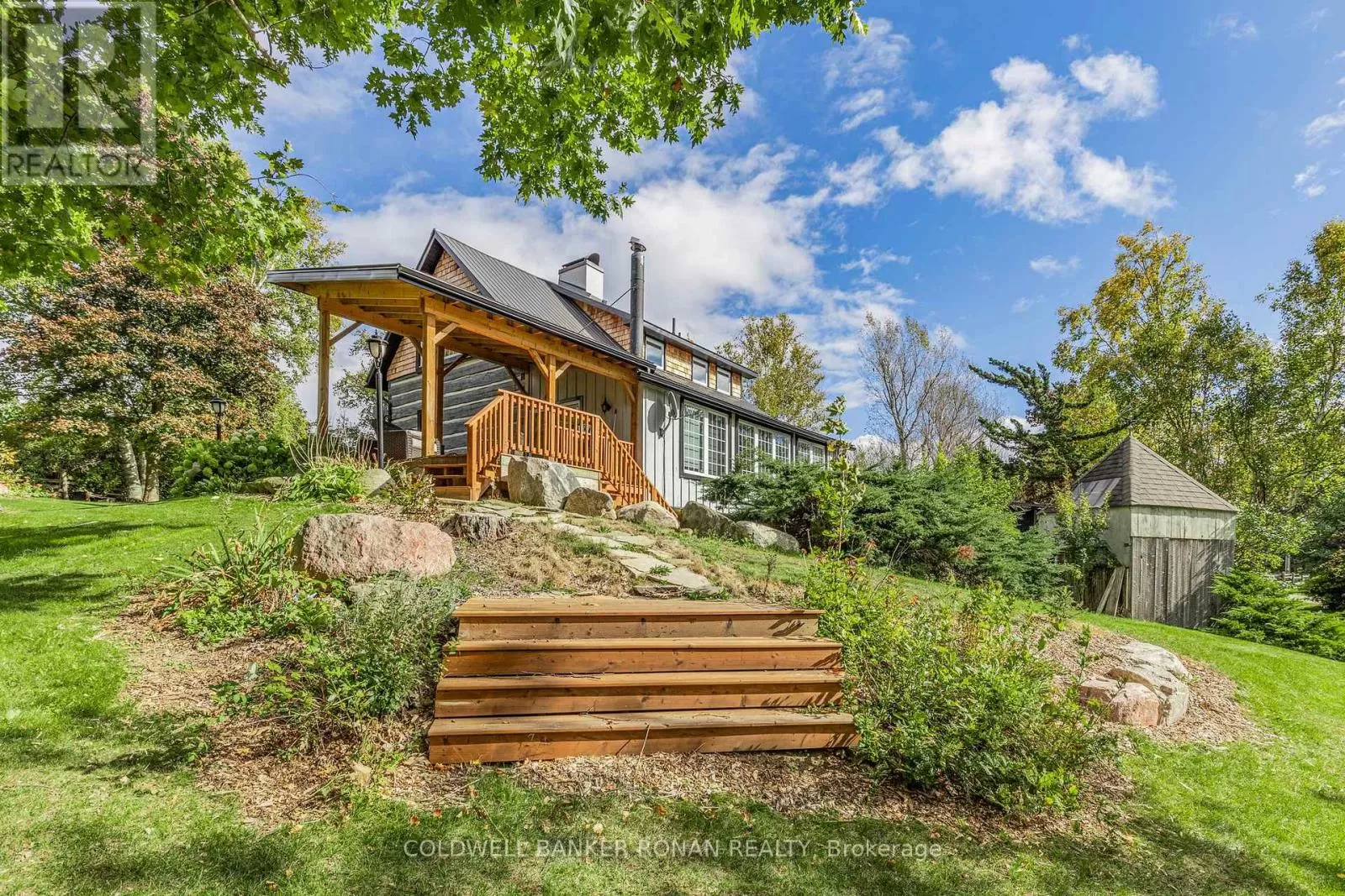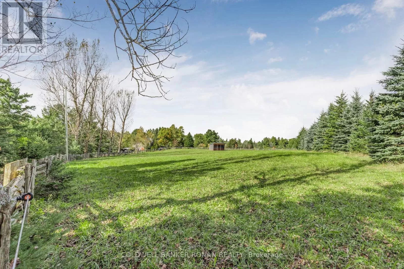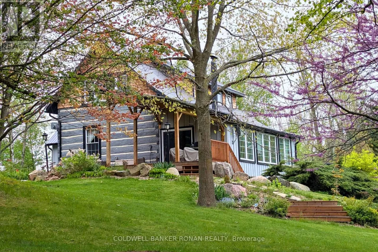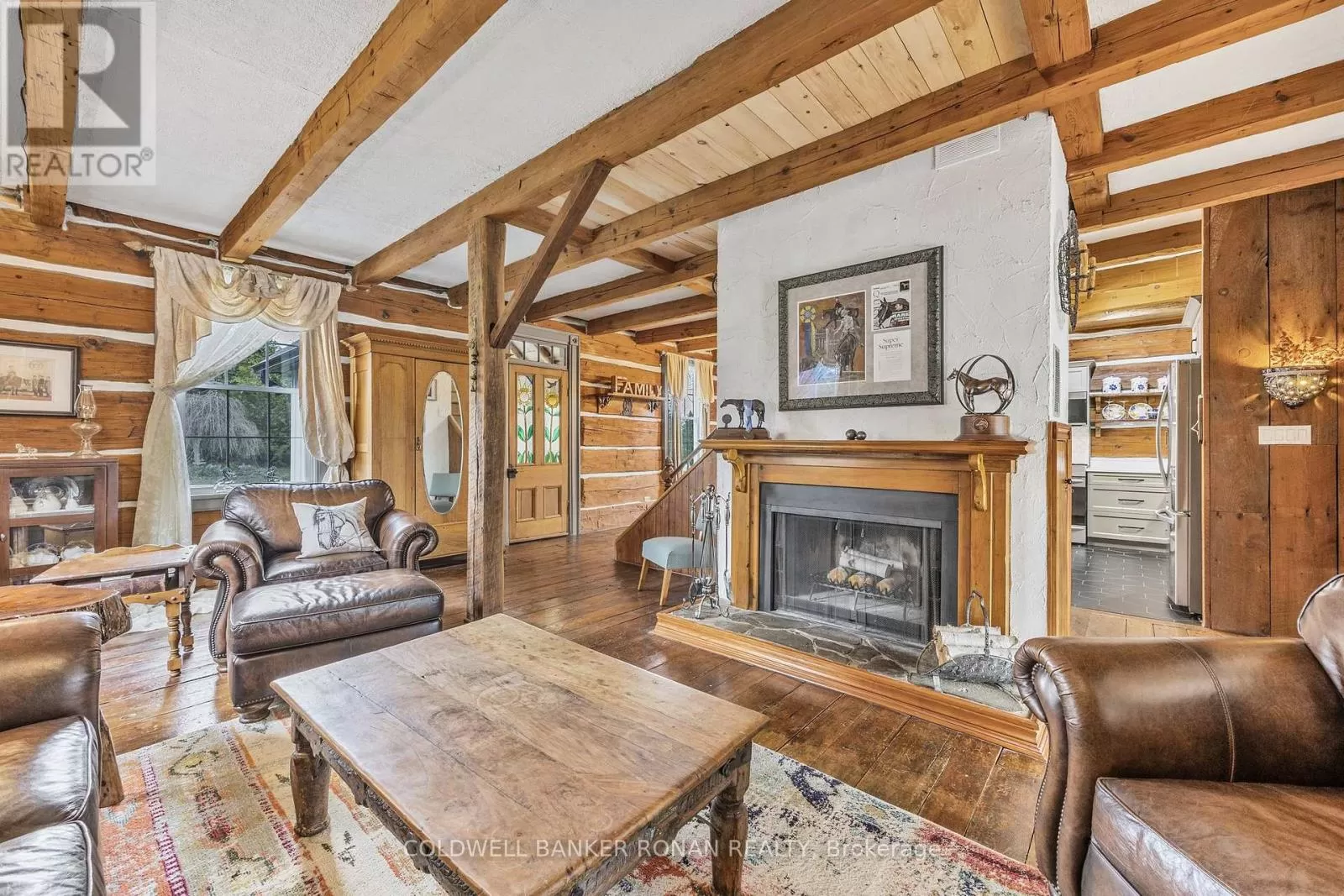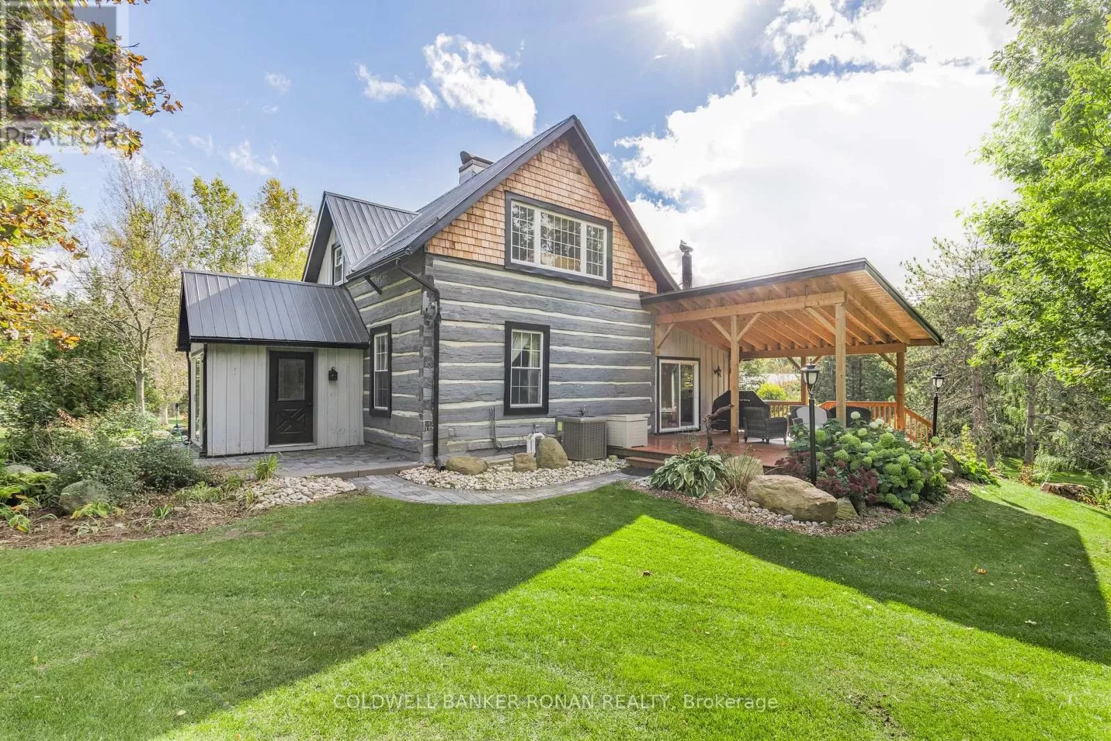 Highway 89 & 4th Line E Discover a blend of heritage and refined country living on this remarkable 44.89-acre estate, where timeless craftsmanship meets peaceful seclusion. Set at the end of a long, private driveway, this extraordinary property offers unmatched privacy, scenic beauty, and a lifestyle of elegance and purpose. At its heart is a stunning Ottawa Valley Log Home, handcrafted initially in the mid-1800s and thoughtfully relocated to its current site in 1976. The home has been beautifully updated while preserving its historic charm, creating a warm, inviting atmosphere that blends rustic character with modern comfort. Ideally suited for equestrian lovers, hobby farmers, or those dreaming of a wellness retreat, the property features three spacious paddocks and a 70' x 150' indoor riding arena with an adjacent heated workshop and three 12' x 12' soft-stall horse stalls providing everything needed for year-round training, events, or personalized care. A classic bank barn and large driveshed both add additional storage and flexibility. The grounds are equally captivating, with rolling trails, mature trees, and open meadows that invite exploration and serenity. A private trout pond adds to the picturesque setting, ideal for moments of reflection or scenic enjoyment from the home's vantage point. Whether your vision includes a tranquil retreat, sustainable farm life, or a luxurious escape from city living, this property delivers the perfect canvas. It's not just a home, it's a rare opportunity to own a piece of Canadian history in a setting that embodies privacy, beauty, and rural sophistication. (id:27476)