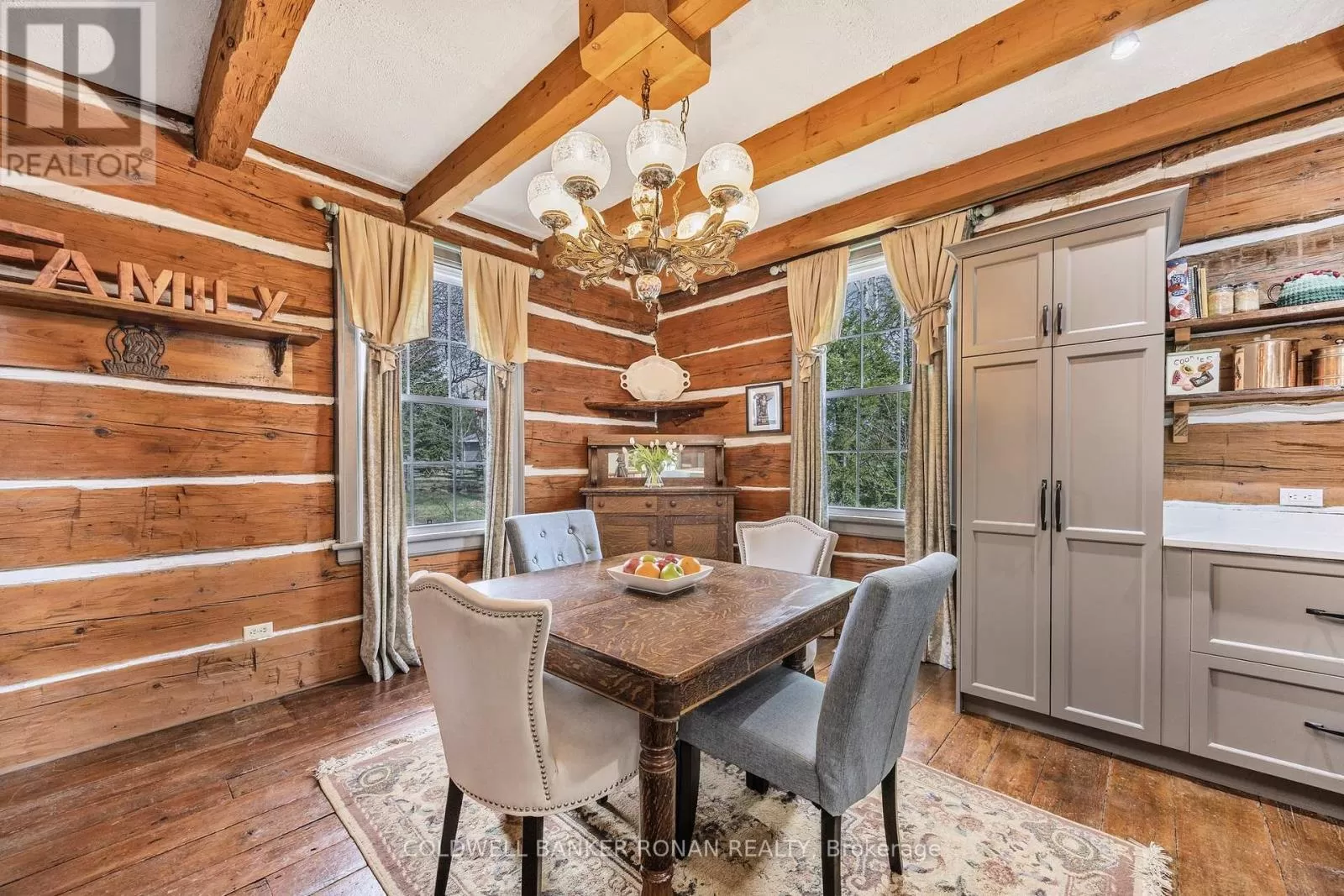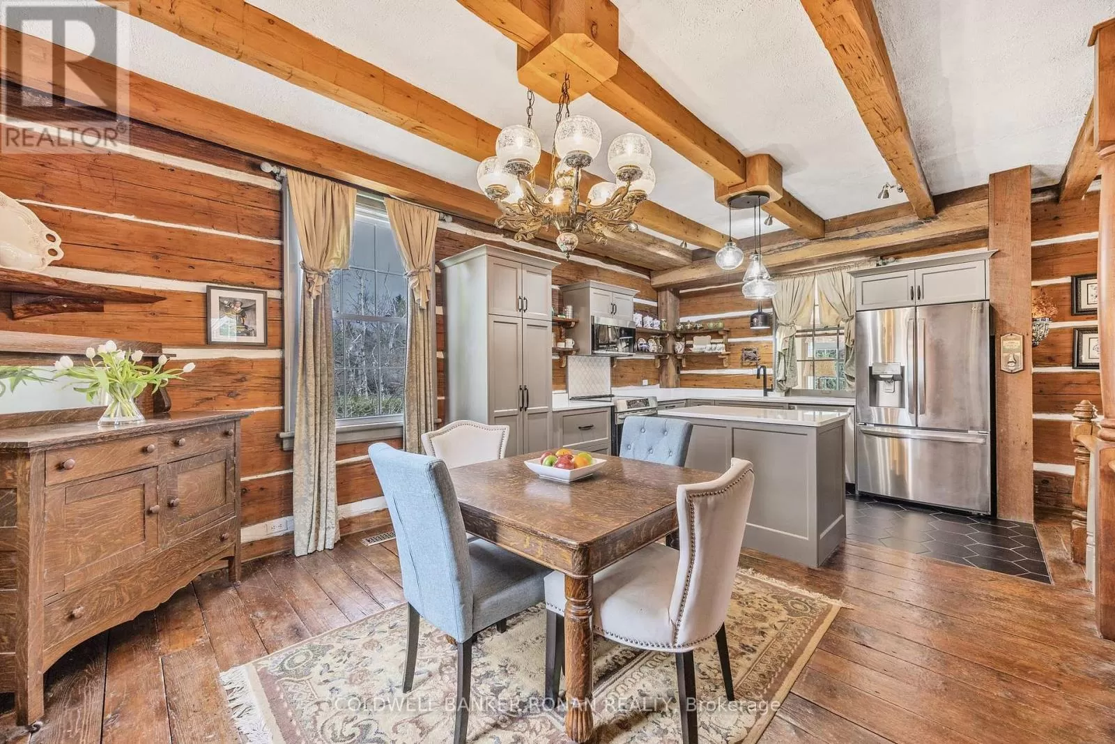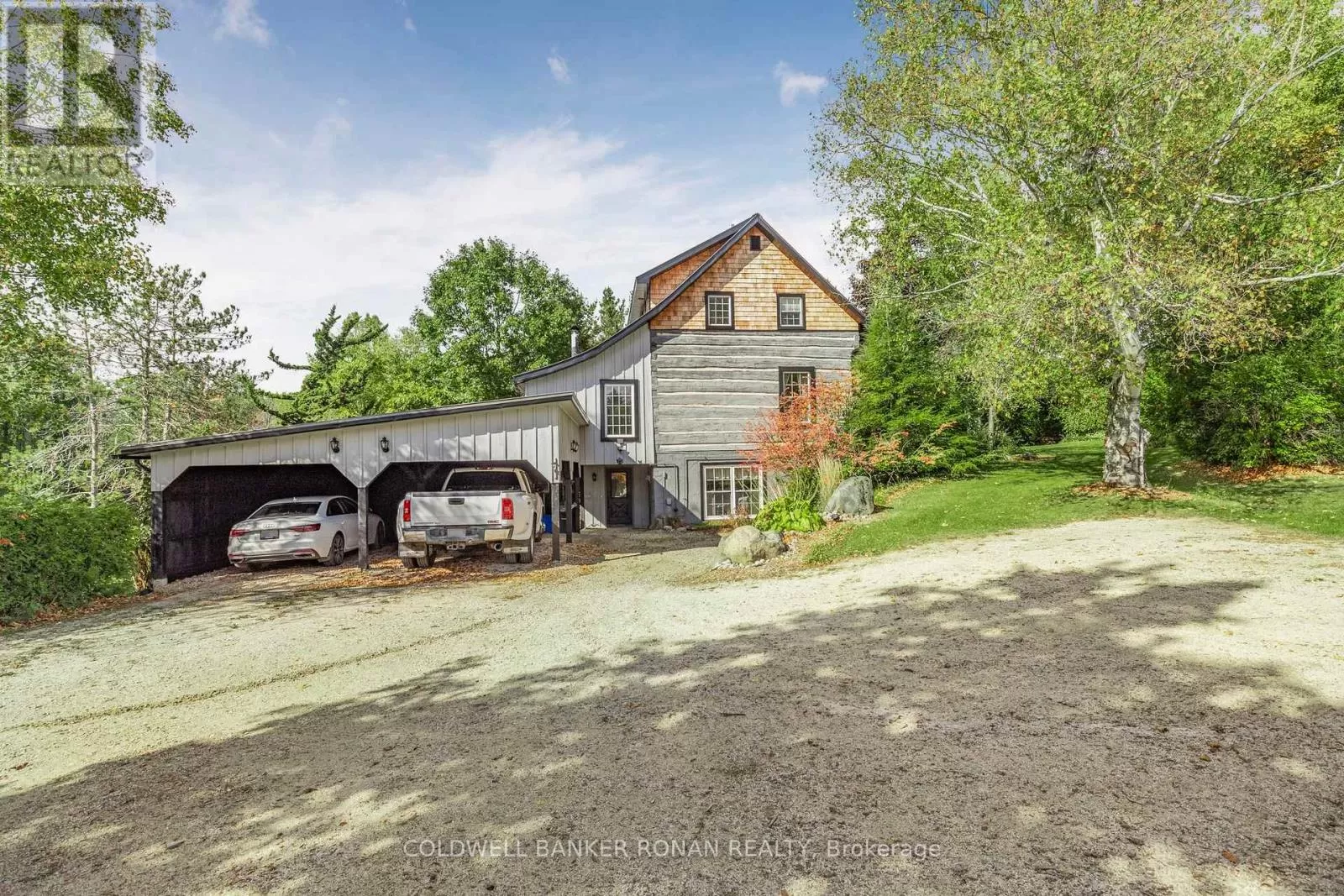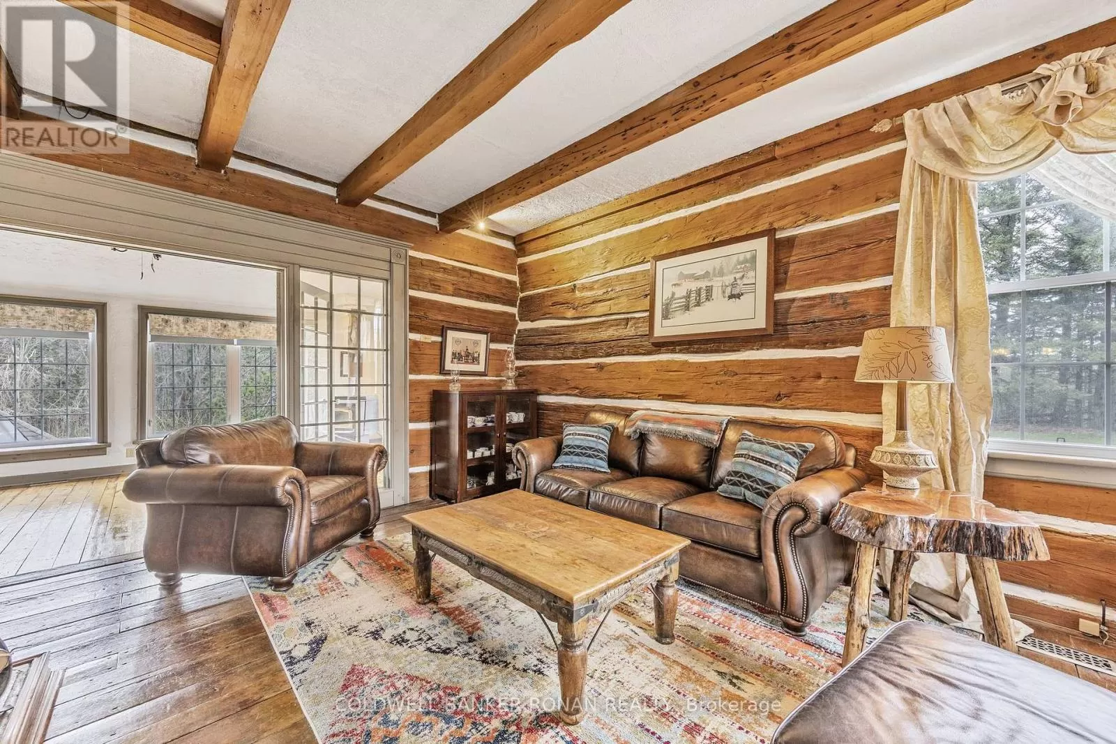 Highway 89 & 4th Line E Discover a blend of heritage and refined country living on this remarkable 44.89-acre estate, where timeless craftsmanship meets peaceful seclusion. Set at the end of a long, private driveway, this extraordinary property offers unmatched privacy, scenic beauty, and a lifestyle of elegance and purpose. At its heart is a stunning Ottawa Valley Log Home, handcrafted initially in the mid-1800s and thoughtfully relocated to its current site in 1976. The home has been beautifully updated while preserving its historic charm, creating a warm, inviting atmosphere that blends rustic character with modern comfort. Ideally suited for equestrian lovers, hobby farmers, or those dreaming of a wellness retreat, the property features three spacious paddocks and a 70' x 150' indoor riding arena with an adjacent heated workshop and three 12' x 12' soft-stall horse stalls providing everything needed for year-round training, events, or personalized care. A classic bank barn and large driveshed both add additional storage and flexibility. The grounds are equally captivating, with rolling trails, mature trees, and open meadows that invite exploration and serenity. A private trout pond adds to the picturesque setting, ideal for moments of reflection or scenic enjoyment from the home's vantage point. Whether your vision includes a tranquil retreat, sustainable farm life, or a luxurious escape from city living, this property delivers the perfect canvas. It's not just a home, it's a rare opportunity to own a piece of Canadian history in a setting that embodies privacy, beauty, and rural sophistication. (id:27476)