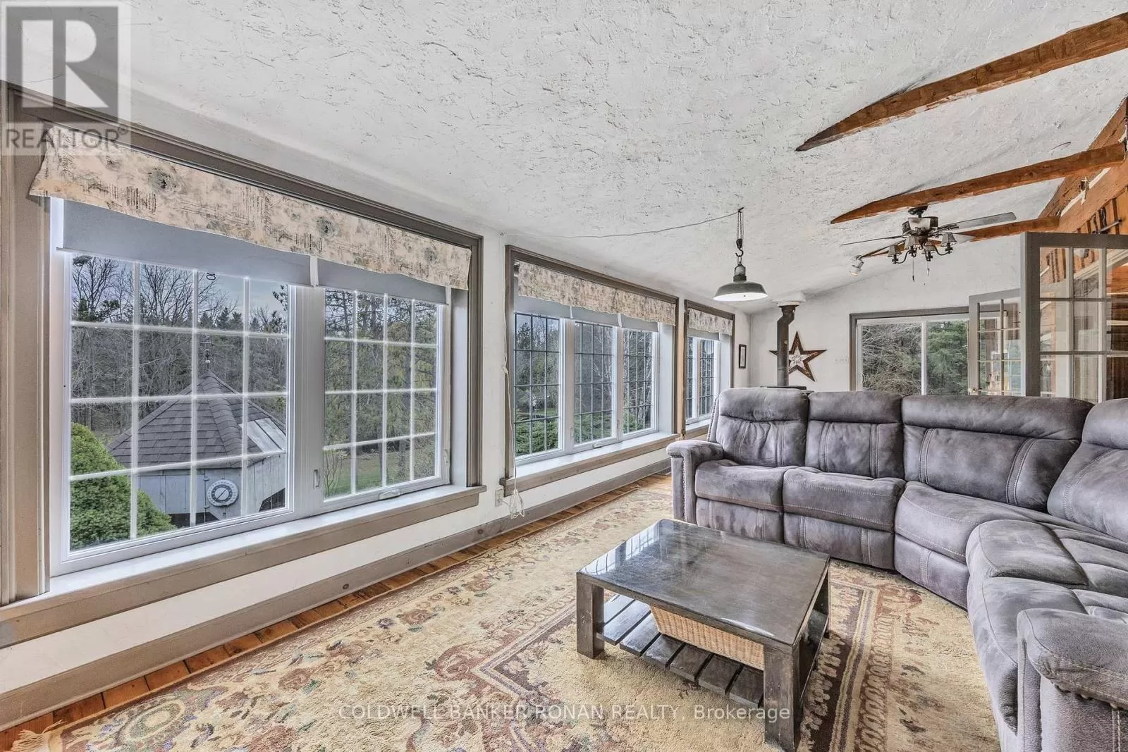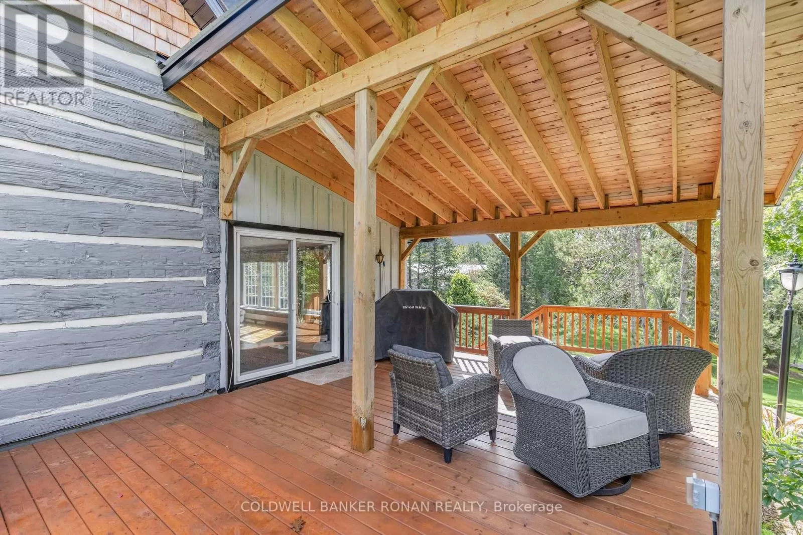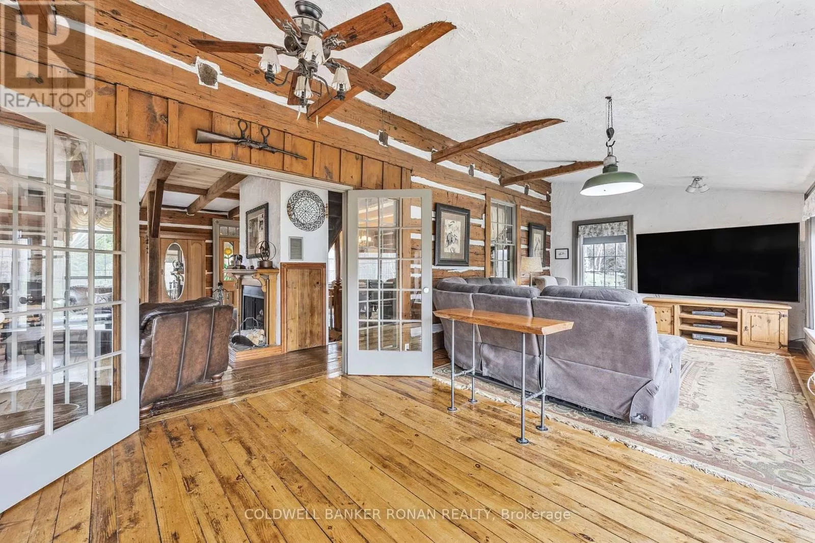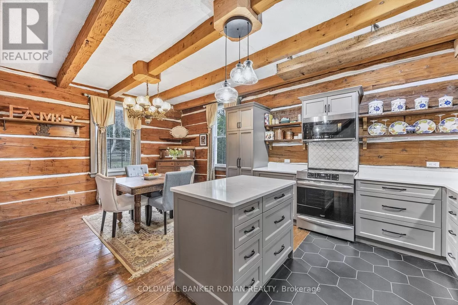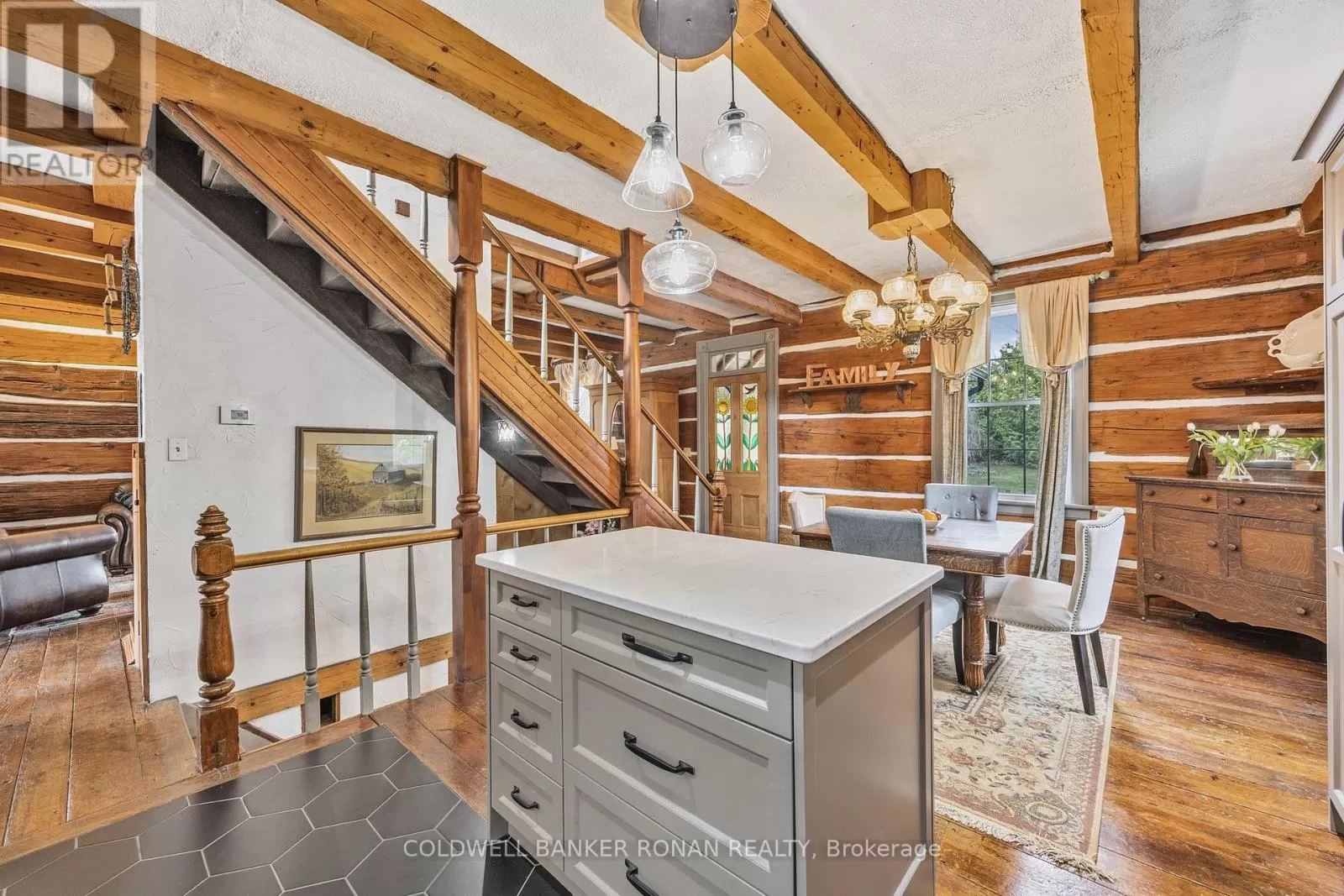 Highway 89 & 4th Line E Discover a blend of heritage and refined country living on this remarkable 44.89-acre estate, where timeless craftsmanship meets peaceful seclusion. Set at the end of a long, private driveway, this extraordinary property offers unmatched privacy, scenic beauty, and a lifestyle of elegance and purpose. At its heart is a stunning Ottawa Valley Log Home, handcrafted initially in the mid-1800s and thoughtfully relocated to its current site in 1976. The home has been beautifully updated while preserving its historic charm, creating a warm, inviting atmosphere that blends rustic character with modern comfort. Ideally suited for equestrian lovers, hobby farmers, or those dreaming of a wellness retreat, the property features three spacious paddocks and a 70' x 150' indoor riding arena with an adjacent heated workshop and three 12' x 12' soft-stall horse stalls providing everything needed for year-round training, events, or personalized care. A classic bank barn and large driveshed both add additional storage and flexibility. The grounds are equally captivating, with rolling trails, mature trees, and open meadows that invite exploration and serenity. A private trout pond adds to the picturesque setting, ideal for moments of reflection or scenic enjoyment from the home's vantage point. Whether your vision includes a tranquil retreat, sustainable farm life, or a luxurious escape from city living, this property delivers the perfect canvas. It's not just a home, it's a rare opportunity to own a piece of Canadian history in a setting that embodies privacy, beauty, and rural sophistication. (id:27476)