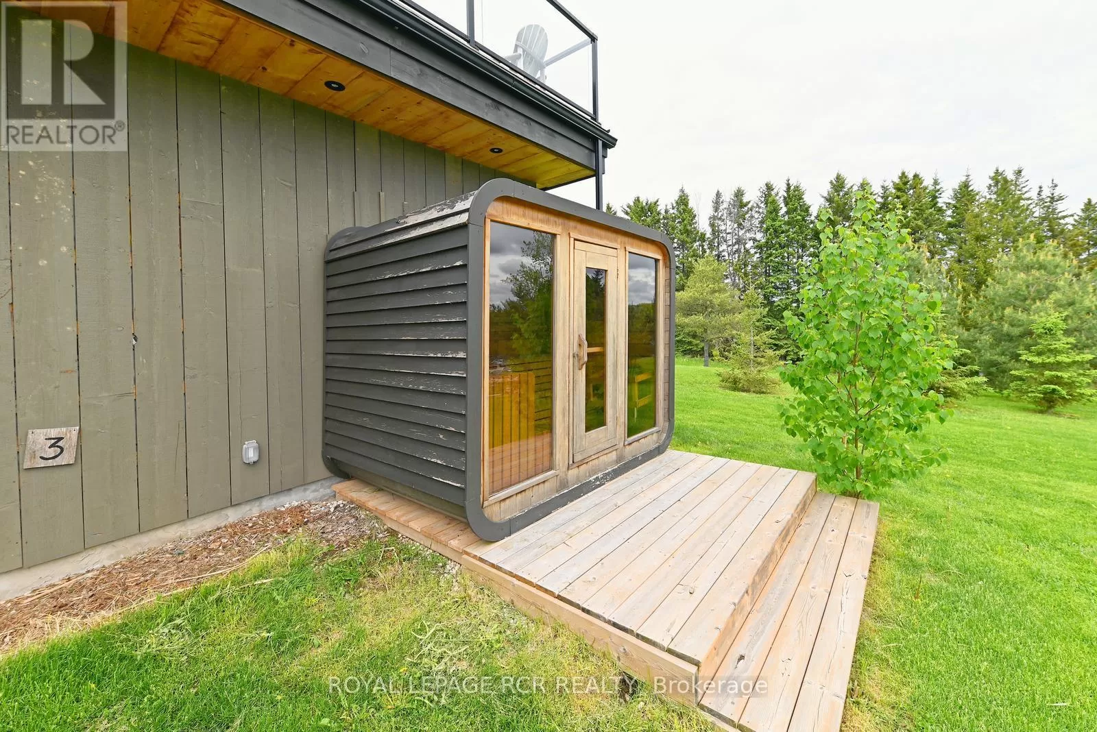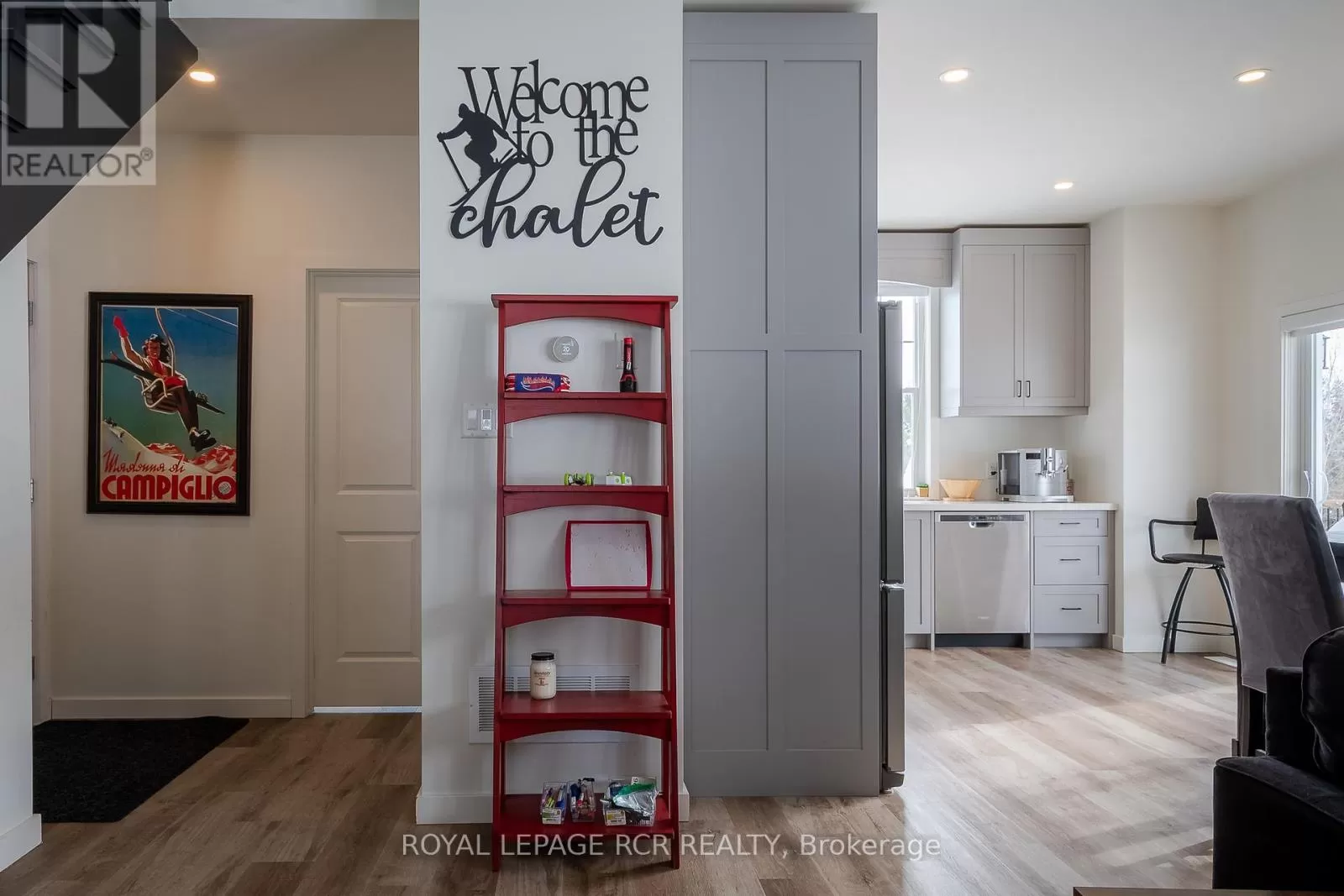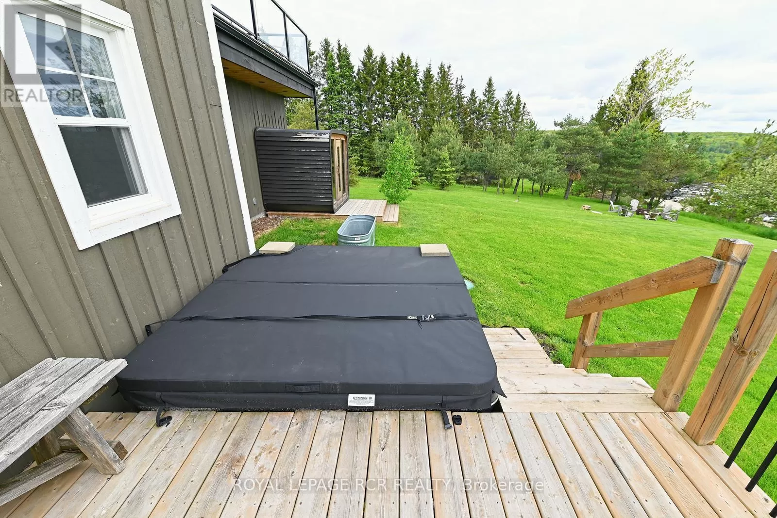Cross Streets: 15th Sideroad W of Airport Rd. ** Directions: West of Airport Rd on N side of 15 Sideroad. Ski-in and ski out directly onto the hill at Mansfield Ski Club. 3 bedroom, chalet with huge second storey deck with fantastic views of the hills and beyond. Private views through every window. Multiple decks and walk-outs. Beautiful, open living space with kitchen walk-out to a private BBQ deck. Take in a serene and starry night after a day on the hills from the outdoor sauna and hot tub or sit on the glass-railed deck with your favourite drink. A unique opportunity through this land lease arrangement. All the conveniences are taken care of, and you can experience carefree country living in all 4 seasons (id:27476)