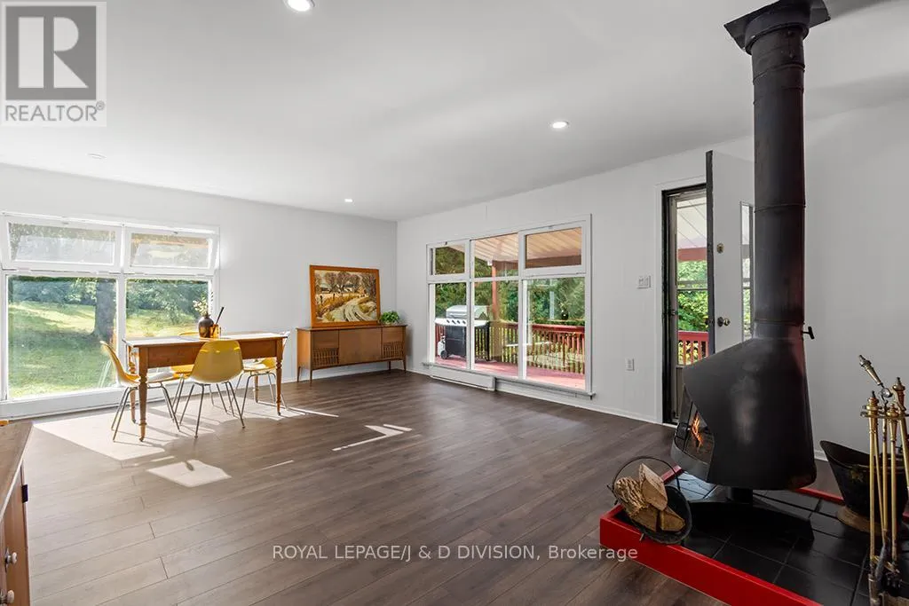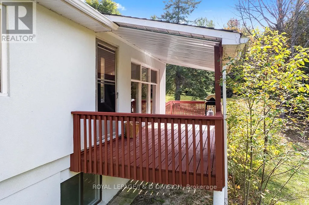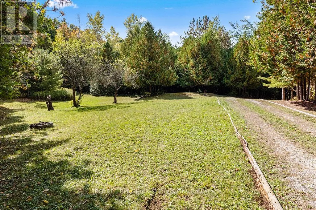 Prince of Wales & River Road Welcome to this amazing property that lays within the greenbelt, in the township of Mulmur. With over 6 acres this property has endless potential for whatever lifestyle you're looking for: tranquil mornings sipping coffee on the back porch, adventure filled days creating trails through the forest or driving to one of the many quintessential small towns nearby. This home suits everyone! Set back from the road the main home features 2 good sized bedrooms filled with natural light, a bright combined living and dining room featuring a statement wood burning fireplace and a walkout to the back porch, as well as bonus space in the lower level with an extra bedroom and family/media room! The large detached garage can comfortably fit 2 large vehicles as well as 2 bonus workshop and storage spaces. The "bunkie" is an excellent footprint for someone to make their own to have great additional living space with plumbing and electrical available. 45 minutes to Blue Mountain, 25 minutes to the shops in Orangeville, 15 minutes to the shops in Shelburne. Main floor vinyl flooring (2025), new baseboards on main floor (2025), waterproofing in basement (2025), French drain/weeping tiles (2025), new electrical panel (2025). (id:27476)