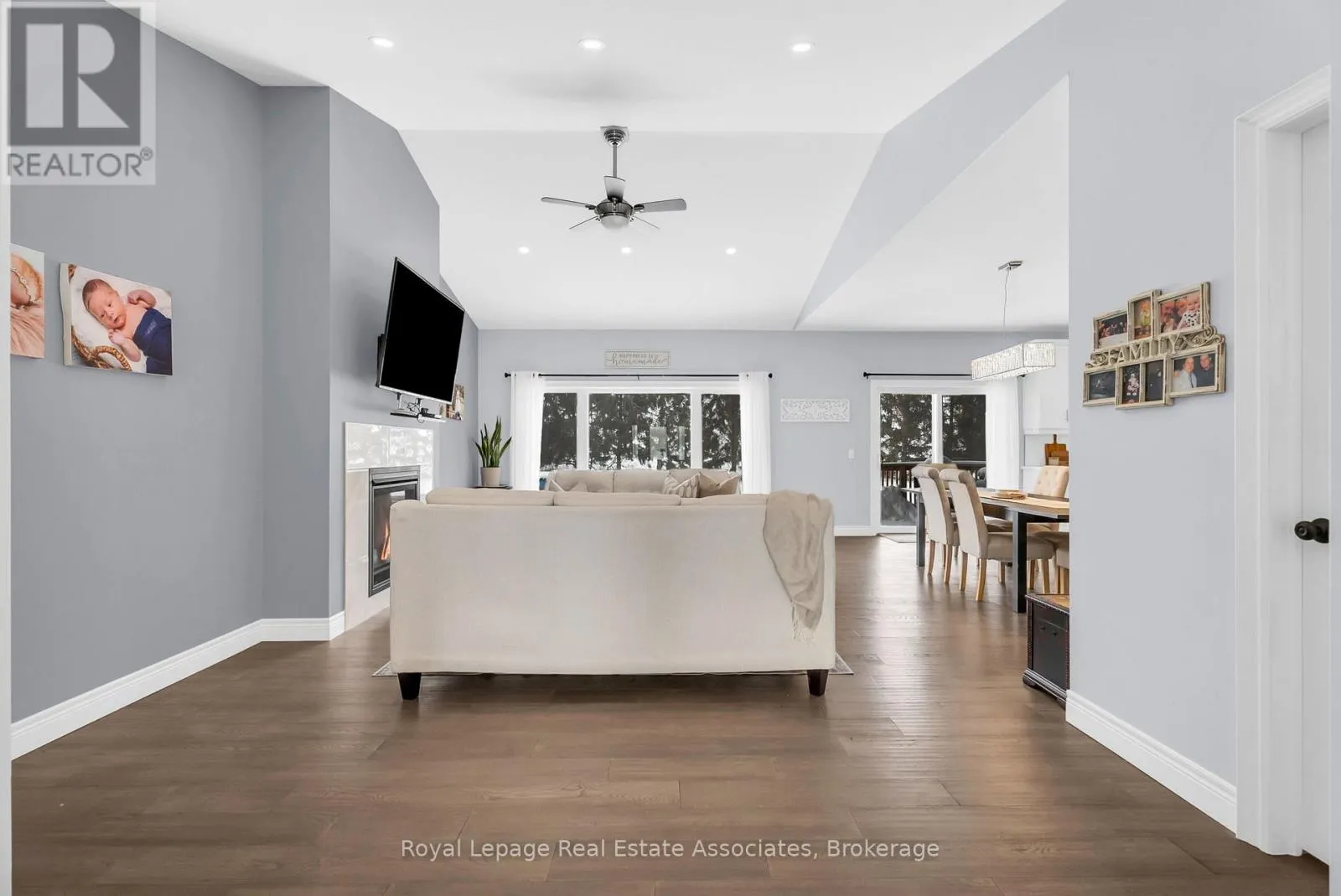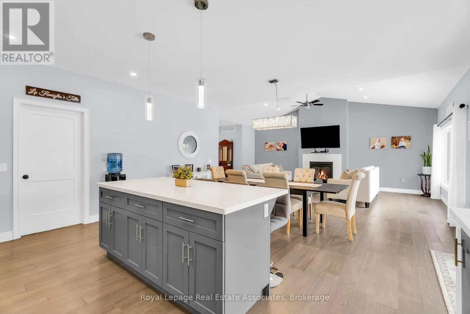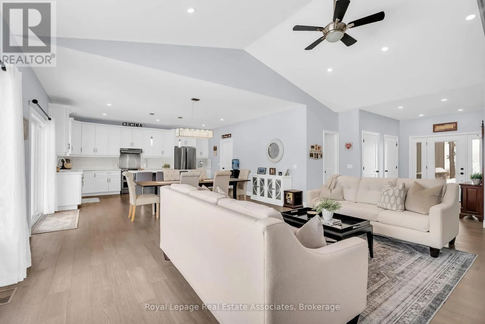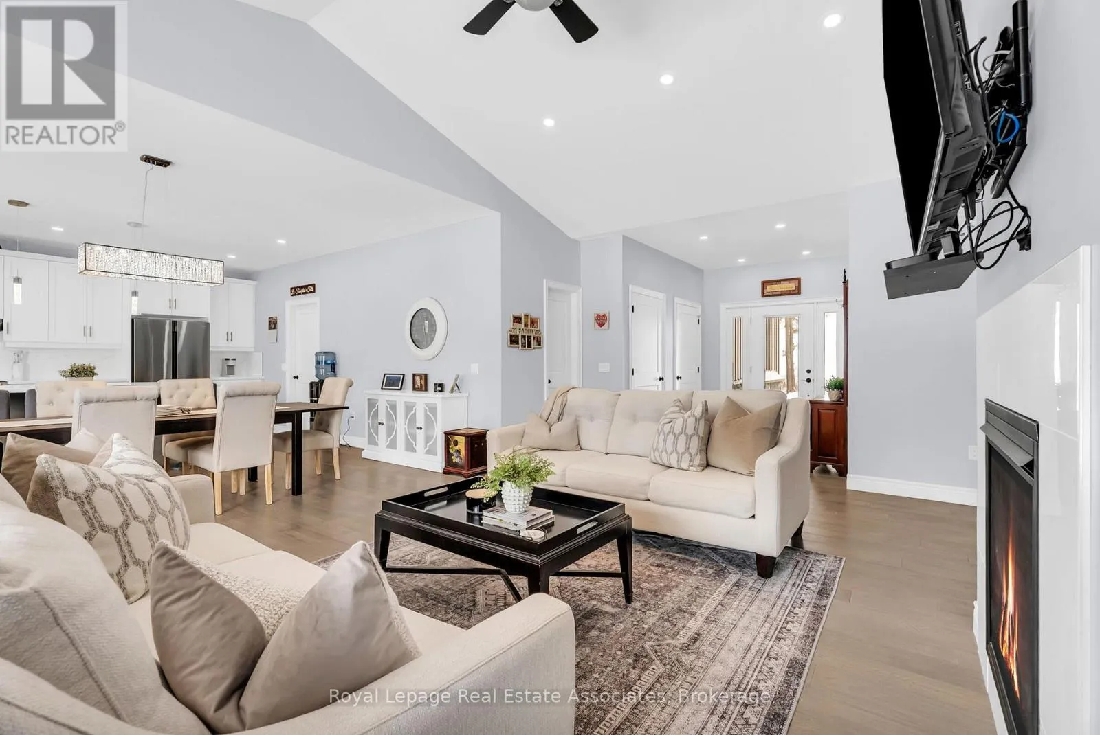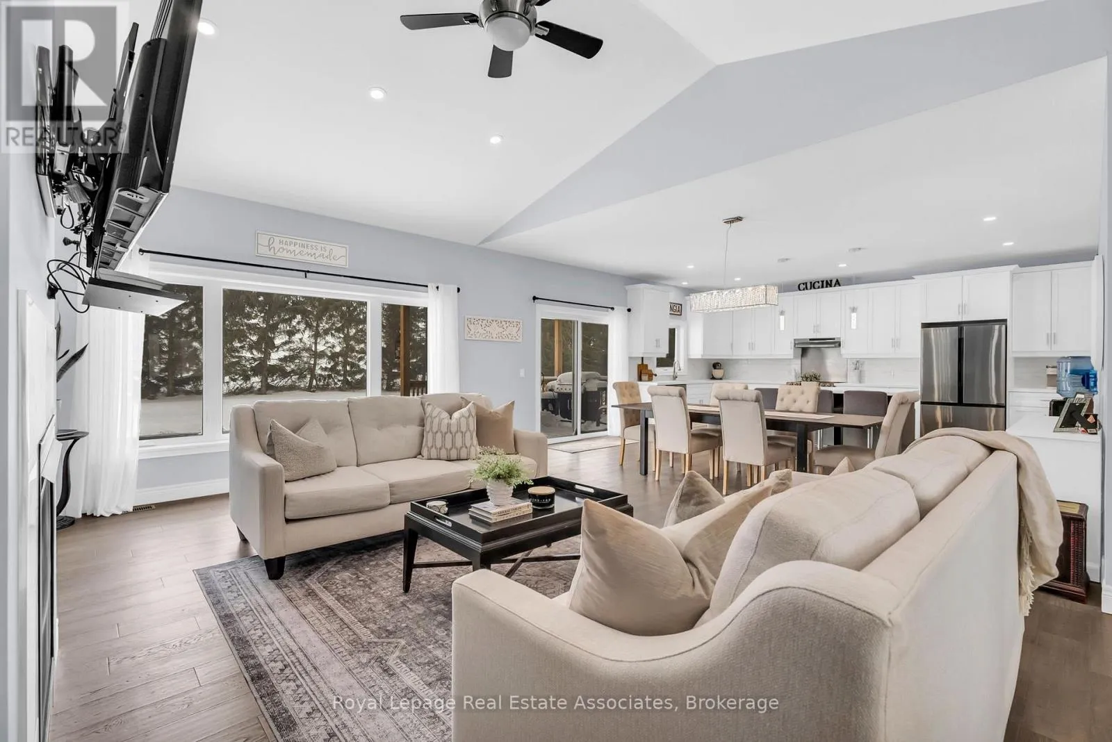 Hwy 24 & County Rd 21 This stunning custom-built bungalow showcases exceptional craftsmanship, timeless style, and thoughtful design throughout. Built six years ago, the home offers elegant bungalow living with a bright, open-concept layout that is both impressive and highly functional. The home is completely carpet-free, featuring engineered hardwood flooring throughout.At the heart of the home is the beautifully designed kitchen, complete with quartz countertops, stainless steel appliances, pot lights, and a large centre island ideal for gathering and entertaining. The open-concept dining area flows seamlessly from the kitchen and offers a walk-out to the covered deck, extending the living space outdoors. The open-concept living room features cathedral ceilings, a cozy fireplace, and pot lights, creating a warm and inviting atmosphere.The spacious primary suite is a true retreat, featuring pot lights, a walk-in closet with custom built-ins, and a luxurious 5-piece ensuite designed for comfort and relaxation. Two additional bedrooms on the main floor are generously sized and include double-door closets. Main floor laundry adds everyday convenience, features a walk-in pantry, and offers direct access to the 3-car garage.The basement provides approximately 2,000 sq. ft. of additional living space, including a bedroom, a rough-in bathroom, and an abundance of storage.All you need is flooring to complete the basement. Outside, enjoy a serene backyard oasis set on a picturesque 1.01-acre lot. Relax under the large covered deck, unwind in the hot tub, or spend summer days by the above-ground pool, all while taking in the peace and privacy of country living.Located just 15 minutes from Shelburne for everyday amenities, this exceptional property offers the perfect blend of rural tranquility and modern convenience. Fibre optic cable and internet available. (id:27476)