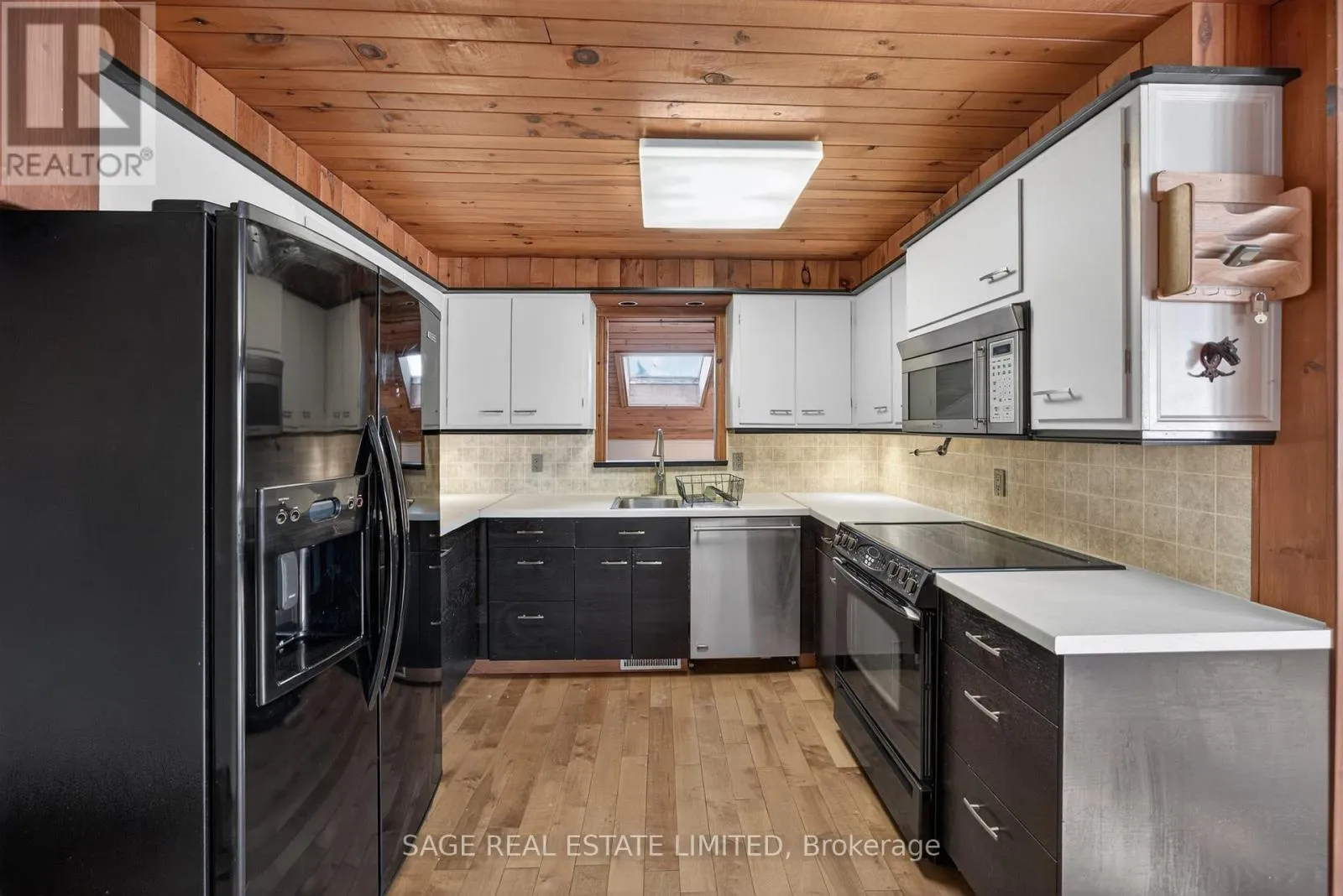 Cross Streets: Airport Rd/Side Road 17. ** Directions: \"Hey Siri, take me to 877430 5th Line E in Mansfield, Ontario\". Opportunity knocks with this rare-as-they-come Mansfield estate sale! This property sits on a large, private half-acre lot and offers endless potential for builders, investors, and renovators, featuring a cozy chalet-style feel with an open, split-level floor plan, three bedrooms on the main level, and a lookout basement with a bedroom, rec room, and great flex space for guests, in-laws, or teens. A newly gravelled driveway provides ample parking for 8 cars, while the impressive 24' x 24' detached, insulated garage/shop with hydro and loft is ideal for mechanics, welders, hobbyists, or anyone needing a serious workspace (2 additional parking spots inside). With several key updates already in place including a new roof on the garage and facia on the main home structure, the home provides a solid foundation to reimagine to your taste. Just steps from Mansfield Ski Club, the Outdoor Centre, Pine River fishing spots, and an extensive network of snowmobile trails (and only a short drive to Alliston, Orangeville, or Barrie), this property delivers true four-season adventure with exceptional rental potential. Estate sale: property sold "as is" with no warranties or representations from the Estate Trustee; Buyer to verify all measurements and taxes. (id:27476)