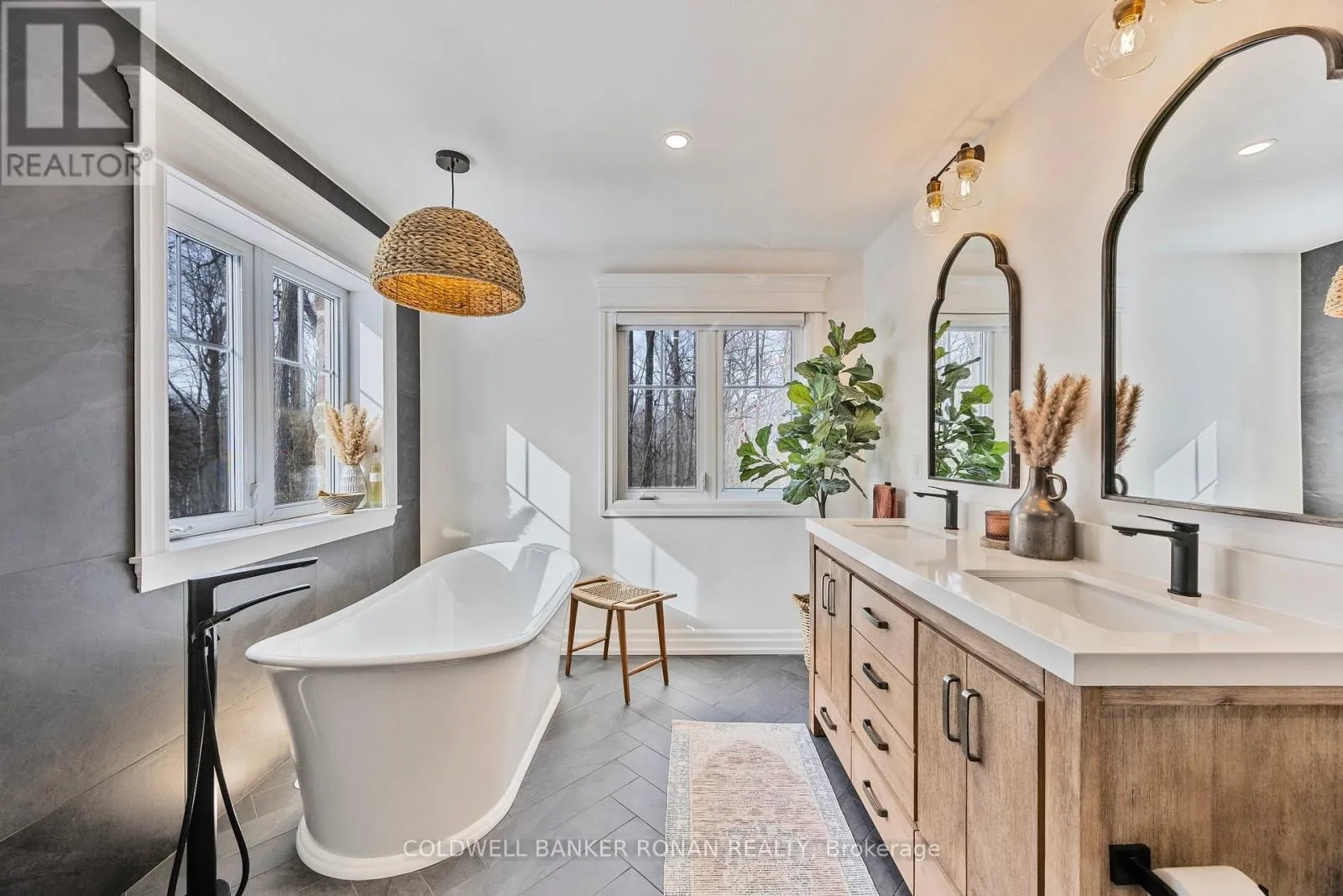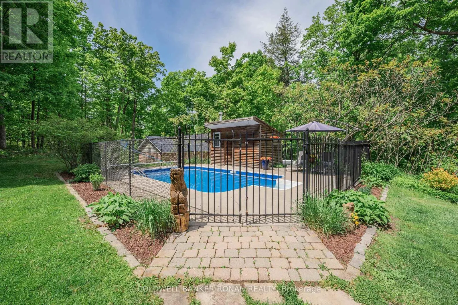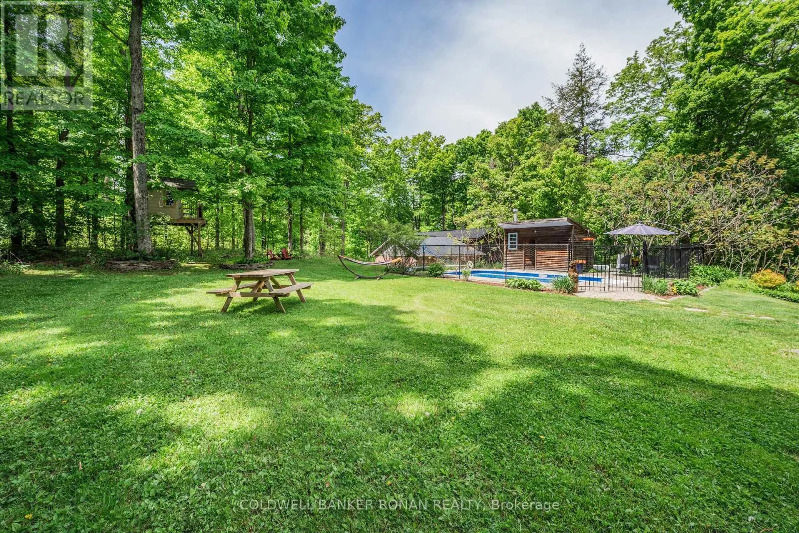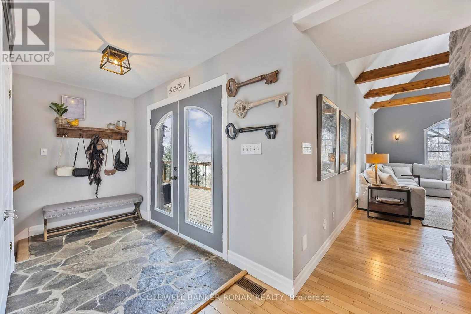 Airport Rd / Side Road 17 / Big Tree Circle Every so often, a property comes along that offers more than a place to live-it offers a lifestyle. Perched atop a scenic hill, this exceptional custom-built stone home captures sweeping, unobstructed views of the Mulmur Valley. Thoughtfully designed with multiple walkouts and expansive living spaces, the home seamlessly blends indoor comfort with the beauty of its natural surroundings. Inside, quality craftsmanship is evident in every detail. Modern finishes create a refined yet welcoming atmosphere throughout. The main floor features a spacious, family-sized kitchen with a walkout to a decked BBQ area-ideal for entertaining. A charming built-in bench beneath a large bay window frames tranquil forest views, making it the perfect spot to start your day. The living room is anchored by a striking stone fireplace, offering warmth, character, and unforgettable valley vistas. The main level also includes a serene primary suite with a newly renovated, spa-inspired 5-piece bathroom. An additional bedroom on this floor offers flexibility as a guest room, office, or study. Upstairs, three more generously sized bedrooms are complemented by a versatile loft space-perfect for relaxing, reading, or creative pursuits-along with a beautifully updated bathroom. The fully finished lower level, complete with a walkout and oversized windows, is bright and inviting. It features a cozy family room, a third bathroom, and a wood-burning fireplace, creating an ideal space for gathering year-round. Outdoors, the property transforms into a private retreat. Enjoy summer days by the in-ground pool, unwind in the hot tub, or relax in the sauna-all surrounded by peaceful natural beauty. A detached workshop adds functionality for hobbies or projects. Perfectly positioned, this remarkable home offers the tranquility of country living while remaining within easy reach of nearby amenities an added bonus of Bell Fibre Internet-a rare and desirable combination. (id:27476)