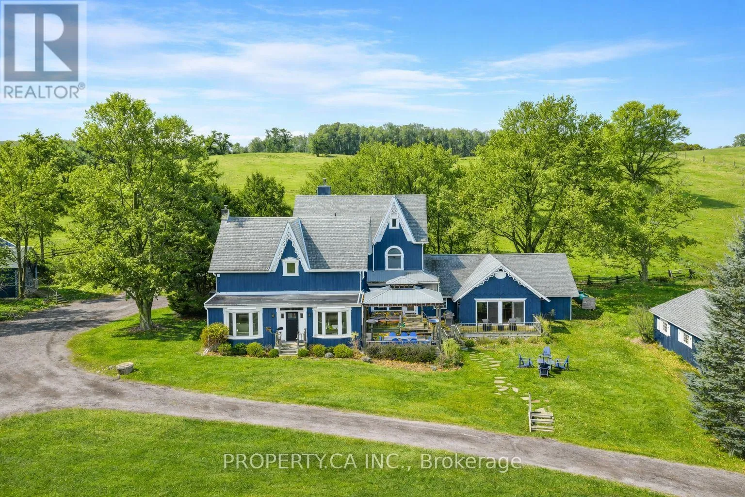 Airport Rd/5th Sdrd/5th Line Tucked into the rolling hills of Mulmur, Heaven-on-Fifth feels like a storybook brought to life. This remarkable nine-bedroom Victorian farmhouse has been thoughtfully reimagined into a refined modern country retreat, blending timeless charm with elevated design. Whether you're seeking a private family escape, an income-generating opportunity, or a forever home, this property offers exceptional versatility.A winding drive carries you through mature forest, across a gentle river and past a tranquil private pond, revealing a serene setting surrounded by Annabelle hydrangeas and towering trees. Inside, warm pine floors, exposed beams, and expansive open-concept living spaces create an inviting atmosphere ideal for both everyday living and entertaining. Enjoy formal living and dining rooms, a beautifully updated kitchen, a large family room, and an impressive games room with a built-in wet bar.The second level features a peaceful primary suite with a walk-in closet, spa-inspired open shower, and private water closet, alongside three additional bedrooms and a four-piece bath. The third floor offers a secondary suite with ensuite plus a flexible bedroom or office. The lower level completes the home with three additional bedrooms.Outdoors, a cedar deck with a built-in hot tub and multiple dining areas overlooks a new saltwater pool, creating a true resort-style experience. With year-round amenities including a games room and gym, this turnkey property is equally suited as a recreational retreat, full-time residence, or destination investment.Ideally located just 80 minutes from Toronto, minutes to Mansfield Ski Club, and close to Creemore, Mad River Golf Club, and Collingwood, Heaven-on-Fifth offers privacy without compromise. A truly one-of-a-kind opportunity to live, host, and unwind. (id:27476)