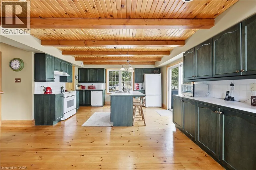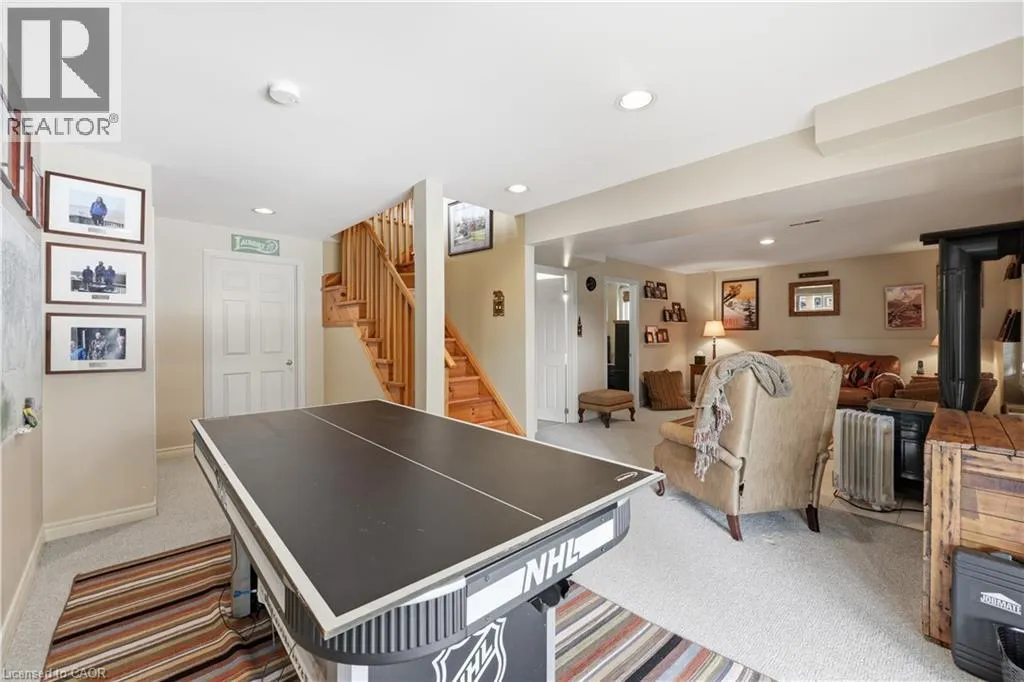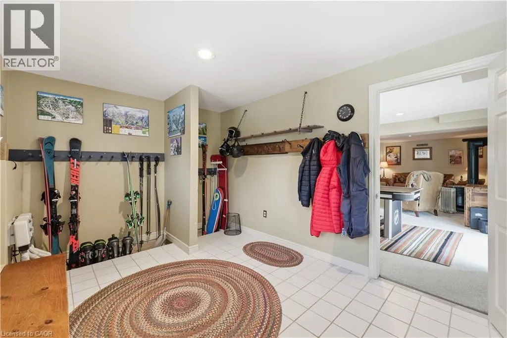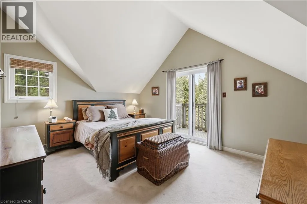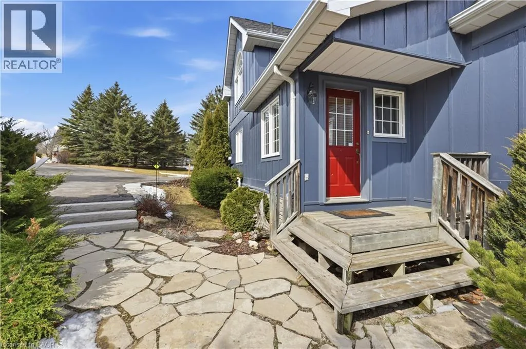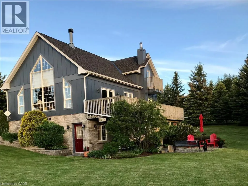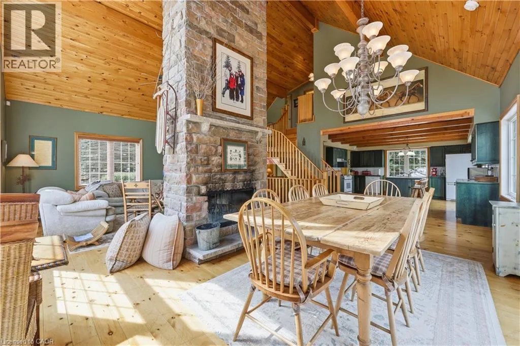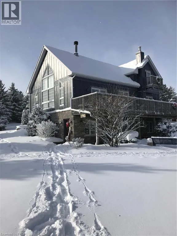 Experience the ultimate alpine lifestyle in this stunning ski-in/ski-out chalet, perched at the top of Mansfield Ski Club on a quiet crescent, just over an hour outside of Toronto. Make this your home or vacation house. Situated on a private lot of just under 1 acre with ample parking, this property is designed for family fun and year-round enjoyment. The heart of the chalet is a dramatic A-frame great room boasting soaring pine cathedral ceilings and expansive window views of the Escarpment. The space features warm pine floors anchored by a magnificent floor to ceiling double sided stone finished wood-burning fireplace. The open-concept main floor flows seamlessly into the kitchen, which features wood cabinetry, a large center island, four appliances, and a walk-in pantry. Sliding doors lead to an expansive deck with a Weber BBQâthe ideal spot for après-ski gatherings. A cozy, carpeted separate den and a 2-piece powder room round out the main level. The upper level offers a peaceful retreat with two large, carpeted bedrooms a 4-piece bathroom with jetted tub and separate shower; the primary suite even boasts its own private balcony. The lower level is built for a crowd, featuring two additional large bedrooms, a second 4-piece bathroom, and the warmth of a Vermont Castings wood-burning stove. Perfect for active families, the dedicated ski/mudroom with separate ground-level entrance provides direct access to the slopes for a true doorstep-to-chairlift experience. Mansfield outdoor center just down the road enjoy cross-country skiing, snowshoeing, hiking, and biking. Book your private showing today!!!! (id:27476)