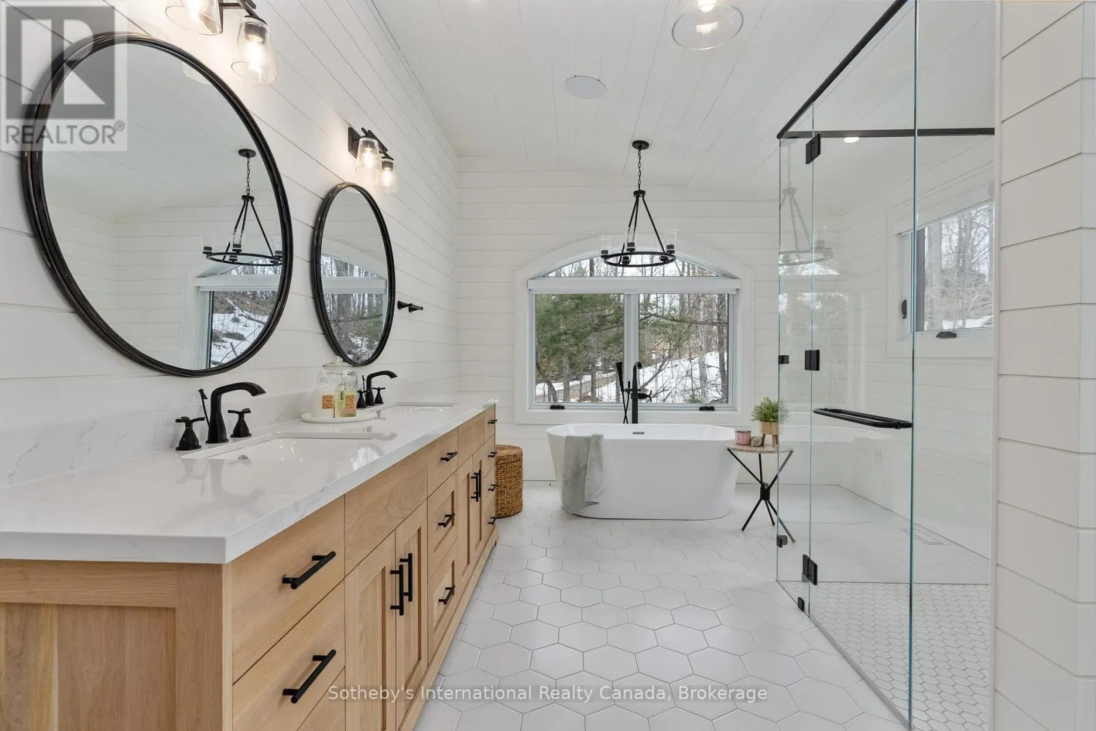 Cross Streets: Torrance Road East Bay Rd. ** Directions: HWY 11 North Muskoka 169 North Torrance Road East Bay Road 1316 #4A. Discover this stunning 7,500 sq.ft luxury build, nestled on 4.8 acres of beautifully landscaped privacy with 306 feet of Lake Muskoka frontage. Designed and masterfully built by Cottage Country Builders with interiors by Hilltop Interiors, this 7+2 bedroom, 7-bathroom estate offers an exceptional blend of craftsmanship and comfort. Enter through a dramatic granite rock cut to your private lakeside retreat. Take in sunsets and long lake views year-round from the matching two-storey boathouse crowned with a signature cupola. A natural sandy walk-in and deep-water access complete the shoreline. Flagstone paths connect the cottage to an inviting fire pit and spa. Inside, a full-height granite fireplace anchors the great room with soaring windows. The kitchen features Sub-Zero and Wolf appliances, a built-in coffee bar, and elegant countertops. The adjacent dining area includes bi-fold lakeside doors and deployable screens. Relax on the expansive deck or in the Muskoka room with a gas fireplace and automatic screens. The main floor primary suite includes a spa-like ensuite and serene lake views. Upstairs, discover another primary, multiple guest suites, and a private study. The lower level lounge features walkouts to the patio and spa, a pool table, quartz wet bar, romantic wine cellar, and opulent home theatre. Whole-home automation and a 20-zone sound system create an ideal environment for entertaining. A 2-car attached garage provides year-round comfort. With permits in place and site prep complete, there's room to build your dream garage or sports court. This is a rare opportunity to own a new build of this calibre on Lake Muskoka. (id:27476)