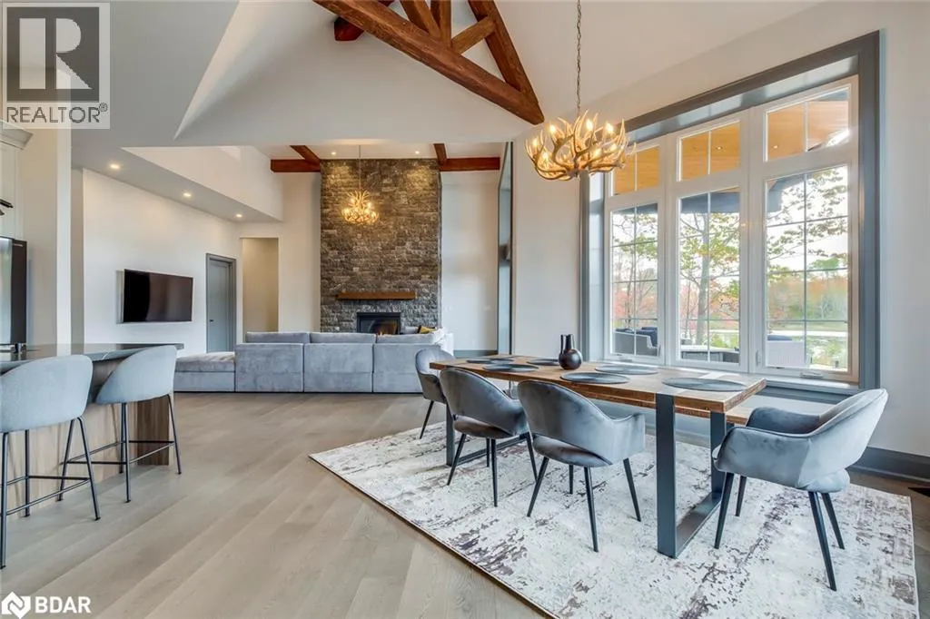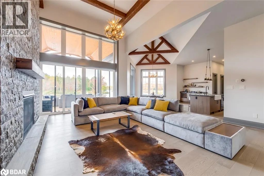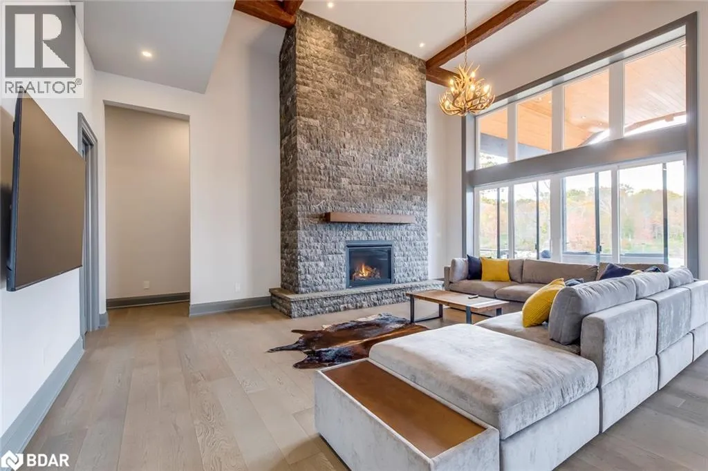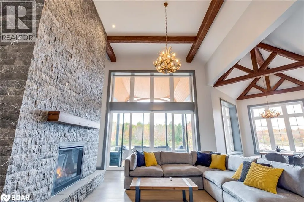 4805 Highway 169- Enter Oviinbyrd(Gated Golf Club)and Turn Left at Sign that says 2-19 before Clubhouse. Continue across bridge that runs over train tracks and turn right at sign that says 3-19. Take 4th driveway on your Left. Experience luxury in nature at this brand new home in the prestigious Oviinbyrd Private Golf Club- Top 100 Golf Clubs in Canada. Enjoy 275 feet of Cassidy Lake frontage in this ICF-built, energy efficient home. This 2831 sq ft space features high ceilings, a stone fireplace, sunlit rooms with lake views, 4 large bedrooms and high end finishes. The main room's focal point is a full height fireplace, framed by timber and 16 foot cathedral ceilings. Spacious primary bedroom boasts his and her walk-in closets and a lavish ensuite. Two more bedrooms have private washrooms. Bonus rooms serves as office or fourth bedroom. The kitchen, an entertainer's dream, flows into a dining room with antler light fixture, wine cooler and opens up to a deck overlooking the lake. Oversized windows throughout provide an abundance of light offering a majestic nature's paradise lifestyle with the most stunning and serene views across the lake. An oasis of outdoor living compliments the home. Prime West exposure provides great afternoon sun and guaranteed spectacular sunset views to end your days in Muskoka. Property comes with deeded access to the main part of Cassidy Lake with shared boat launch and docking where you can enjoy swimming, fishing, boating and paddling. This ICF built home is energy efficient and comes complete with 2 car garage with an electric car charger. LUTRON automated blinds, high end appliances and landscape lighting throughout the property. Option to upgrade and customize your outdoor living space to install a jacuzzi spa of your choice on the deck and a pool next to the massive ground level walk-out basement for a price to be discussed upon request. (id:27476)