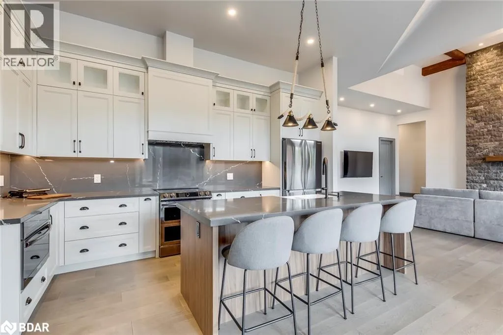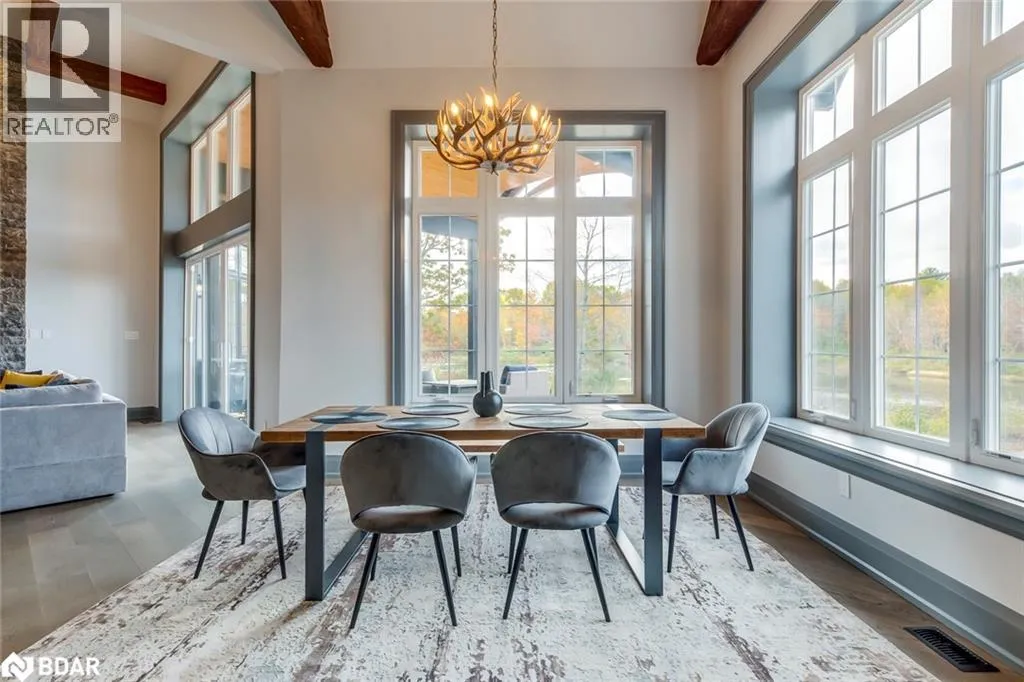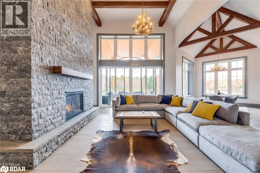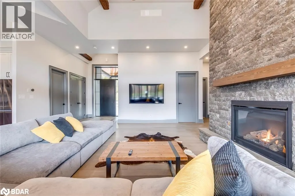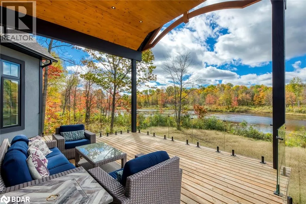 4805 Highway 169- Enter Oviinbyrd(Gated Golf Club)and Turn Left at Sign that says 2-19 before Clubhouse. Continue across bridge that runs over train tracks and turn right at sign that says 3-19. Take 4th driveway on your Left. Experience luxury in nature at this brand new home in the prestigious Oviinbyrd Private Golf Club- Top 100 Golf Clubs in Canada. Enjoy 275 feet of Cassidy Lake frontage in this ICF-built, energy efficient home. This 2831 sq ft space features high ceilings, a stone fireplace, sunlit rooms with lake views, 4 large bedrooms and high end finishes. The main room's focal point is a full height fireplace, framed by timber and 16 foot cathedral ceilings. Spacious primary bedroom boasts his and her walk-in closets and a lavish ensuite. Two more bedrooms have private washrooms. Bonus rooms serves as office or fourth bedroom. The kitchen, an entertainer's dream, flows into a dining room with antler light fixture, wine cooler and opens up to a deck overlooking the lake. Oversized windows throughout provide an abundance of light offering a majestic nature's paradise lifestyle with the most stunning and serene views across the lake. An oasis of outdoor living compliments the home. Prime West exposure provides great afternoon sun and guaranteed spectacular sunset views to end your days in Muskoka. Property comes with deeded access to the main part of Cassidy Lake with shared boat launch and docking where you can enjoy swimming, fishing, boating and paddling. This ICF built home is energy efficient and comes complete with 2 car garage with an electric car charger. LUTRON automated blinds, high end appliances and landscape lighting throughout the property. Option to upgrade and customize your outdoor living space to install a jacuzzi spa of your choice on the deck and a pool next to the massive ground level walk-out basement for a price to be discussed upon request. (id:27476)