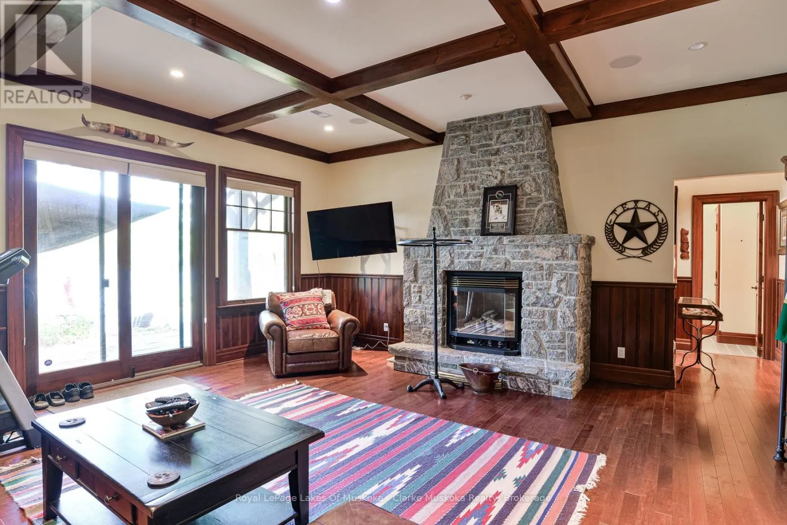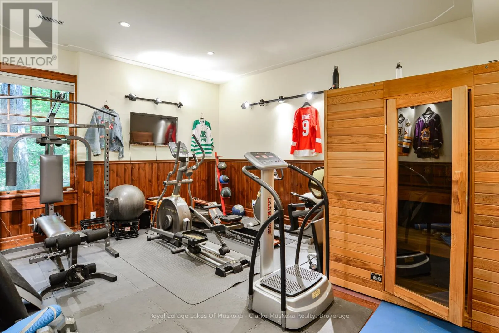 Cross Streets: Estate Dr & Medora St. ** Directions: Medora St to Estate Dr #45. Experience Muskoka living with this beautiful 4-bedroom, 4-bath bungalow situated on 98.43 feet of frontage on Marion Lake. Offering breathtaking views of the calm waters, this property combines comfort, recreation, and convenience in one remarkable package. Inside, the home is designed for both relaxation and entertainment, featuring an indoor gym, private sauna, and a built-in bar perfect for hosting friends and family. The spacious layout provides plenty of natural light, while the two-car garage ensures practicality and storage. Set in a prime Port Carling location, this property sits directly across from the prestigious Port Carling Golf Club, placing world-class recreation right at your doorstep. Just minutes away, you'll find everyday essentials including Foodland, the LCBO, a health clinic, hardware store, and the local post office, making this the perfect balance of privacy and accessibility. Whether its enjoying peaceful lakefront mornings, working out at home, or hitting the greens, this home delivers the ultimate Muskoka lifestyle. (id:27476)