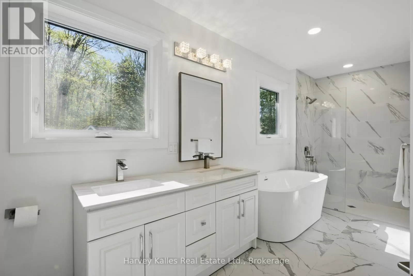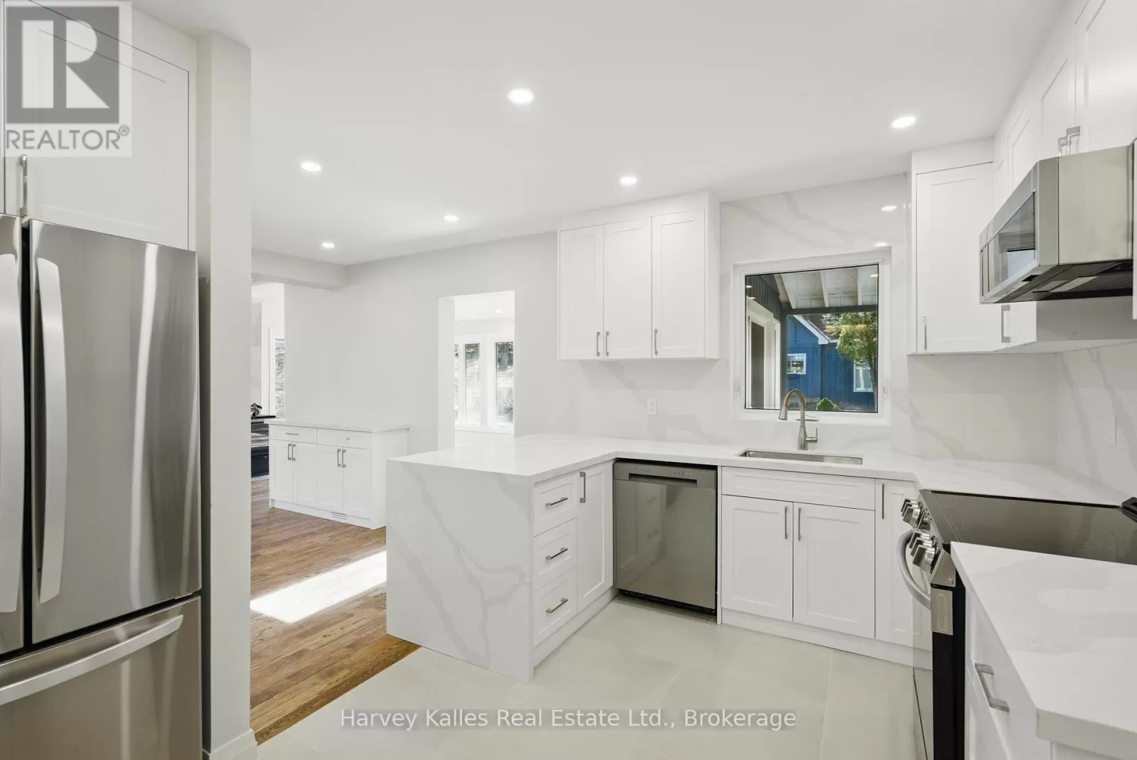 Cross Streets: Mirror Lake Dr. ** Directions: Hwy 118W - Foreman Rd - Mirror Lake Dr. - Todholm - #21. Welcome to your fully renovated, exquisite dream home in the heart of Muskoka! A stunning property nestled in a quaint neighbourhood, boasting a gorgeous, well-treed, and private double lot. This remarkable real estate features a newly renovated 4 bedroom, 2.5 bathroom home with a bunkie and spacious detached garage. Entering the home, you are greeted by the beautifully refurbished main floor featuring an elegant customized kitchen that seamlessly connects to the dining room, creating an optimal space for entertaining. Additionally, a charming living room with a cozy wood stove, a bright and naturally lit sun room, and separate office area. Upstairs, you will discover three generously sized bedrooms and a 5 piece, lavish bathroom. The finished basement offers an additional bedroom and bathroom, family room, and ample storage, creating a versatile and functional area within the home, ideal for providing extra living space. Step outside to discover a sprawling deck and immerse yourself in the tranquil ambiance of nature. As the sun sets, gather around the inviting fire pit to savour summer nights. A charming bunkie behind the home offers a tranquil retreat. This cozy hideaway features a living area, bathroom, a rustic wood stove and a private deck, where the serene woodland surrounds you. With a spacious garage along with an additional driveway, you will have abundant extra parking space for your convenience. Advantageously situated on a double lot, this property presents as an incredible opportunity for investment. The location is truly unbeatable, with a short 7-minute walk to a private swimming area on Lake Muskoka, a short drive away from the best dining and golf establishments, as well as all essential amenities. Every detail of this home has been carefully considered. Whether you're seeking a new primary residence or an off-water cottage, this property offers the perfect blend of modern comfort and natural beauty. Don't miss out on this opportunity! (id:27476)