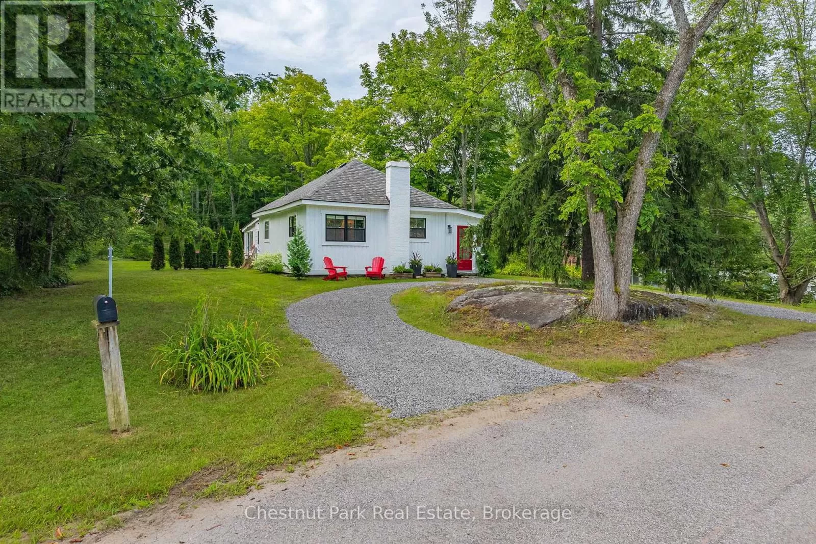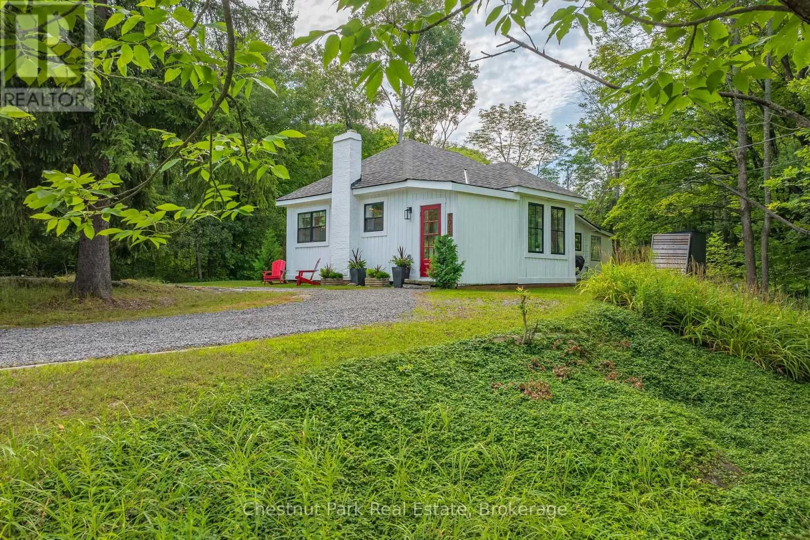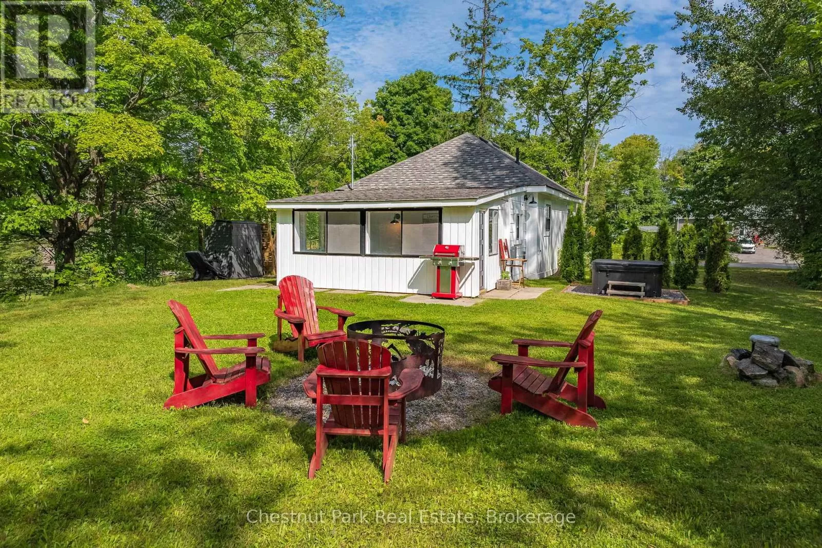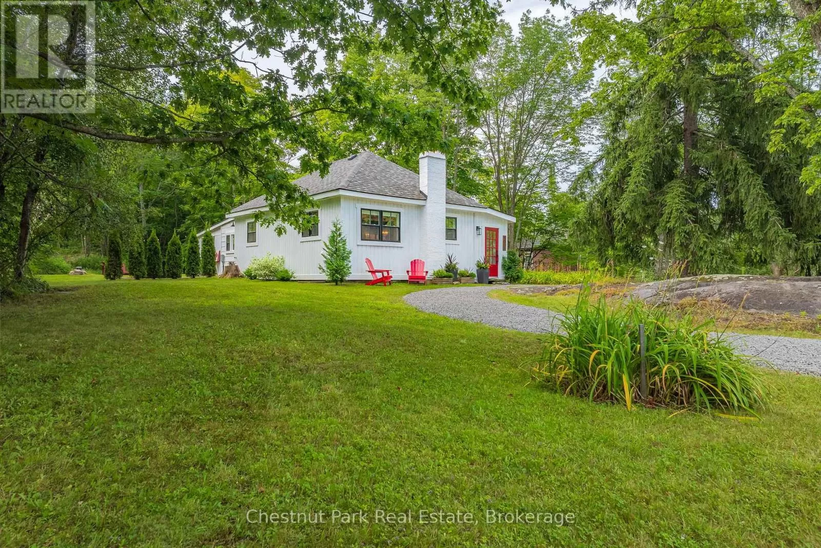 Cross Streets: LAKE JOSEPH ROAD TO MUSKOKA ROAD 169, RIGHT ONTO UNITED CHURCH ROAD, FIRST HOUSE ON THE LEFT. ** Directions: Lake Joseph Road to Muskoka Road 169, Right onto United Church Road. # 1011 - SOP. Welcome to 1011 United Church Rd, a charming 984 sq.ft., 2-bedroom, 1-bath home that beautifully blends modern comfort with rustic warmth, just steps from Lake Joseph and The Cove Marina. A welcoming foyer leads to a spacious, open-plan living area, perfect for entertaining. The modern kitchen is a dream, featuring a high-end stainless-steel range, a retro fridge, and a custom backsplash. Throughout the home, rich acacia hardwood floors, contemporary windows, and interior shiplap create a cozy atmosphere, complemented by a gorgeous bathroom updated in 2021 with a luxurious rain shower. You can also enjoy the outdoors from the inviting 3-season Muskoka room, which offers stunning views of the surrounding woods and granite outcroppings. The backyard is a private oasis, ideal for relaxing in the hot tub (2022) or gathering around the fire pit and barbecue area. The property is equipped for year-round living with baseboard heaters and smart thermostats, which, along with an electronic keypad lock, allow for remote monitoring of heat and access, providing peace of mind. Additional updates include the electrical system and roof shingles, both from 2020. This home is ideally situated across the road from The Cove Marina for easy boat access to Lake Joseph and is just minutes away from fine dining, shopping, golf, and spas. This home is best seen to be fully appreciated! (id:27476)