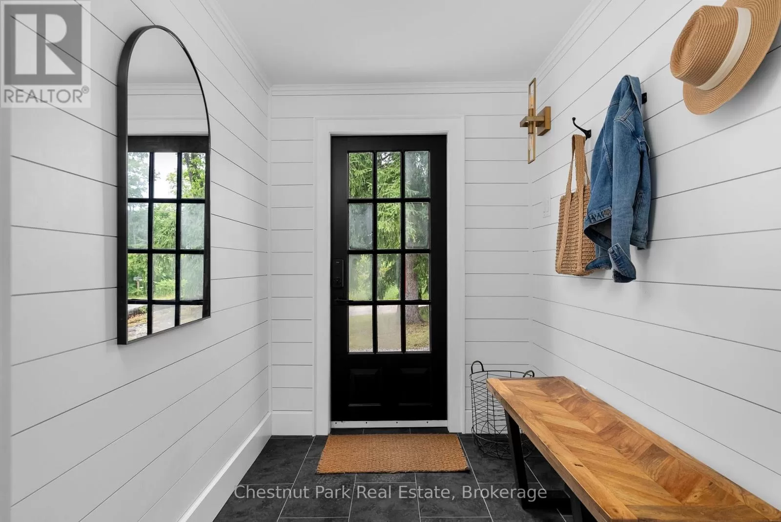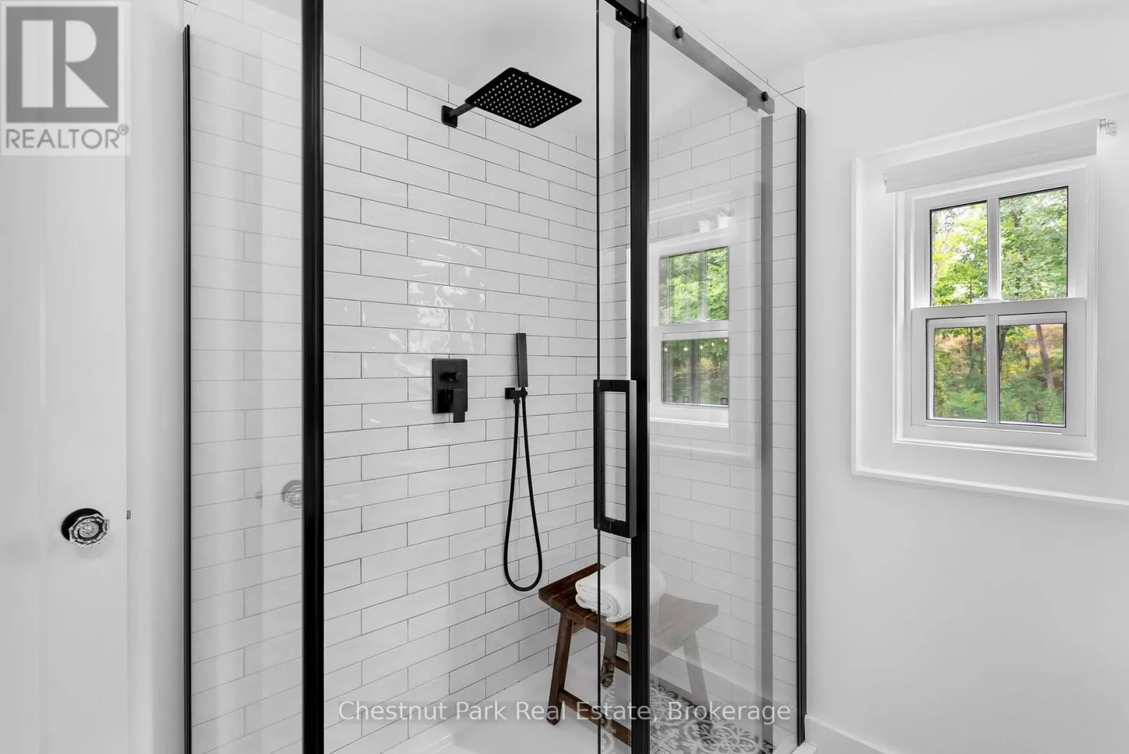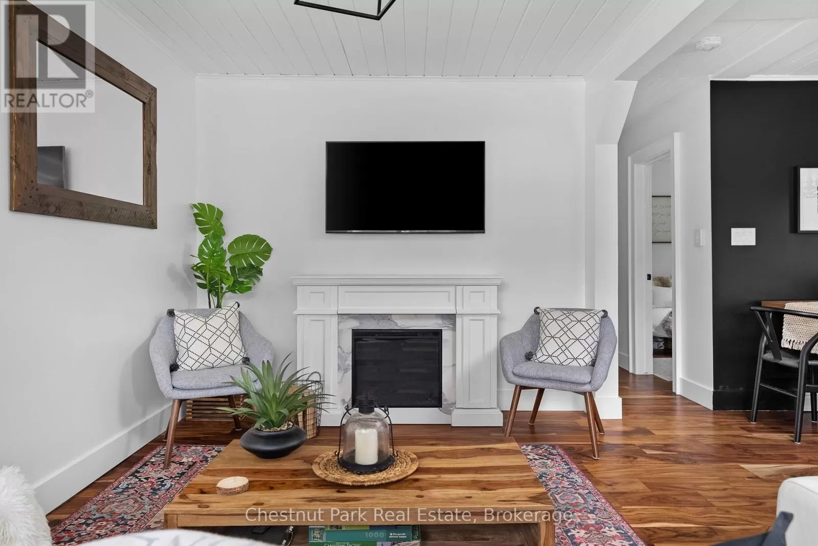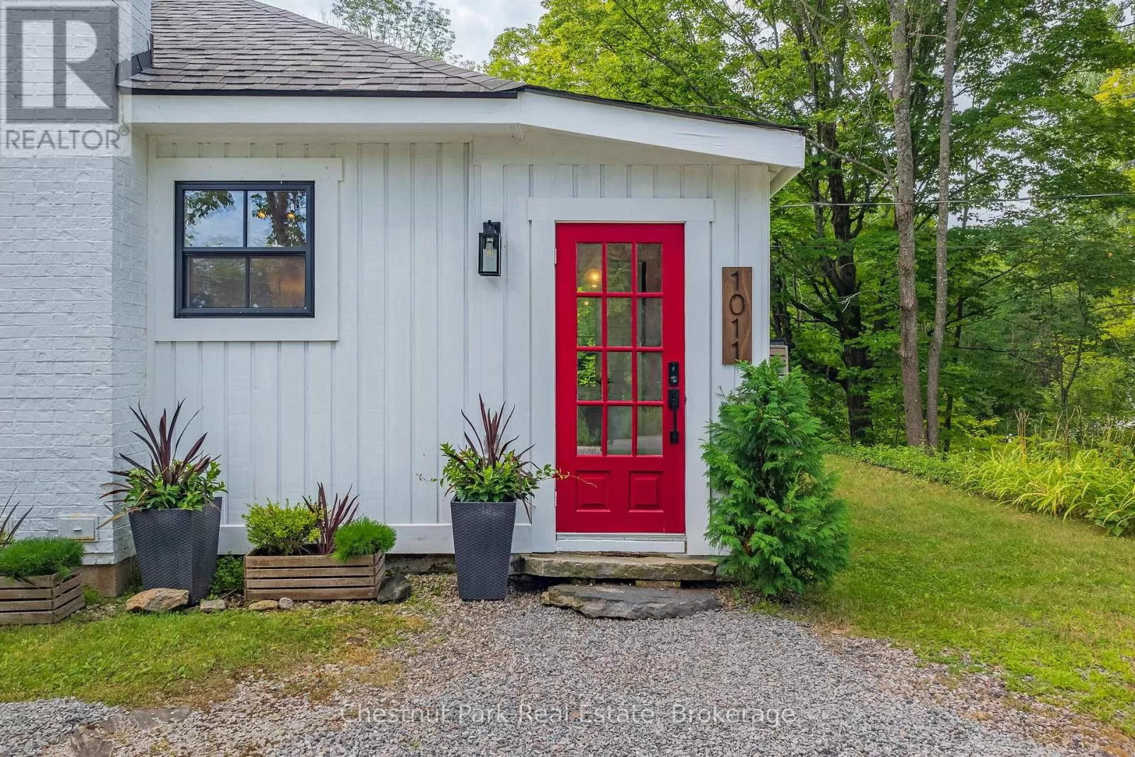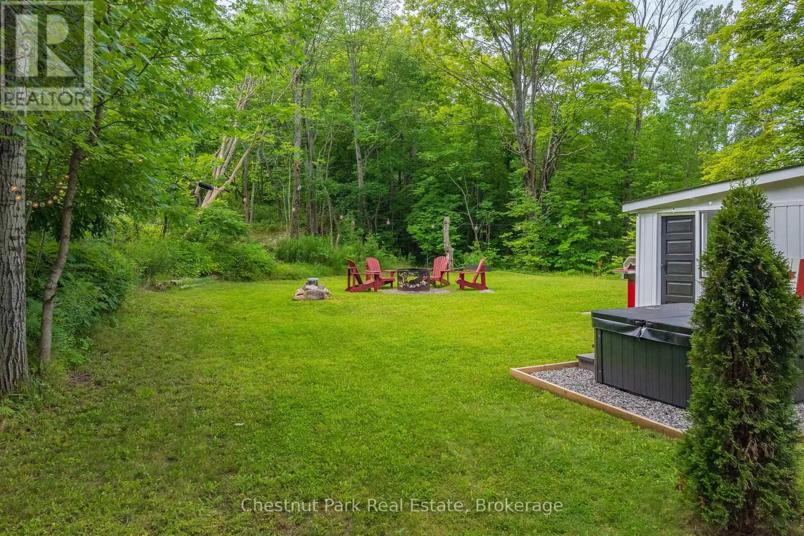 Cross Streets: LAKE JOSEPH ROAD TO MUSKOKA ROAD 169, RIGHT ONTO UNITED CHURCH ROAD, FIRST HOUSE ON THE LEFT. ** Directions: Lake Joseph Road to Muskoka Road 169, Right onto United Church Road. # 1011 - SOP. Welcome to 1011 United Church Rd, a charming 984 sq.ft., 2-bedroom, 1-bath home that beautifully blends modern comfort with rustic warmth, just steps from Lake Joseph and The Cove Marina. A welcoming foyer leads to a spacious, open-plan living area, perfect for entertaining. The modern kitchen is a dream, featuring a high-end stainless-steel range, a retro fridge, and a custom backsplash. Throughout the home, rich acacia hardwood floors, contemporary windows, and interior shiplap create a cozy atmosphere, complemented by a gorgeous bathroom updated in 2021 with a luxurious rain shower. You can also enjoy the outdoors from the inviting 3-season Muskoka room, which offers stunning views of the surrounding woods and granite outcroppings. The backyard is a private oasis, ideal for relaxing in the hot tub (2022) or gathering around the fire pit and barbecue area. The property is equipped for year-round living with baseboard heaters and smart thermostats, which, along with an electronic keypad lock, allow for remote monitoring of heat and access, providing peace of mind. Additional updates include the electrical system and roof shingles, both from 2020. This home is ideally situated across the road from The Cove Marina for easy boat access to Lake Joseph and is just minutes away from fine dining, shopping, golf, and spas. This home is best seen to be fully appreciated! (id:27476)