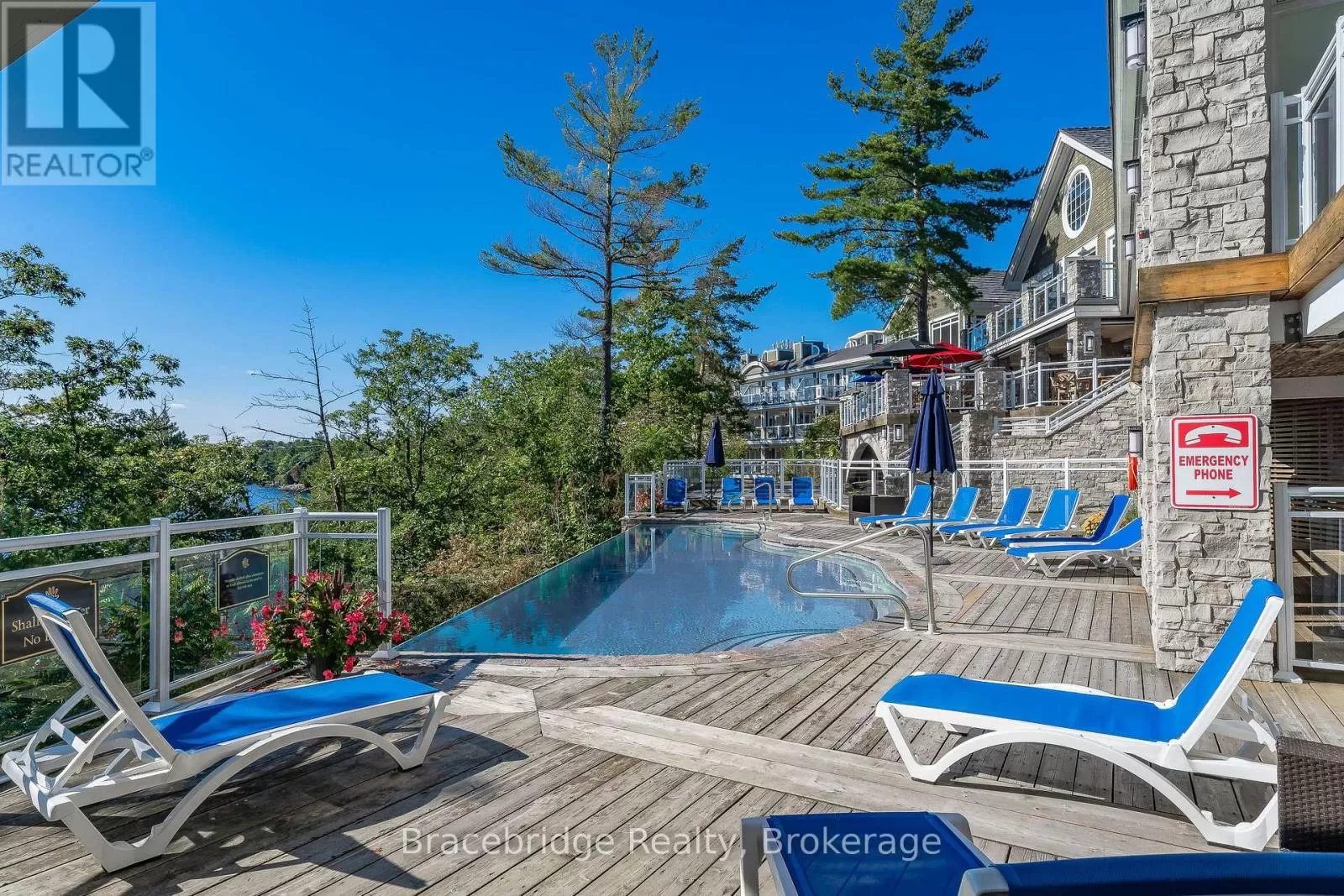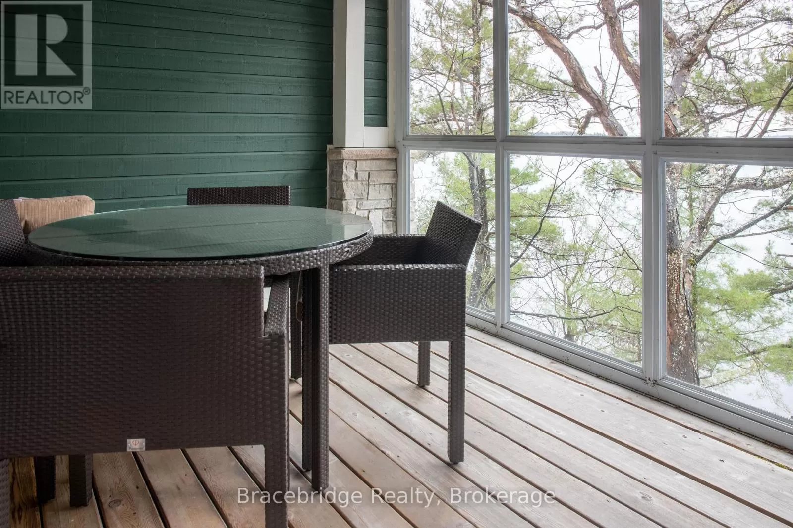 Cross Streets: Muskoka Rd 118 W. ** Directions: Follow hwy 118 W to Touchstone Resort. Escape to easy, maintenance-free cottage living in this bright two-storey, two-bedroom, two-bathroom unit, thoughtfully designed with multiple outdoor spaces. Relax on the BBQ deck, spend evenings in the enclosed Muskoka room, or soak up the sun on your private upper-level deck off the primary suite. Ownership includes 6 weeks annually, with a rotating bonus week every second year (one of Christmas, New Years, May 24, or Thanksgiving), plus the option to place your unit in the rental program for added income. High-speed internet ensures you can stay connected, making this an excellent choice for those who want the option to work remotely while enjoying Muskoka. Touchstone Resort provides a full range of amenities for every lifestyle. Dine at the on-site Touchstone Grill, lounge by the infinity pool and hot tub overlooking Lake Muskoka, or enjoy the sandy beach with an additional pool, hot tub, playground, and firepits. For active days, take advantage of the tennis and pickleball courts, spa, and fitness centre, or explore the many docks and decks along the waterfront. Conveniently located between Bracebridge and Port Carling, the resort keeps you close to fine dining, shopping, and local attractions while offering the ultimate Muskoka retreat.D1 weeks. Please note this is a non-pet-friendly unit. Monday to Monday occupancy. (id:27476)