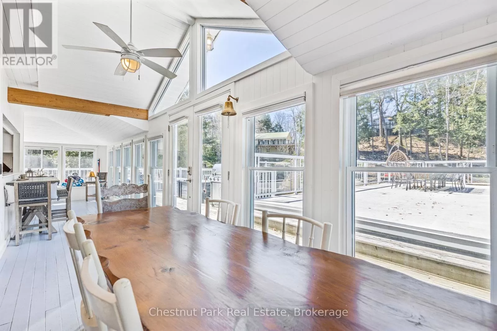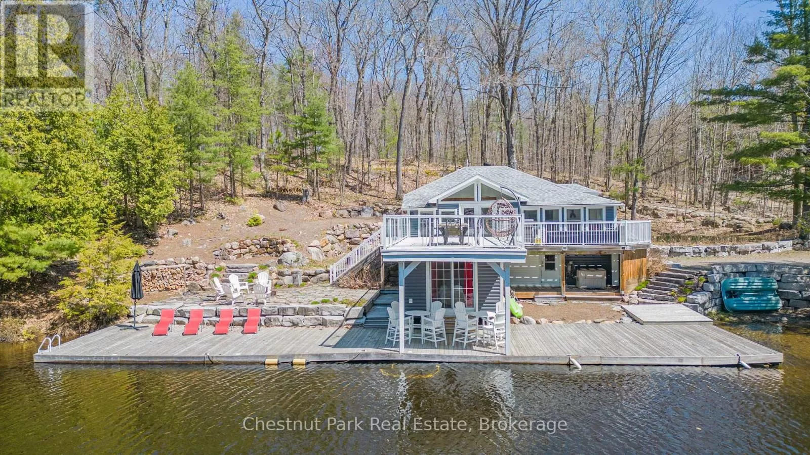 Cross Streets: Highway 169 to Dark Bay Road, SOP. ** Directions: Highway 169 to Dark Bay Road to sign on Property. This gem ticks all the boxes! Waters edge living with sunsets on Lake Muskoka. Charming three plus two bedroom fully winterized lake home mere minutes to Bala on Lake Muskoka. Turn key offering that shows pride of ownership. Open concept kitchen/dining & living area. Expansive outdoor living space with 15 x 30 entertaining deck. Extensive perennial gardens and landscaping. Great privacy. Sand cove and deeper water off the dock nestled in a quiet bay. Opportunity for expansion. Income potential with existing summer renters if so desired. This prize offering won't last! (id:27476)