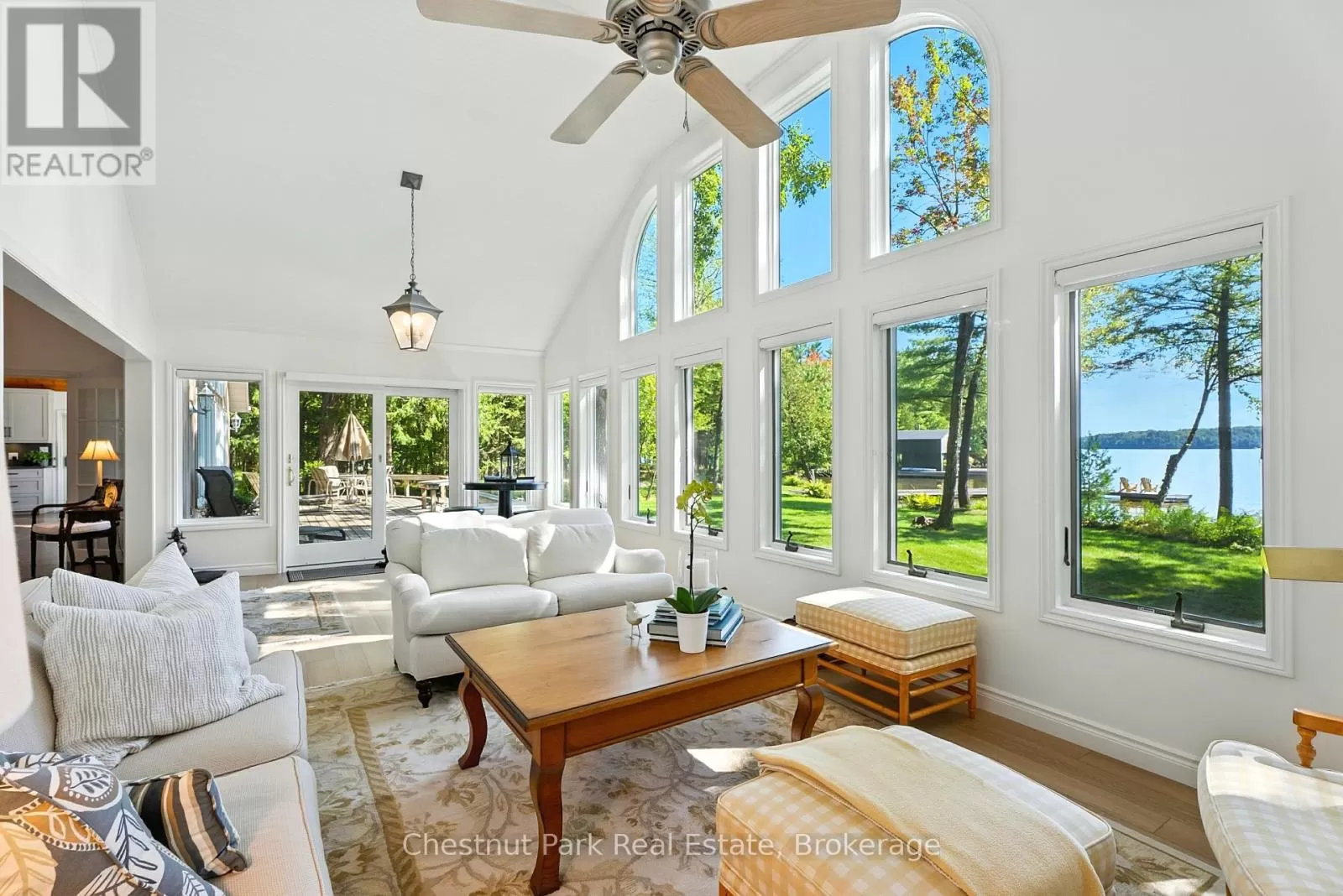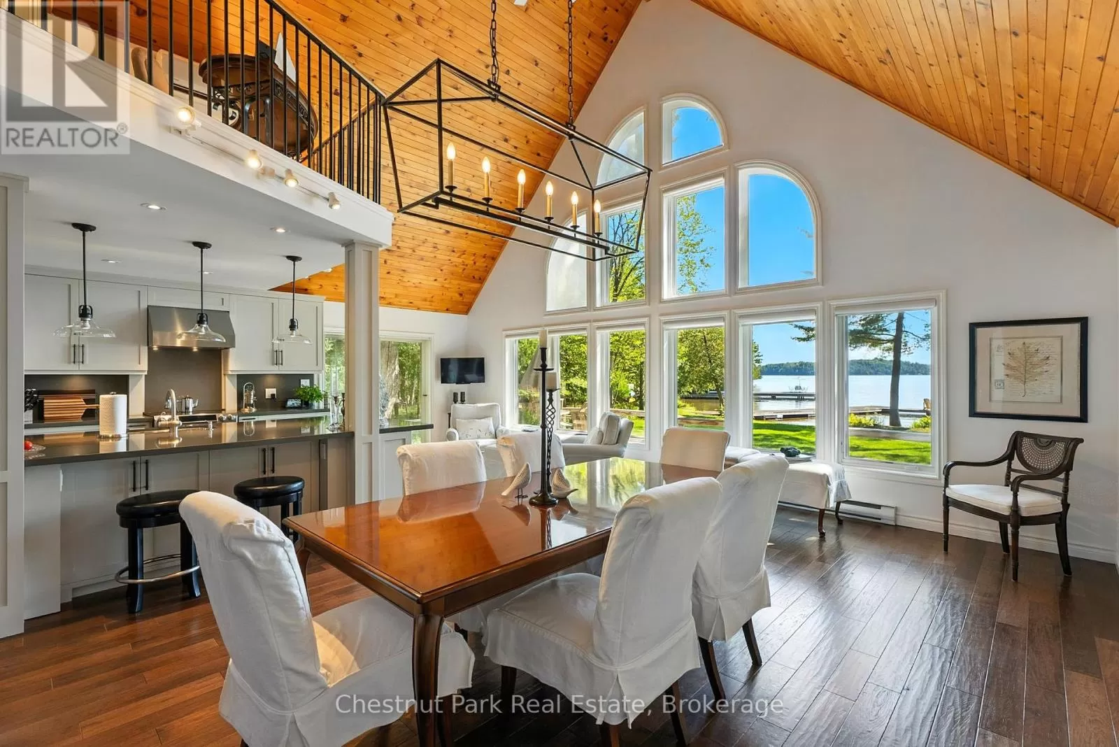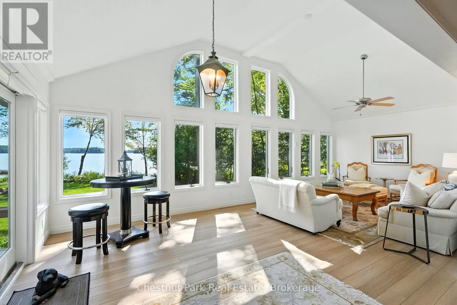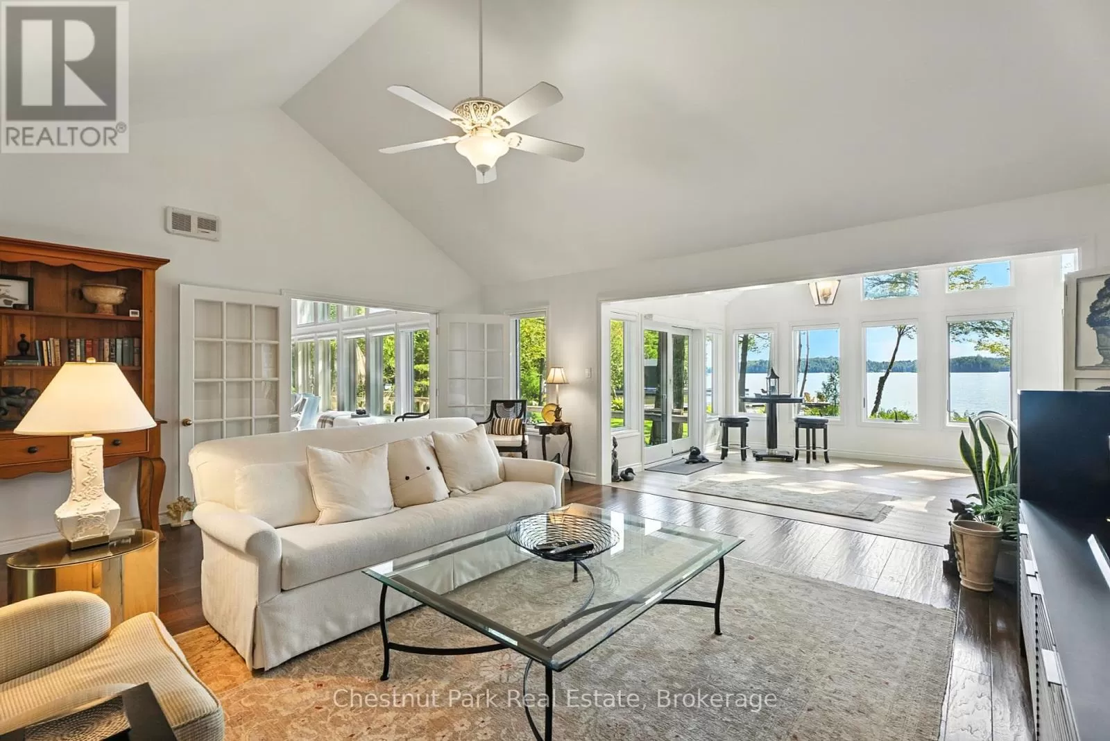 Cross Streets: Peninsula Road & Juddhaven Road. ** Directions: Minett to Juddhaven Road to Morinus Road, to 1166-2 (no signs at road). Set on the coveted shores of Lake Rosseau, this exceptional 1.7-acre family retreat offers everything you envision in a Muskoka cottage southwest exposure, a level lot, and long, protected lake views that feel like your own private paradise. With year-round access and a location just minutes from Port Sandfield and the JW Marriotts spa and dining, this property effortlessly combines seclusion with convenience. Enjoy pristine waterfront complete with a sand beach and spacious dock ideal for sun-soaked afternoons, water sports, and gathering by the lake. Mature gardens and a generous wrap-around porch frame the cottage, creating idyllic outdoor living spaces perfect for family connection and relaxed entertaining. Inside, the 4-bedroom, 3-bathroom cottage impresses with soaring vaulted ceilings and a full wall of windows that draw Lake Rosseau's beauty right into the heart of the home. An open-concept layout enhances the sense of space, anchored by a stunning chefs kitchen with quartz island and backsplash, stainless steel appliances, and a walk-in pantry. A wood-burning fireplace adds warmth and charm to the dining area, while the sunroom offers a peaceful spot to unwind. Thoughtfully designed with year-round comfort in mind and function, the home features hydronic in-floor heating, a main-floor guest suite with 3-piece bath, a versatile office or overflow bedroom, and an upper-level primary suite with a lofted office nook overlooking the living space. Engineered hardwood throughout, beautifully tiled bathrooms, and ductless AC units provide modern ease, while a paved driveway, two-car garage, and carport ensure ample parking for guests. This Lake Rosseau gem is the ultimate Muskoka escape private, picturesque, and perfectly suited for generations of family memories. (id:27476)