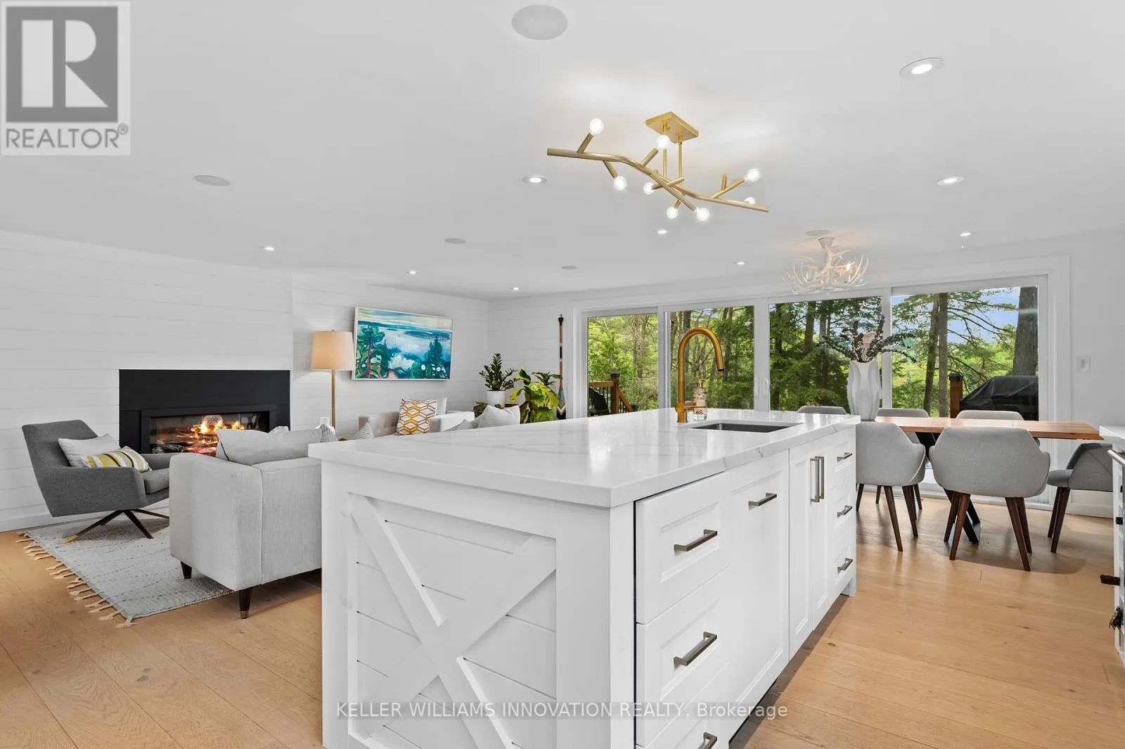 Cross Streets: Oakridge Road. ** Directions: From Bracebridge to Port Carling - HWY 118 West #2872. Welcome to Luxury on Brandy Lake! This four-season Muskoka treasure where timeless natural beauty meets modern sophistication is just 5 minutes from beautiful Port Carling! From the moment you arrive, the estate feels like a private sanctuary, framed by towering white pines and the glittering waters of Brandy Lake stretching out before you. Inside, wall-to-wall lakeside patio doors invite the outdoors in, bathing the open-concept living space in golden light. Every detail has been curated for elegance and ease, from the warm glow of the linear propane fireplace to the seamless integration of Lutron lighting, Art TVs, and a Sonos sound system that carries music from room to dock. The kitchen is a showcase of modern design, featuring a quartz waterfall island and premium appliances. The main level offers three serene bedrooms and a versatile games room that can transform into a fourth bedroom. A spa-inspired bathroom with heated floors, a stonewood vanity, and an illuminated LED mirror adds a touch of indulgence. Through the breezeway, discover a private guest suite doubling as a theatre room, complete with a projector, queen size bed, pullout couch and a walkout to the hot tub beneath the stars. Upstairs, a secluded bedroom offers unobstructed lake views, accompanied by a full bathroom and a reading nook. Outdoors, the hammock swings sway gently by the shoreline while music drifts softly across the lake. This is a place where mornings begin with sunrise reflections and evenings linger in twilight calm. Practicality meets luxury with ample parking for vehicles and boat trailers, municipal year-round road access, and the vibrant heart of Port Carling just minutes away with boutique shops and dining. Offered fully furnished, with linens and thoughtful touches included, this lakeside gem is both a turn-key haven and a proven investment property. This is an estate where every season writes a new chapter of elegance, comfort, and timeless Muskoka living. (id:27476)