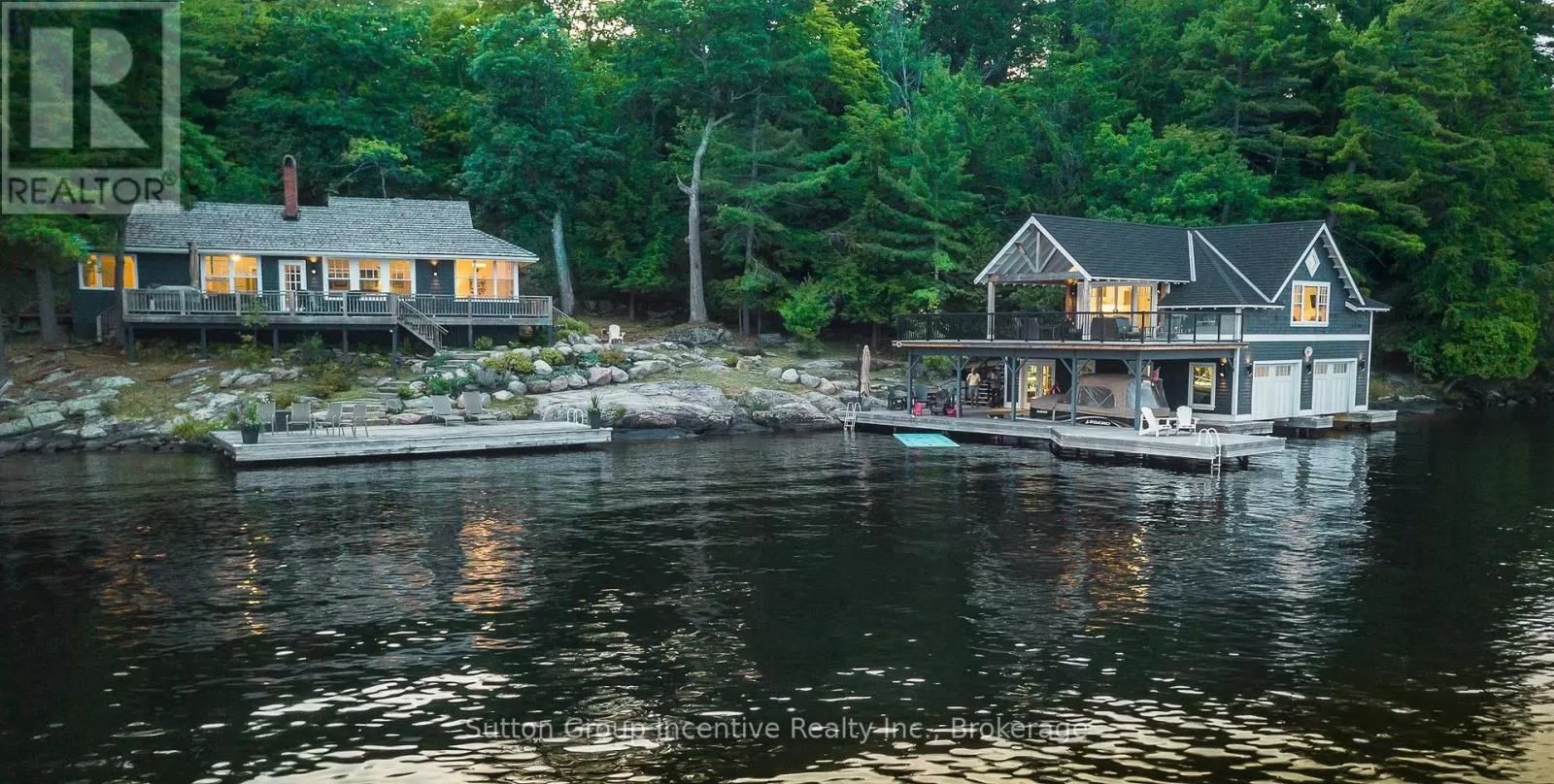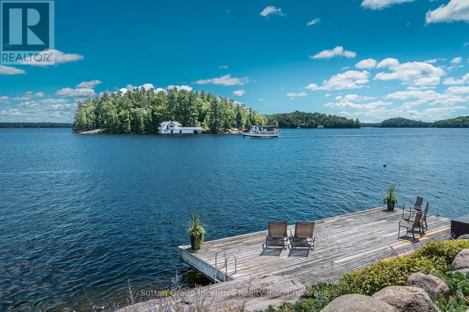 Cross Streets: Southeast corner of Ouno Island, near SWS Minett. Call the listing agent for details. 905-599-1143. We can arrange access to agents wanting to show the property by water. ** Directions: Park at the new Marina. Licenced Short Term Rental on Lake Rosseau in Muskoka, a 5-minute boat ride from the marina to your private Island property. Weekly Rental Cost: $9,988 or $1,426 per night + HST. Main Cottage + boathouse is available in July 2026, water access only. Enjoy your private rental on the Famous OUNO island on Rosseau Lake in Muskoka, with 390 feet of frontage and multiple living spaces, it is a perfect fit for a large group. Launch your boat at Cleveland House Marina near the JW Marriott, where you will have a reserved mainland boat slip and parking space for two. You will be able to arrive at your property with ease. The deep-water access and a covered boat slip are easily navigable by day or night. The property is located on the leeward (less windy) side of the prestigious island, only 5 minutes from the small marina with shops, amenities and gas. Get all-day sunshine and use all the Docks and Decks. The Main Cottage, Boathouse, Guest Bunkie, and Firepit are yours to use. The Main Cottage has three bedrooms and two baths with a living and dining room area with a full kitchen and pantry. The Boathouse has one bedroom with a King Bed and full lake view, one three-piece bathroom, a Den with a Double Bed with no window, a bunkie with a double bed and a lake view front porch. The boathouse has an entertainer kitchenette with a large dining island, a microwave, a toaster oven, an induction hot plate, and several small appliances. The open-concept living room has the best long lake view for soul-inspiring sunrises. The boat house features a 650 sq ft. viewing deck and is partially covered, offering an outdoor living space with BBQ/Blackstone Grill at both the Boathouse and Main Cottage. Efficient A/C system. This property is Pet-friendly with luxury finishes. Maximum of 10 people; this is a weekly rental available in July only. Sq footage includes Bunkie. Professional cleaning services are available but not included. (id:27476)