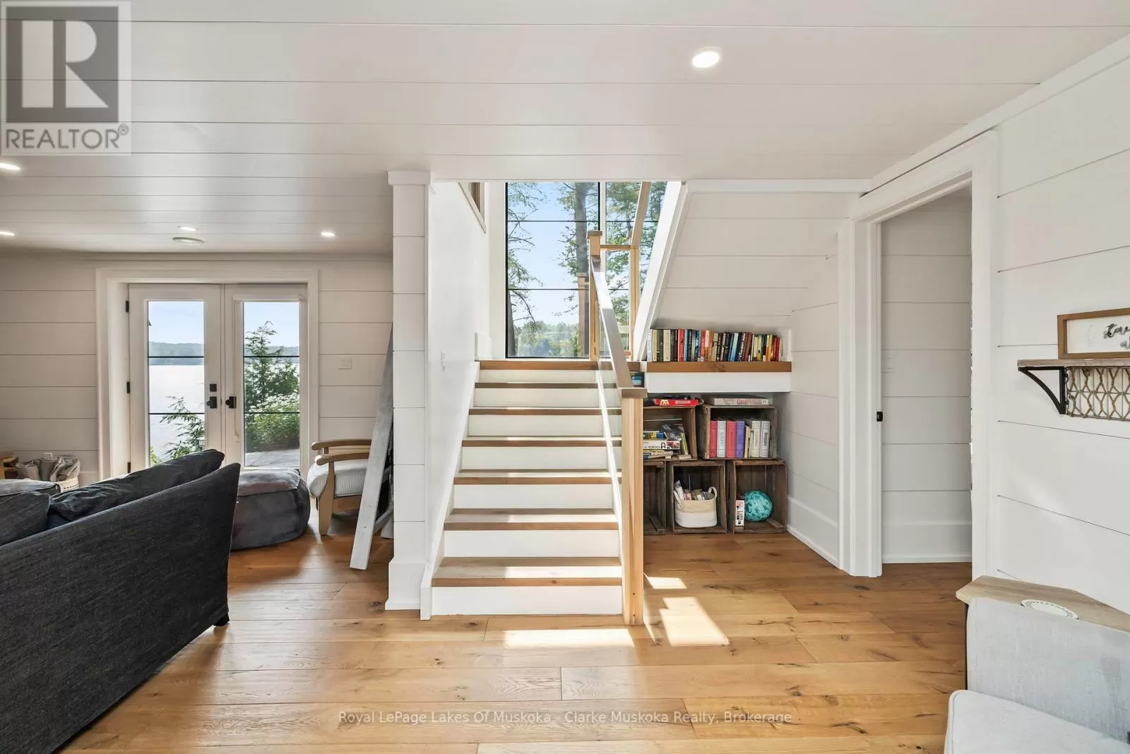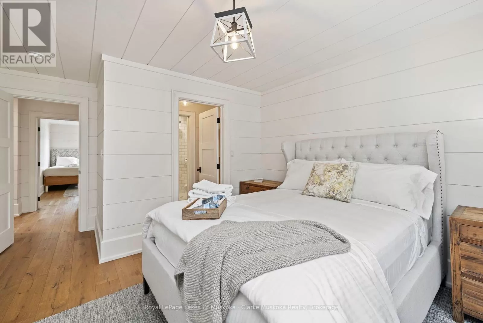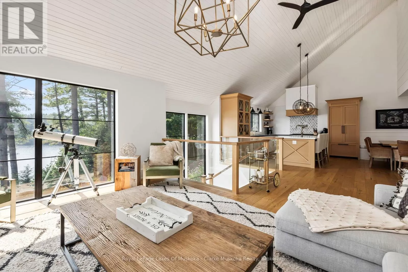 Cross Streets: Take Hwy 169 to Mortimer's Point Rd, follow to 1184 \"Clarkson Lane\", follow #s to #9. ** Directions: Take Hwy 169 to Mortimer's Pt Rd, follow to 1184, follow to unit #9. This 3800+ sq ft, 1.5 storey Modern Farmhouse features 4 + 1 Bedrooms, a den, 6 baths, 3 separate living areas, a main floor master with walkout to a private deck, attached 2-car garage, and a large sunroom off the main floor living room. Enjoy both wood-burning and gas fireplaces, as well as a single-storey, two-slip boathouse with glass garage doors opening to a covered entertainment area. This successful rental property boasts spectacular attention to detail throughout, including custom millwork, a gorgeous kitchen featuring oak detailing, MDF shiplap walls, and a beautiful mix of oak hardwood and tile. Fully landscaped with various outdoor seating areas to take in long views down Lake Muskoka, the east-facing shoreline offers deep water off the dock perfect for swimming and boating. (id:27476)