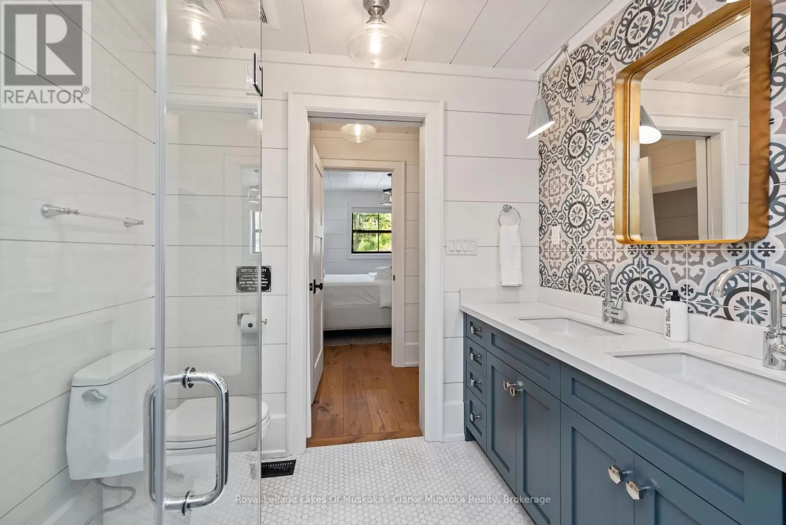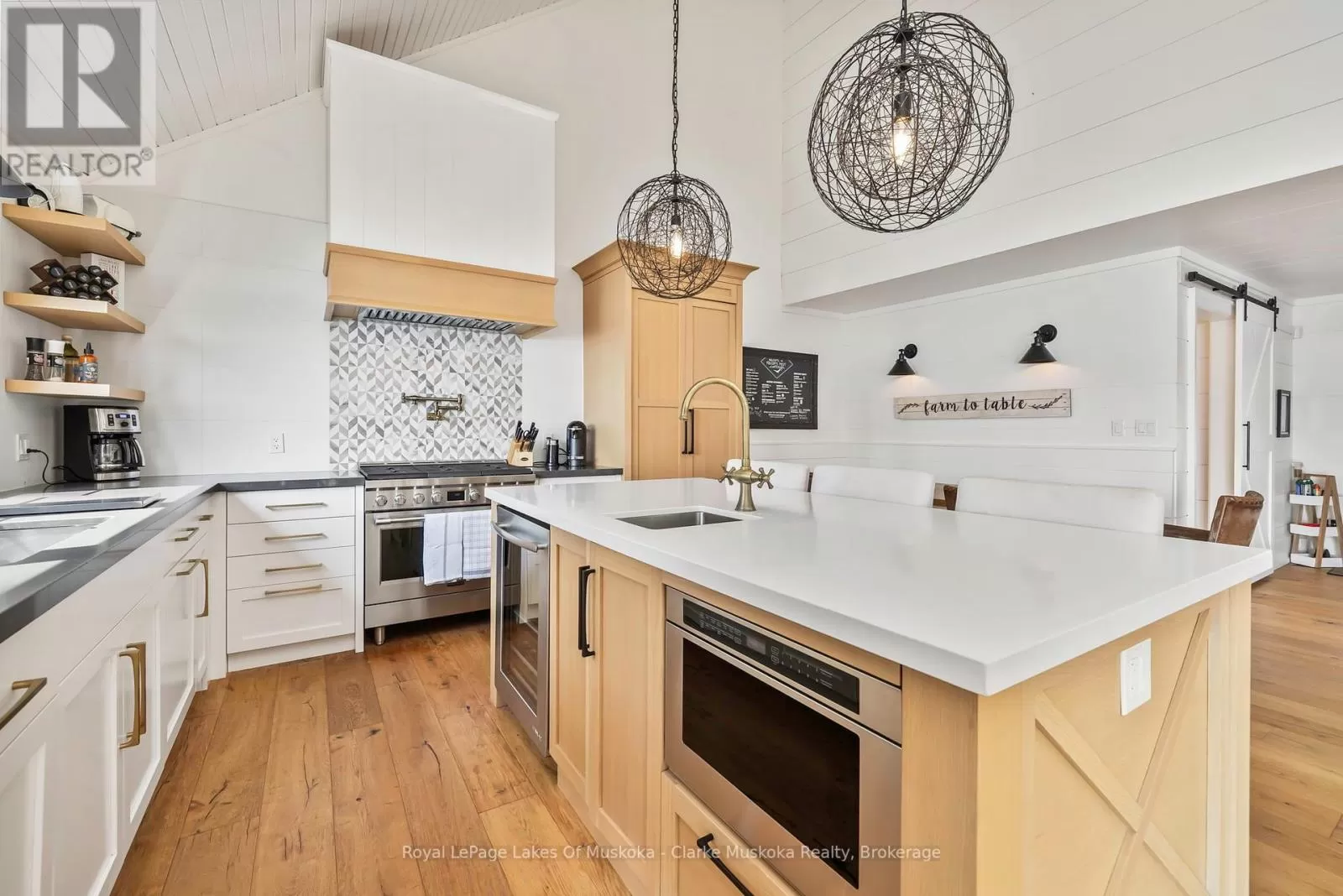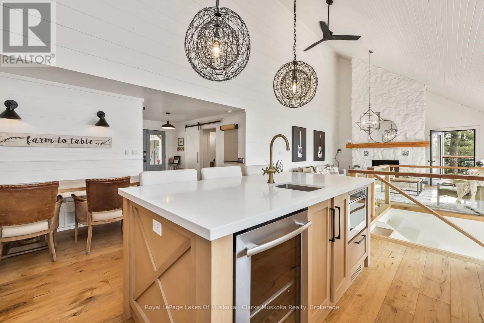Cross Streets: Take Hwy 169 to Mortimer's Point Rd, follow to 1184 \"Clarkson Lane\", follow #s to #9. ** Directions: Take Hwy 169 to Mortimer's Pt Rd, follow to 1184, follow to unit #9. This 3800+ sq ft, 1.5 storey Modern Farmhouse features 4 + 1 Bedrooms, a den, 6 baths, 3 separate living areas, a main floor master with walkout to a private deck, attached 2-car garage, and a large sunroom off the main floor living room. Enjoy both wood-burning and gas fireplaces, as well as a single-storey, two-slip boathouse with glass garage doors opening to a covered entertainment area. This successful rental property boasts spectacular attention to detail throughout, including custom millwork, a gorgeous kitchen featuring oak detailing, MDF shiplap walls, and a beautiful mix of oak hardwood and tile. Fully landscaped with various outdoor seating areas to take in long views down Lake Muskoka, the east-facing shoreline offers deep water off the dock perfect for swimming and boating. (id:27476)