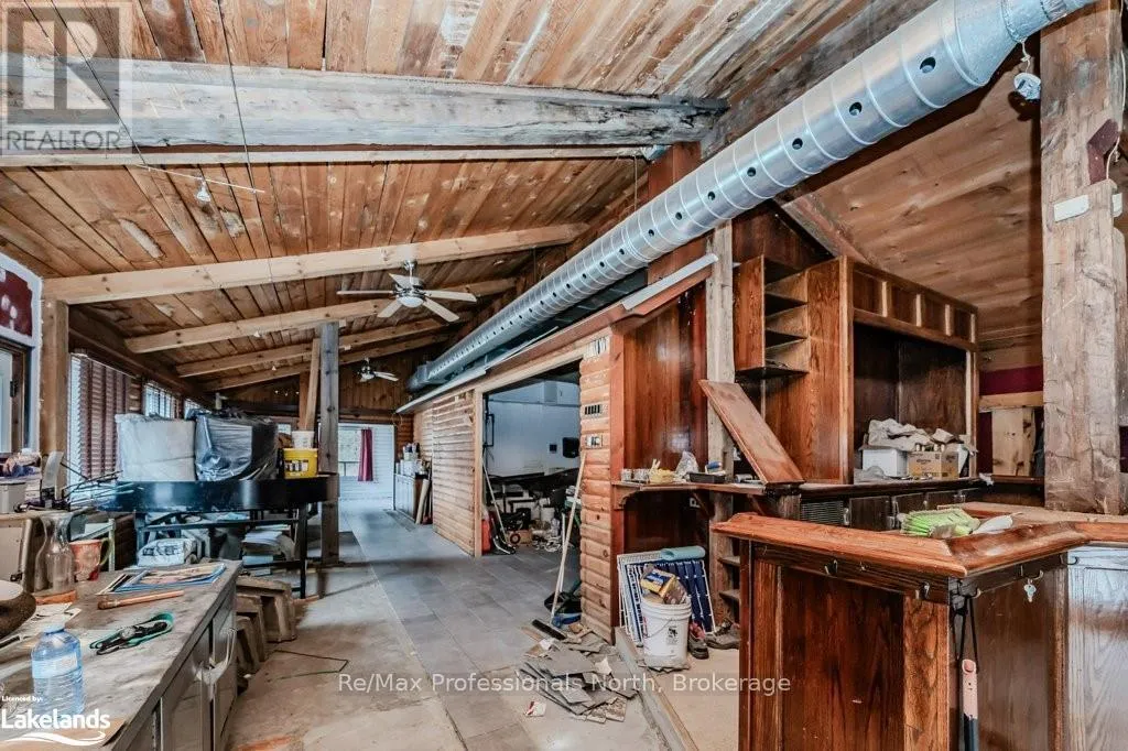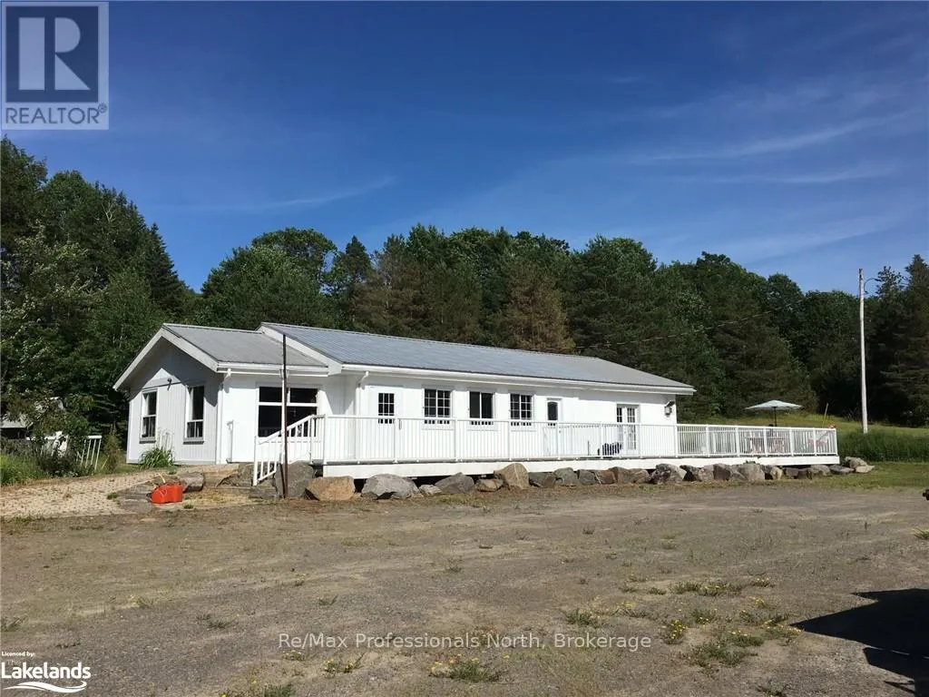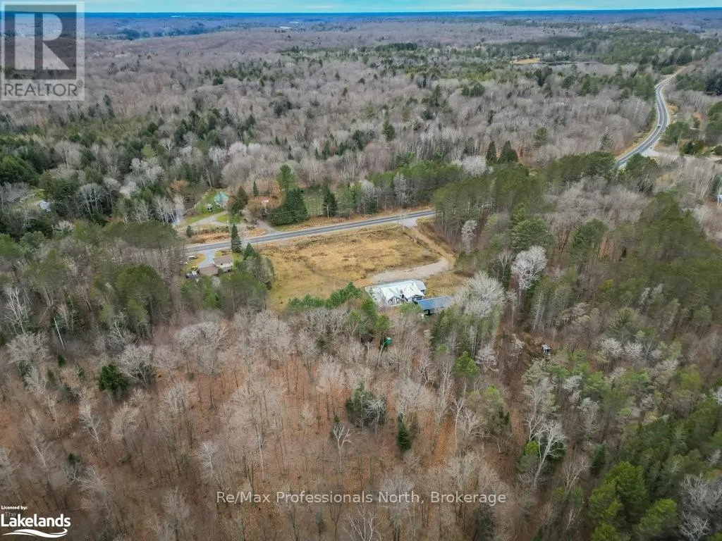 Highway 11 or Muskoka Rd. 4 to west and north on Highway 141 to address on east side of road. SOP. New price - Ready to sell this year. An exceptional opportunity to acquire over 43 acres of prime Muskoka commercial and rural land strategically located in the heart of Muskoka on a busy highway, just 15 minutes from Bracebridge, Huntsville, Port Carling, Port Sydney and Rosseau. Ideally suited for contractors, distributors, marina, camp, restaurant, etc. seeking a versatile property with scale access, and potential. This property comprises two merged parcels with multiple zoning designations and two buildings providing a flexible foundation for a wide range of business or lifestyle ventures. The first property spans 2 acres with 250 feet of highway frontage, currently zoned RUC-1. The existing building offers 2,292 square feet of partially renovated space, perfect for restaurant or event venue or other commercial ventures. Its has a large 2,000 sq. ft. deck, four washrooms, a oak bar, reclaimed beams, wiring for sound and alarm systems and wheelchair accessible . Building #2 offers 1,177 square feet, which provides ample room for various uses, from office space to retail to residence. It is a blank canvas ready for your vision, complete with all necessary utilities; including a 22-kilowatt standby generator for seamless backup power. The second property takes the total frontage to 868 feet and adds an impressive 41.3 acres of undeveloped land with scenic woods, open meadows, mixed forest and beautiful escarpment, and several walking trails. There also a fully insulated Bunkie, set back from the main building, perfect for guests or additional workspace. This is a rare and strategic Muskoka Holding combining visibility, acreage, and flexibility in one outstanding package. With a new price to sell this year, the time to act is now for the future of your successful venture. (id:27476)