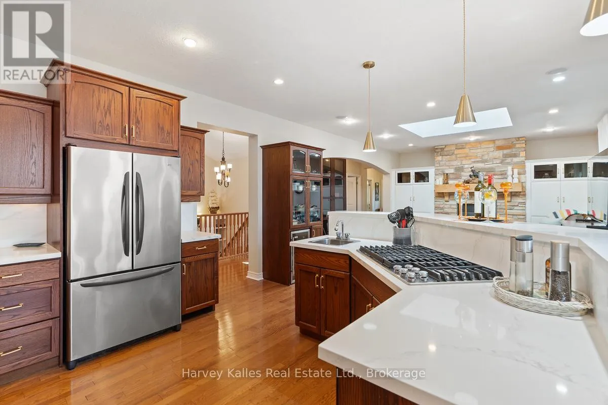 Cross Streets: Highway 169 & Gordon St. ** Directions: #169 to Bala to Gordon Street to 139 Gordon Street. This architecturally striking circa 2005 in-town Bala home offers over 3,800 sq. ft. of finished living space, with handsome curb appeal, views of Lake Muskoka. A premier location on a private 80' x 190' lot featuring mature trees, granite outcroppings, and extensive gardens. The home boasts a NEW (2025) roof, stone pillars, a covered front porch, and an attached 1.5-car garage, all situated on a quiet recessed street steps from all Bala's amenities, including the Historic Bala Walk, Don's Bakery, shops, dining, public docks, boat launches, and more. Inside, the welcoming foyer leads to a spacious open-concept living, dining, and kitchen area, a propane fireplace, 5-burner propane stove, quartz countertops, stainless steel appliances, and ample cabinetry. The main floor also features a primary suite with a walk-in closet, a luxurious 5-pc ensuite, and access to a sun-soaked southwest-facing sunroom. There is a guest bedroom with ensuite privilege to a 3-pc bath, and a generous laundry/mudroom. The fully finished lower level with its own entrance offers a bedroom, office, boardroom, 3-pc bathroom, and garage access, making it ideal for those who work from home or as an in-law suite. Recent upgrades include newer appliances, quartz countertops, a kitchen sink, fresh paint, and a leaf guard system. This solid, well-maintained home combines privacy, comfort, and versatility in the heart of Muskoka, convenient to Port Carling, Gravenhurst, Hardy Park, and multiple lake access points. For those looking for affordable quality living in the heart of Muskoka ... a must see! (id:27476)
