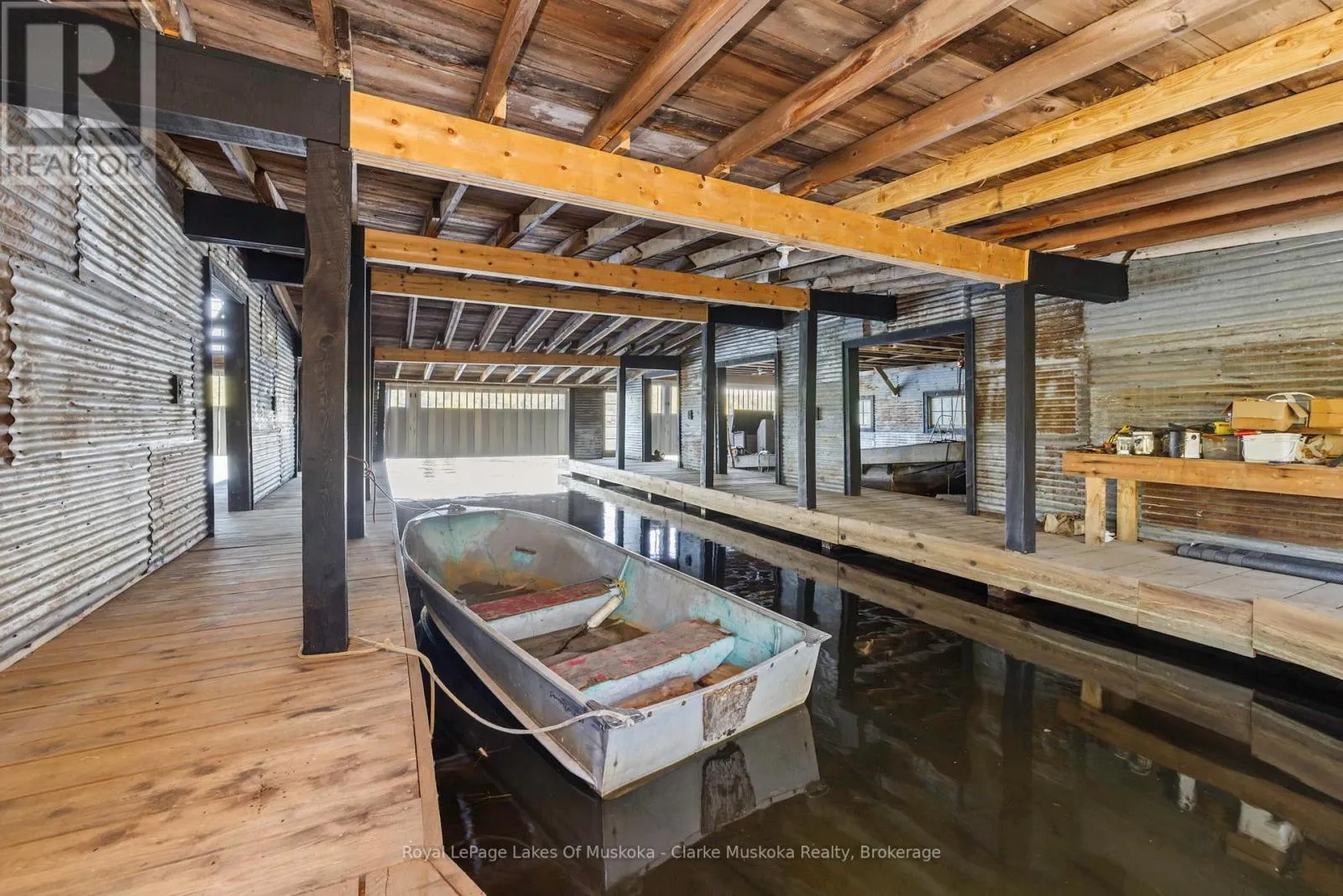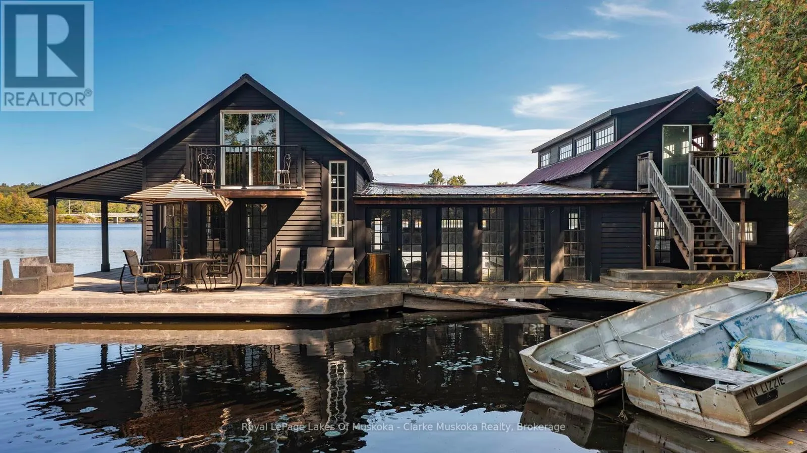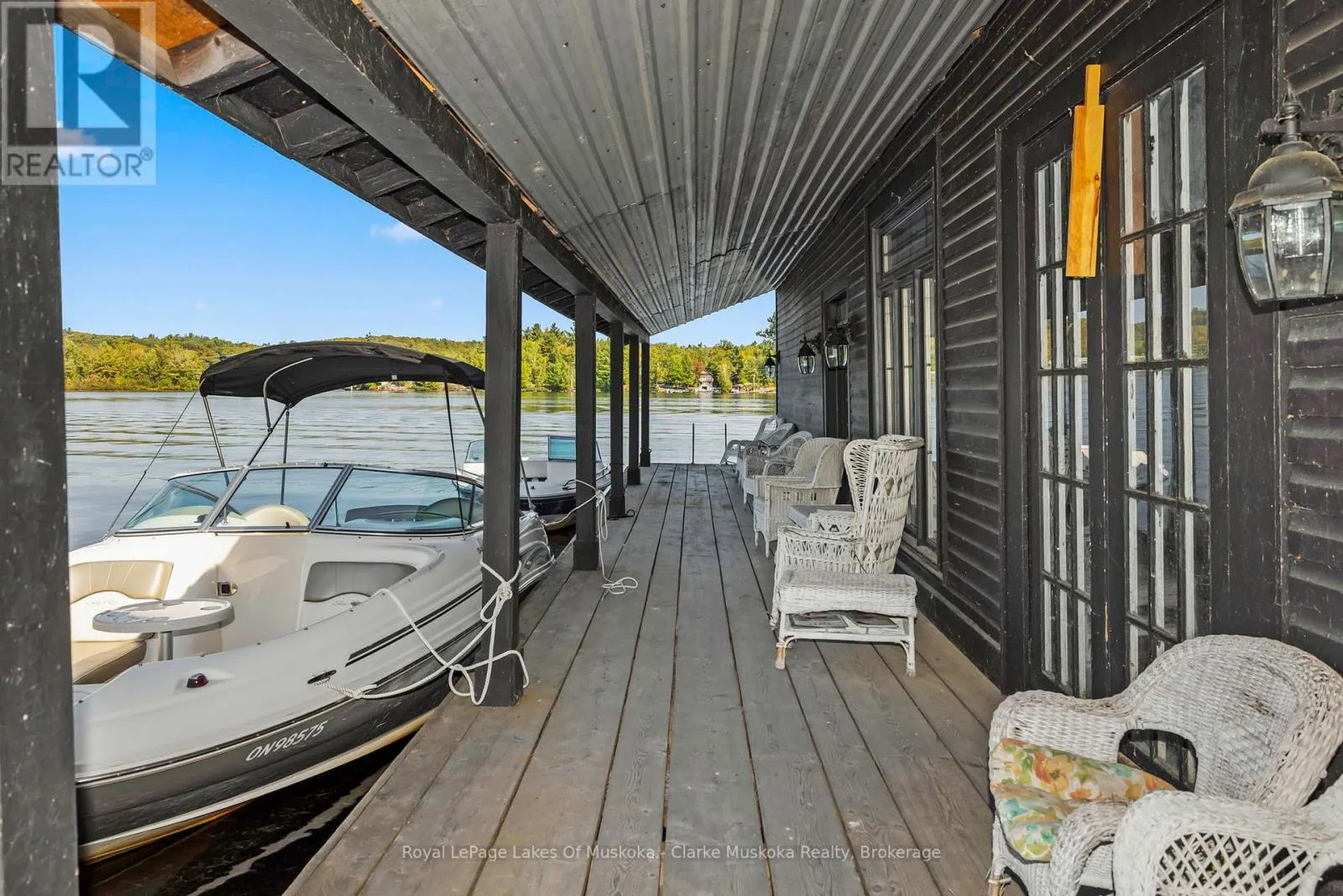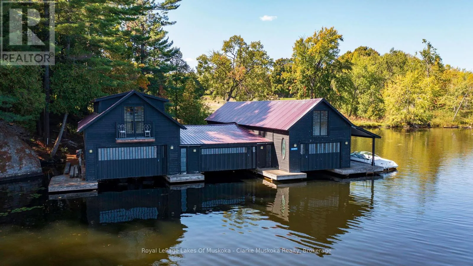 Cross Streets: Water access - Beaumaris Marnia. ** Directions: Beaumaris Marina - by boat to 34 Tondern Island M69A. A truly rare and exclusive opportunity to own a piece of Beaumaris history on coveted Tondern Island. This remarkable water-access-only boathouse is perched on a prime stretch of shoreline offering the best of both worlds: beautiful eastern views over the lake at sunrise and unrivaled sunset vistas to the west, overlooking the 7th fairway of the Beaumaris Yacht Club. Originally built in the 1940s to house the Edith Anne Steamship, this beautifully preserved heritage boathouse blends historical charm with modern potential. Zoned OS3 (Commercial Open Space), the property allows for a variety of flexible uses including marine storage and service, or even as a private club or personal retreat. Whether you're looking to showcase your boat collection, create a private escape, or invest in a one-of-a-kind waterfront asset, this property is an unparalleled opportunity in Muskoka's most prestigious enclave. A dream for boat enthusiasts and entertainers alike, the boathouse features three oversized slips: Slip 1: 50' x 12'; Slip 2: 52' x 14'8"; Slip 3: 38' x 14'8" Two generous cigar decks, one east-facing and one west-facing, provide the perfect settings to relax and entertain guests, taking full advantage of the all-day sun and panoramic views. The upper level offers substantial storage and could be customized to suit a variety of needs. (id:27476)