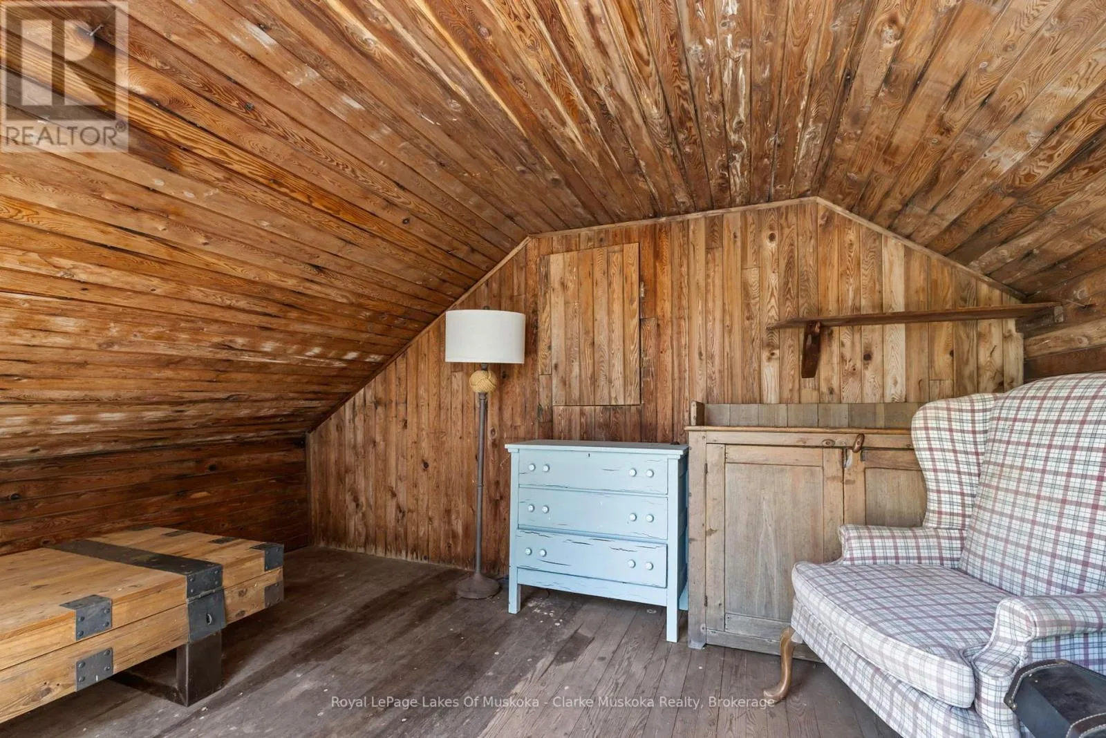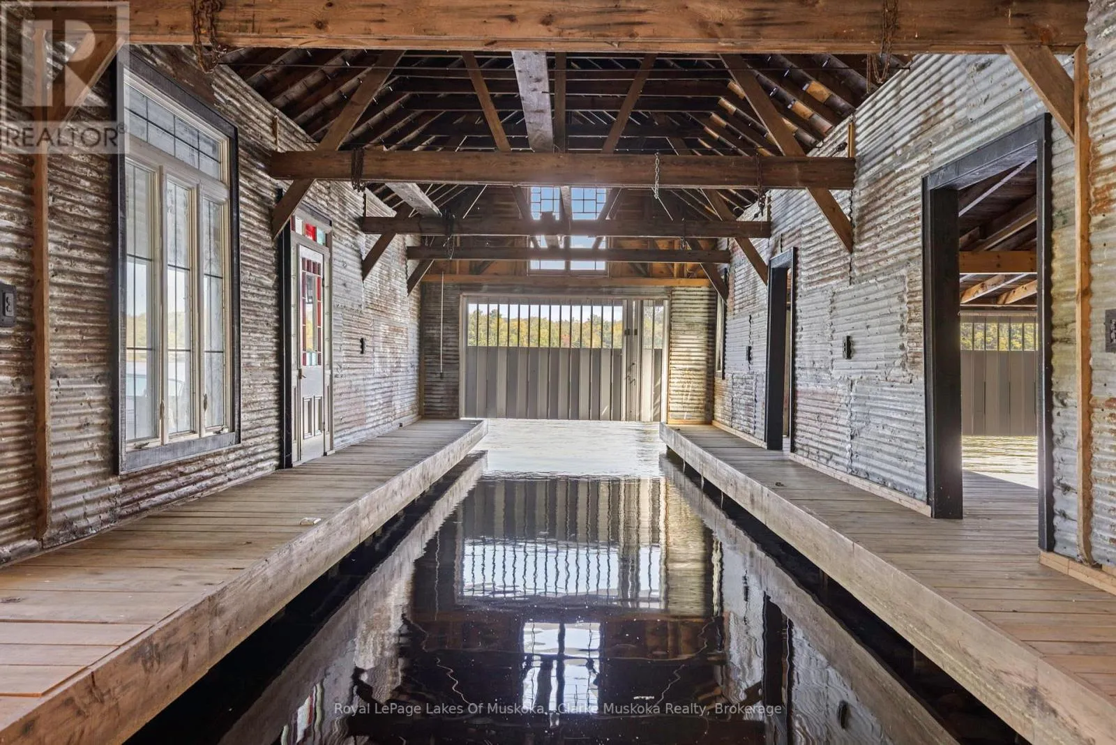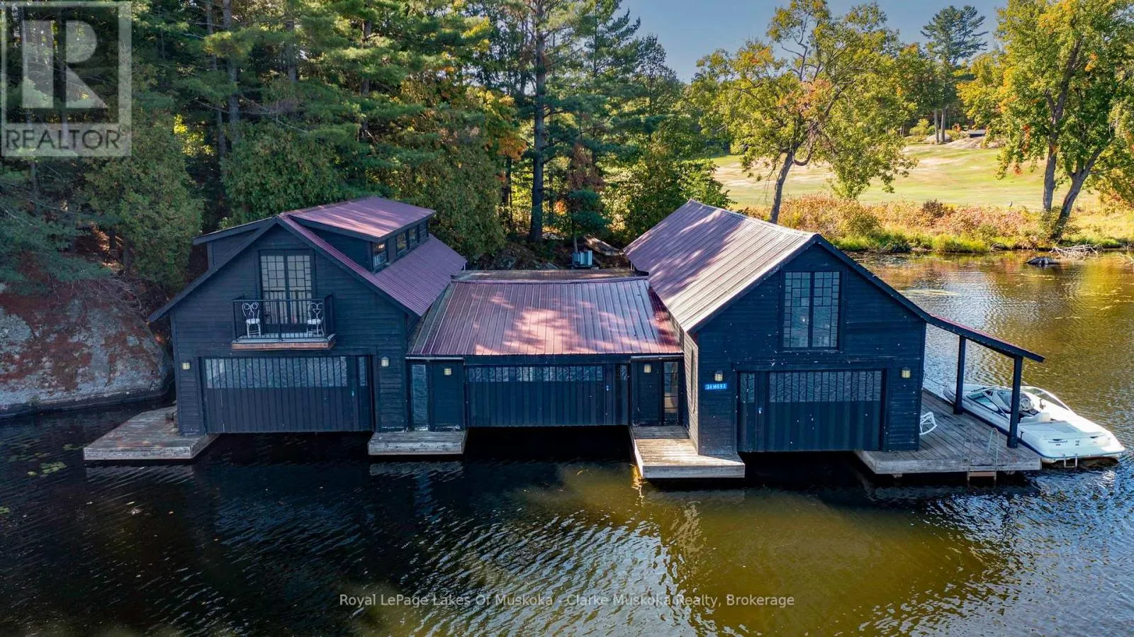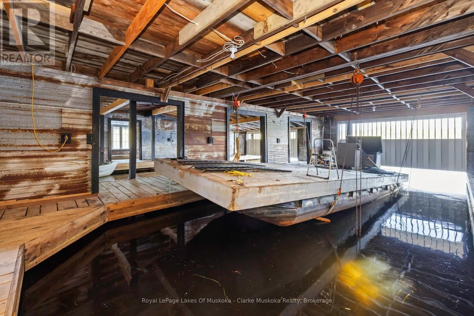 Cross Streets: Water access - Beaumaris Marnia. ** Directions: Beaumaris Marina - by boat to 34 Tondern Island M69A. A truly rare and exclusive opportunity to own a piece of Beaumaris history on coveted Tondern Island. This remarkable water-access-only boathouse is perched on a prime stretch of shoreline offering the best of both worlds: beautiful eastern views over the lake at sunrise and unrivaled sunset vistas to the west, overlooking the 7th fairway of the Beaumaris Yacht Club. Originally built in the 1940s to house the Edith Anne Steamship, this beautifully preserved heritage boathouse blends historical charm with modern potential. Zoned OS3 (Commercial Open Space), the property allows for a variety of flexible uses including marine storage and service, or even as a private club or personal retreat. Whether you're looking to showcase your boat collection, create a private escape, or invest in a one-of-a-kind waterfront asset, this property is an unparalleled opportunity in Muskoka's most prestigious enclave. A dream for boat enthusiasts and entertainers alike, the boathouse features three oversized slips: Slip 1: 50' x 12'; Slip 2: 52' x 14'8"; Slip 3: 38' x 14'8" Two generous cigar decks, one east-facing and one west-facing, provide the perfect settings to relax and entertain guests, taking full advantage of the all-day sun and panoramic views. The upper level offers substantial storage and could be customized to suit a variety of needs. (id:27476)