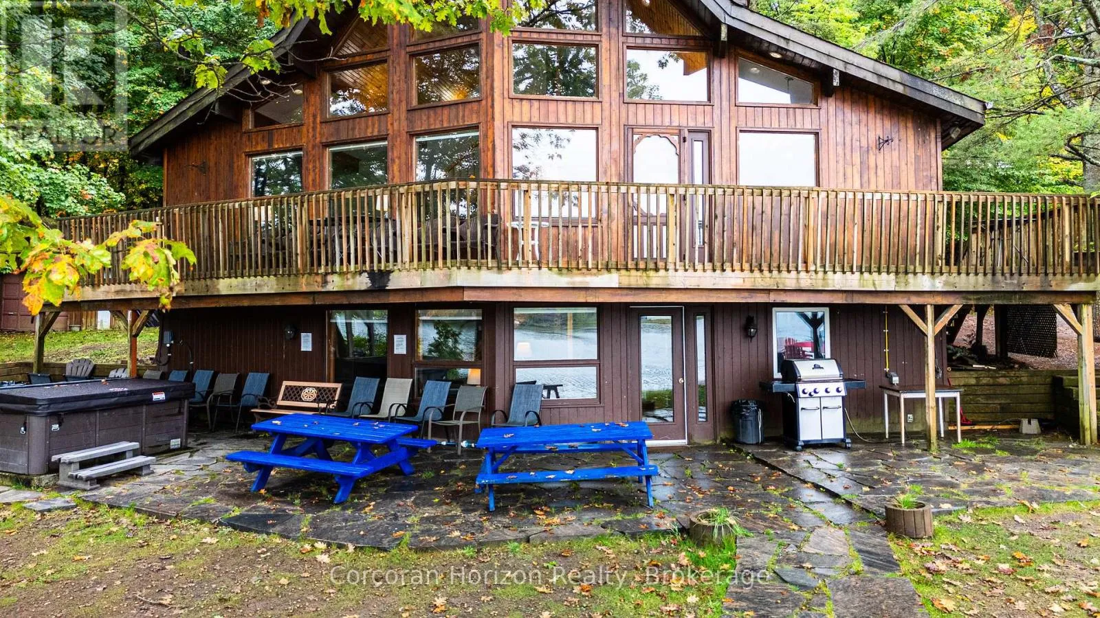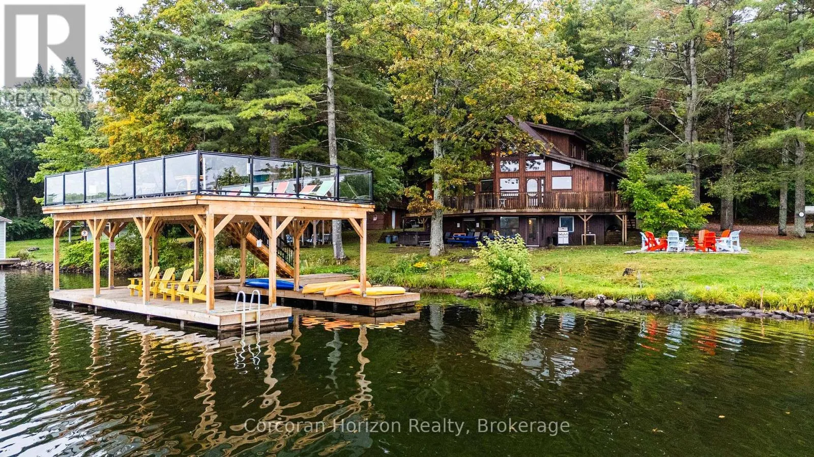 Cross Streets: HWY 118 West and Foreman Rd. ** Directions: HWY 118 West to Foreman Rd left on to Mirror Lake Rd. Left on to Todholm Dr and then all the way down to the end of Todholm Dr sign is at property. Welcome to this beautiful & unique A-frame cottage on Lake Muskoka in Port Carling, the heart of Muskoka. This 4-season cottage is fully renovated and ideally located across from Hanna Park and beach. Boat to downtown Port Carling in 2 mins and enjoy shopping, dining and watch the Segwun steamship travel through the locks over to Lake Rosseau. This rare property offers expansive waterfront living with 211 ft of waterfront, a recently improved dock, complete with a 700 sq. ft. sun deck and a covered single boat slip. The sleek glass railing on the deck makes it perfect for entertaining or simply relaxing while soaking in the views. This property offers easy access to Lake Rosseau and, from there, Lake Joseph, giving you seamless boating between all three of Muskoka's most sought-after lakes. The dramatic A shape floods the interior space with natural sunlight through its soaring windows. The recently renovated kitchen provides ample room for cooking and entertaining. Flowing from the kitchen is an open concept dining and living room, complete with a floor-to-ceiling stone fireplace, inviting family and friends to make lasting memories. Enjoy your meals or morning coffee on the wrap-around deck accessible from the dining room and kitchen. On the main floor, there are two spacious bedrooms and a full bathroom. The second-floor loft, with its own bathroom, offers scenic views of the waterfront through the large windows, a truly breathtaking spot to unwind. The lower level continues the open concept living with a large family room, two bedrooms and a full bathroom. Walk out from the lower level to a stone patio, which includes an expansive fire pit at the water's edge and a 6-person hot tub overlooking the lake and boathouse. Significant upgrades bring peace of mind, including a new septic system, improved crib/dock and boathouse (2023), 24 kW Generator, and electric car charger. This property has a successful track record of rental income. (id:27476)