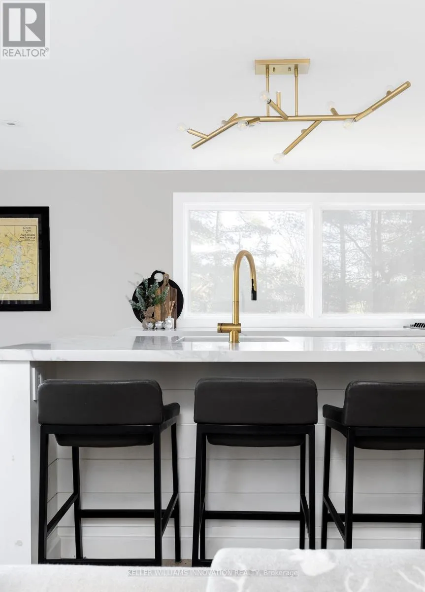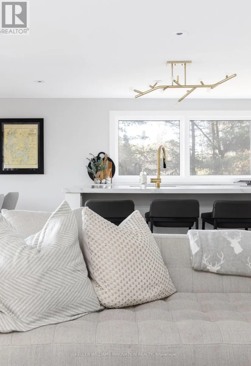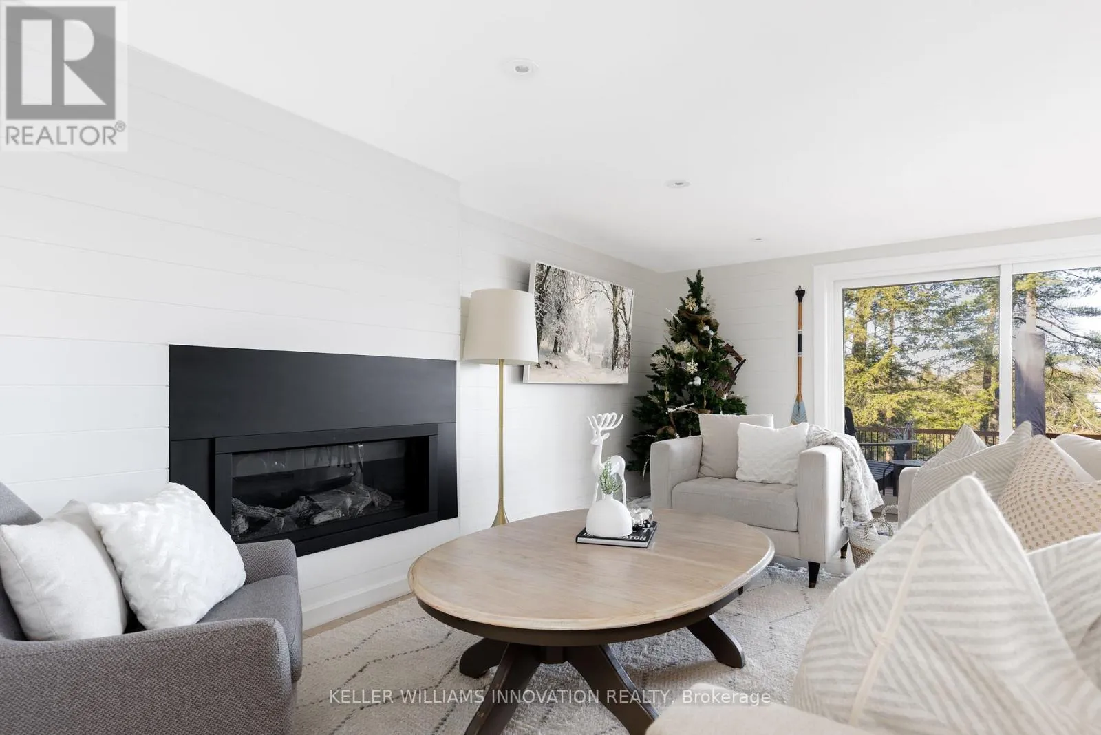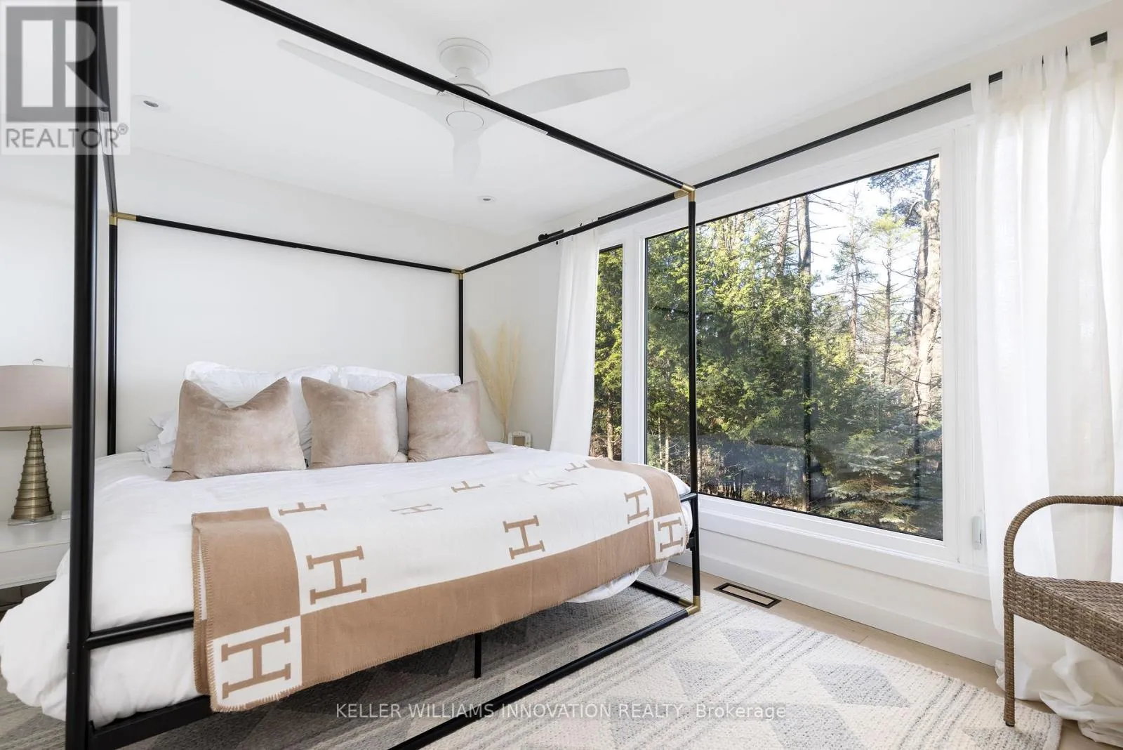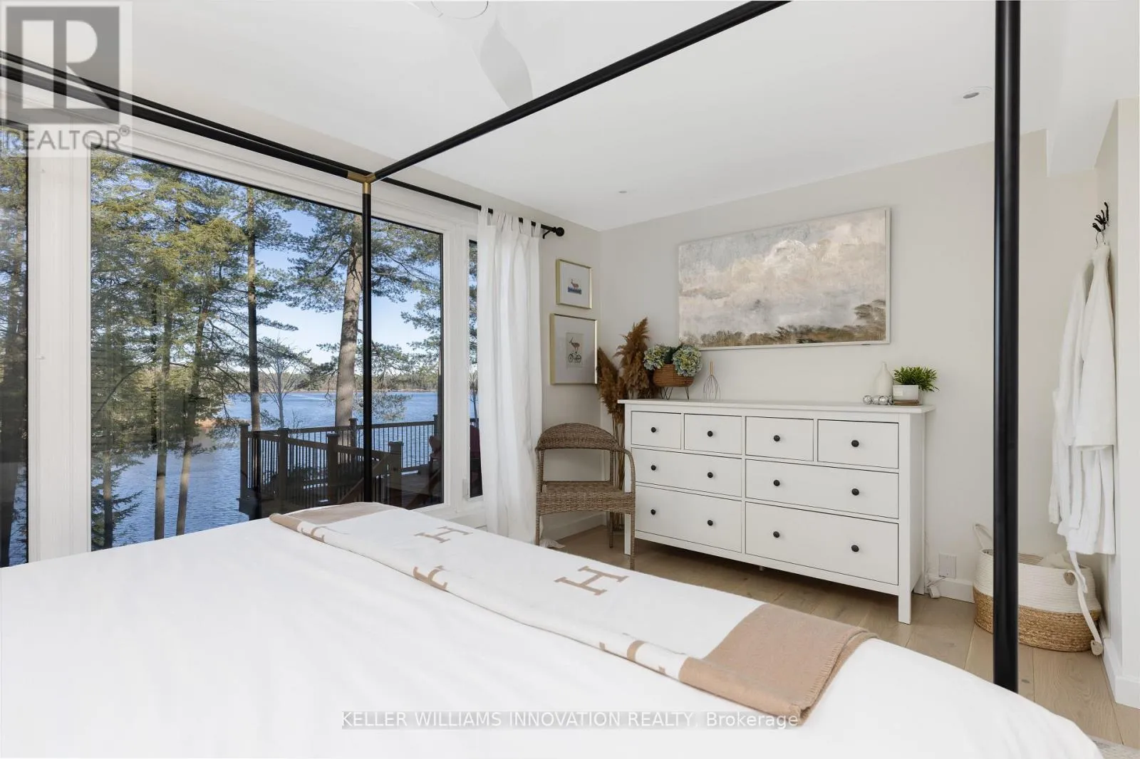 Cross Streets: Oakridge Road. ** Directions: From Bracebridge to Port Carling - HWY 118 West #2872. A long-standing, high-performing luxury investment, this Brandy Lake retreat has delivered over $160,000 in rental income in the most recent Airbnb season, with many prime weeks still open for booking. Welcome to Luxury on Brandy Lake, a refined four-season escape where contemporary design meets the quiet magic of Muskoka. Just five minutes from Port Carling, the property feels intentionally tucked away, surrounded by mature white pines with the lake stretching out in front of you like a private canvas.Inside, lakeside patio doors span the main living space, opening the home to natural light and uninterrupted water views. The interior is sophisticated and understated: a linear propane fireplace, Lutron lighting, Art TVs, and a seamless Sonos system throughout. The kitchen anchors the space with a quartz waterfall island and premium appliances, creating an effortless backdrop for hosting and everyday year-round living. Three serene bedrooms sit on the main level, along with a flexible games room that transitions easily into a fourth bedroom. A spa-inspired bathroom features heated floors and a sculptural stone-wood vanity. Connected by a breezeway, the private guest suite doubles as a theatre room with a projector, queen bed, pullout couch, and direct access to the hot tub.Upstairs, a secluded bedroom offers a panoramic lake view, a full bathroom, and a quiet nook perfect for mornings with a book.The property is designed for relaxed lakeside living, morning coffee at the shoreline, long afternoons on the dock, and evenings set against soft reflection on the water. Just up the road, you'll find convenient boat launches for Brandy Lake and iconic Lake Muskoka, giving you access to miles of open water and endless day trips. With ample parking, year-round municipal access, this is a rare blend of luxury, practicality, and proven investment strength. Offered fully furnished and turn-key, it's a Muskoka opportunity that stands in a category of its own. (id:27476)