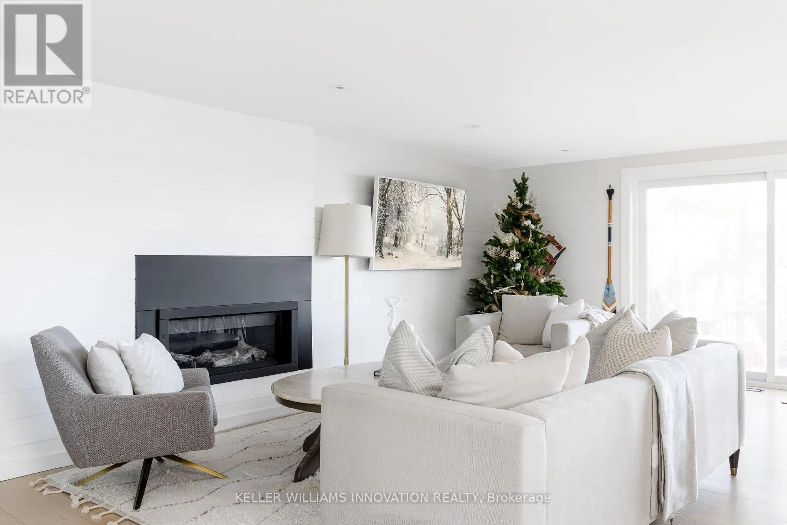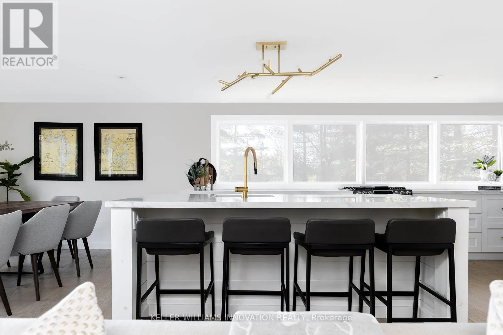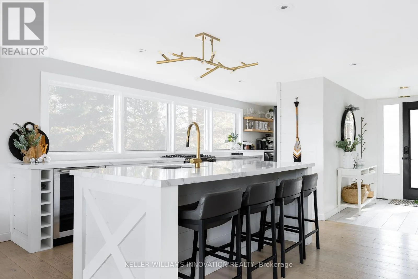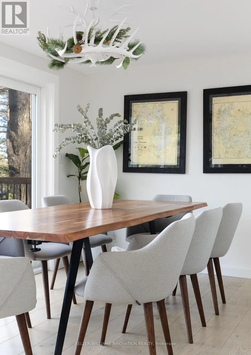 Cross Streets: Oakridge Road. ** Directions: From Bracebridge to Port Carling - HWY 118 West #2872. A long-standing, high-performing luxury investment, this Brandy Lake retreat has delivered over $160,000 in rental income in the most recent Airbnb season, with many prime weeks still open for booking. Welcome to Luxury on Brandy Lake, a refined four-season escape where contemporary design meets the quiet magic of Muskoka. Just five minutes from Port Carling, the property feels intentionally tucked away, surrounded by mature white pines with the lake stretching out in front of you like a private canvas.Inside, lakeside patio doors span the main living space, opening the home to natural light and uninterrupted water views. The interior is sophisticated and understated: a linear propane fireplace, Lutron lighting, Art TVs, and a seamless Sonos system throughout. The kitchen anchors the space with a quartz waterfall island and premium appliances, creating an effortless backdrop for hosting and everyday year-round living. Three serene bedrooms sit on the main level, along with a flexible games room that transitions easily into a fourth bedroom. A spa-inspired bathroom features heated floors and a sculptural stone-wood vanity. Connected by a breezeway, the private guest suite doubles as a theatre room with a projector, queen bed, pullout couch, and direct access to the hot tub.Upstairs, a secluded bedroom offers a panoramic lake view, a full bathroom, and a quiet nook perfect for mornings with a book.The property is designed for relaxed lakeside living, morning coffee at the shoreline, long afternoons on the dock, and evenings set against soft reflection on the water. Just up the road, you'll find convenient boat launches for Brandy Lake and iconic Lake Muskoka, giving you access to miles of open water and endless day trips. With ample parking, year-round municipal access, this is a rare blend of luxury, practicality, and proven investment strength. Offered fully furnished and turn-key, it's a Muskoka opportunity that stands in a category of its own. (id:27476)