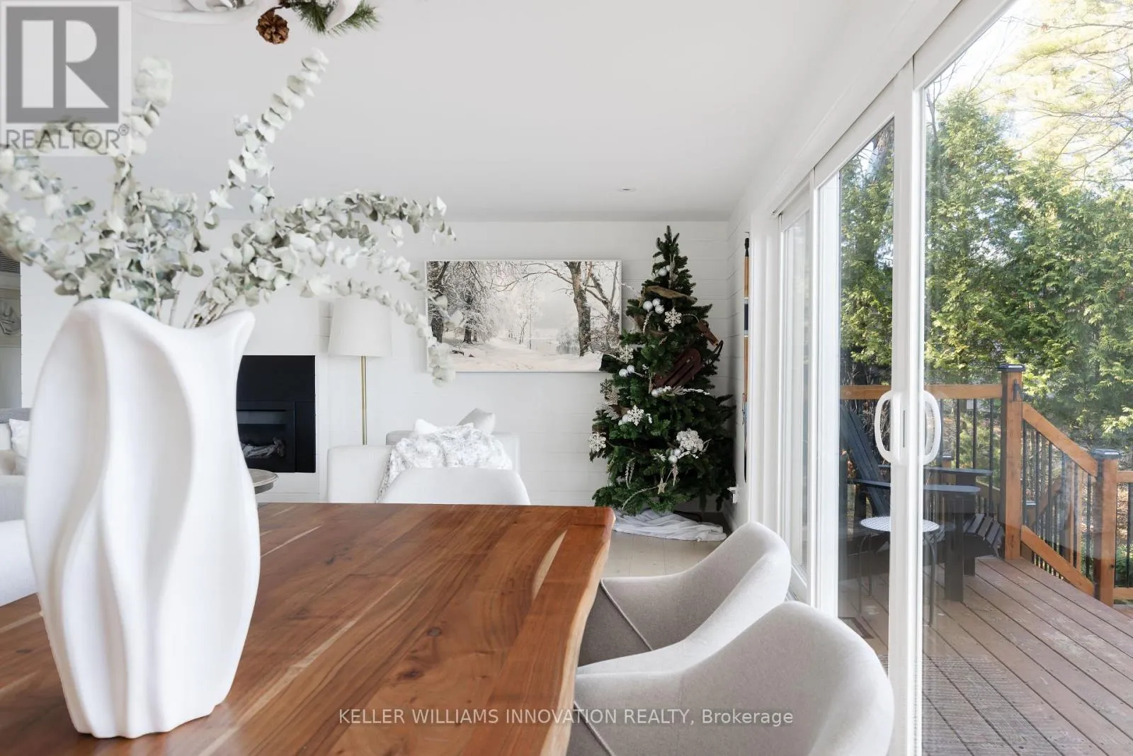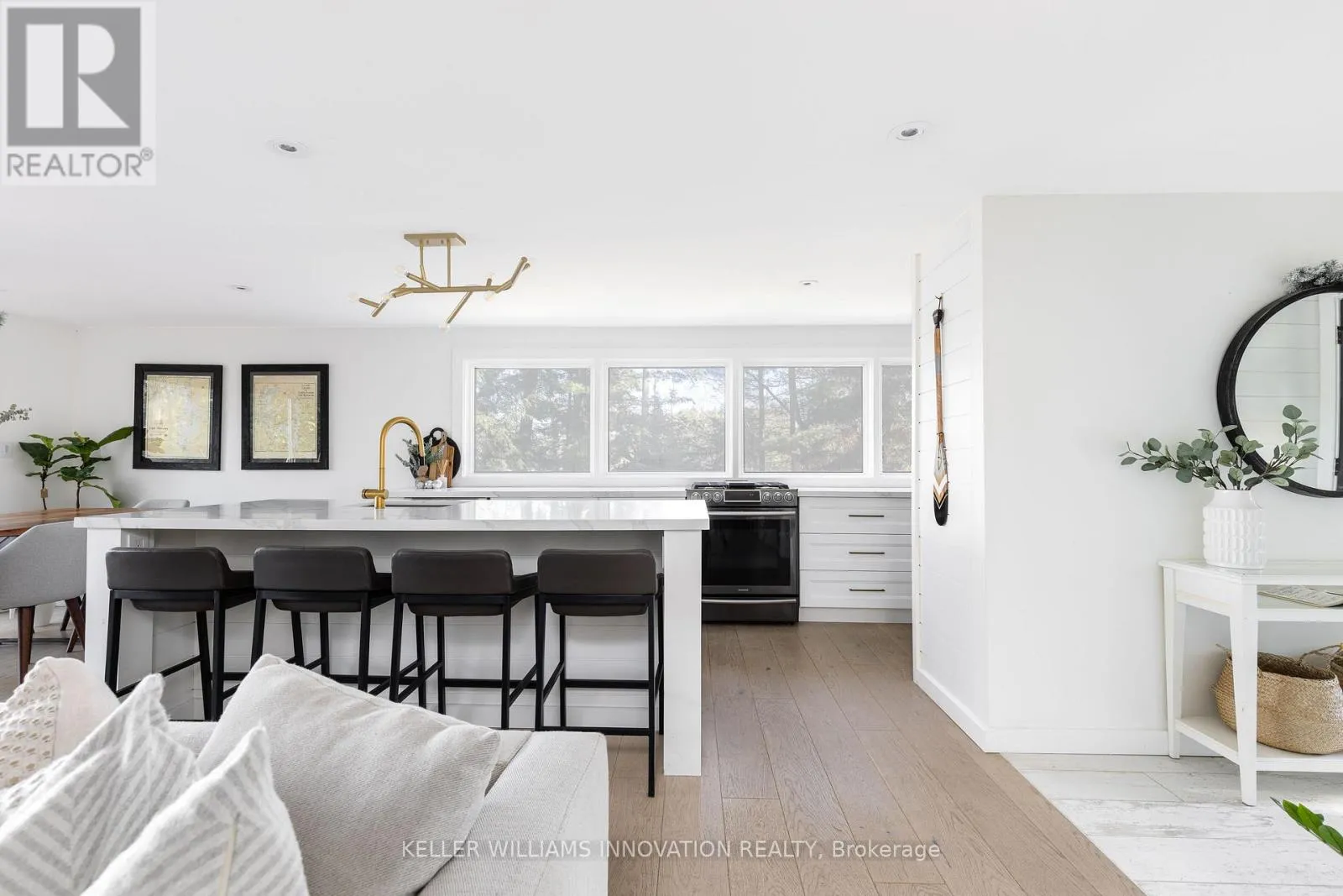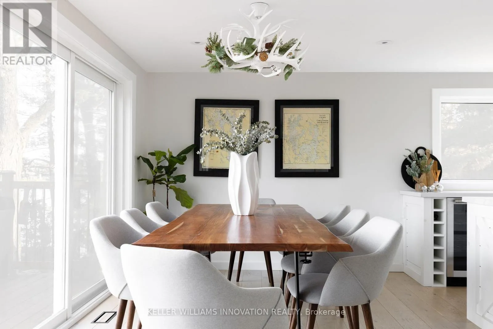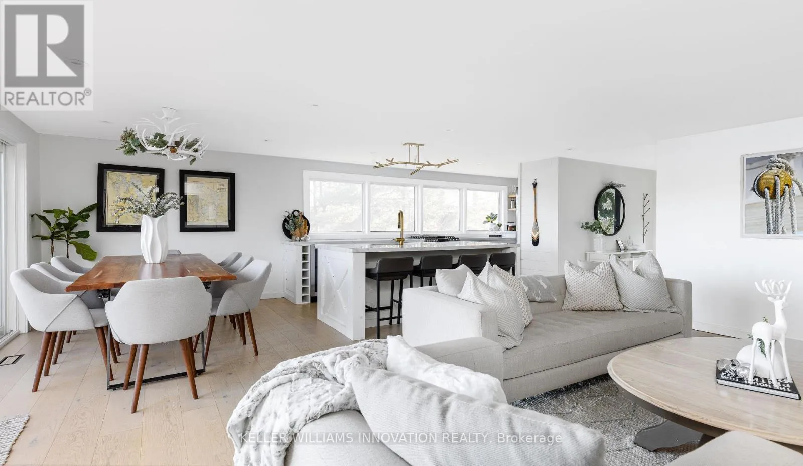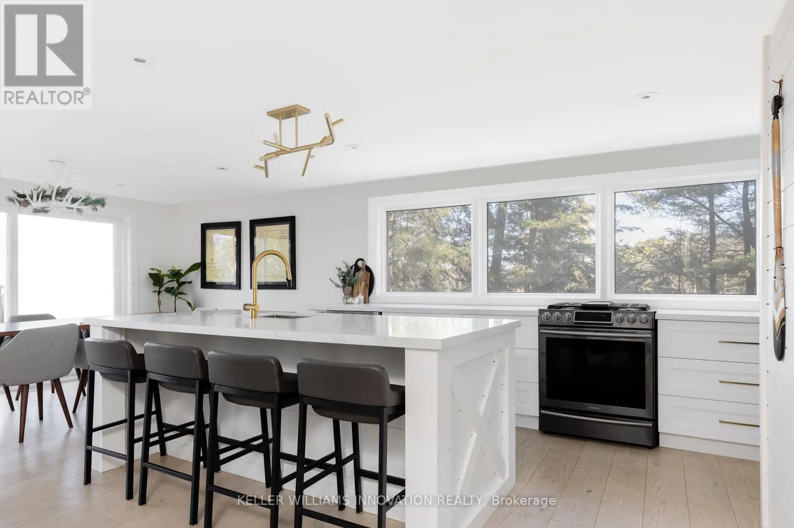 Cross Streets: Oakridge Road. ** Directions: From Bracebridge to Port Carling - HWY 118 West #2872. A long-standing, high-performing luxury investment, this Brandy Lake retreat has delivered over $160,000 in rental income in the most recent Airbnb season, with many prime weeks still open for booking. Welcome to Luxury on Brandy Lake, a refined four-season escape where contemporary design meets the quiet magic of Muskoka. Just five minutes from Port Carling, the property feels intentionally tucked away, surrounded by mature white pines with the lake stretching out in front of you like a private canvas.Inside, lakeside patio doors span the main living space, opening the home to natural light and uninterrupted water views. The interior is sophisticated and understated: a linear propane fireplace, Lutron lighting, Art TVs, and a seamless Sonos system throughout. The kitchen anchors the space with a quartz waterfall island and premium appliances, creating an effortless backdrop for hosting and everyday year-round living. Three serene bedrooms sit on the main level, along with a flexible games room that transitions easily into a fourth bedroom. A spa-inspired bathroom features heated floors and a sculptural stone-wood vanity. Connected by a breezeway, the private guest suite doubles as a theatre room with a projector, queen bed, pullout couch, and direct access to the hot tub.Upstairs, a secluded bedroom offers a panoramic lake view, a full bathroom, and a quiet nook perfect for mornings with a book.The property is designed for relaxed lakeside living, morning coffee at the shoreline, long afternoons on the dock, and evenings set against soft reflection on the water. Just up the road, you'll find convenient boat launches for Brandy Lake and iconic Lake Muskoka, giving you access to miles of open water and endless day trips. With ample parking, year-round municipal access, this is a rare blend of luxury, practicality, and proven investment strength. Offered fully furnished and turn-key, it's a Muskoka opportunity that stands in a category of its own. (id:27476)