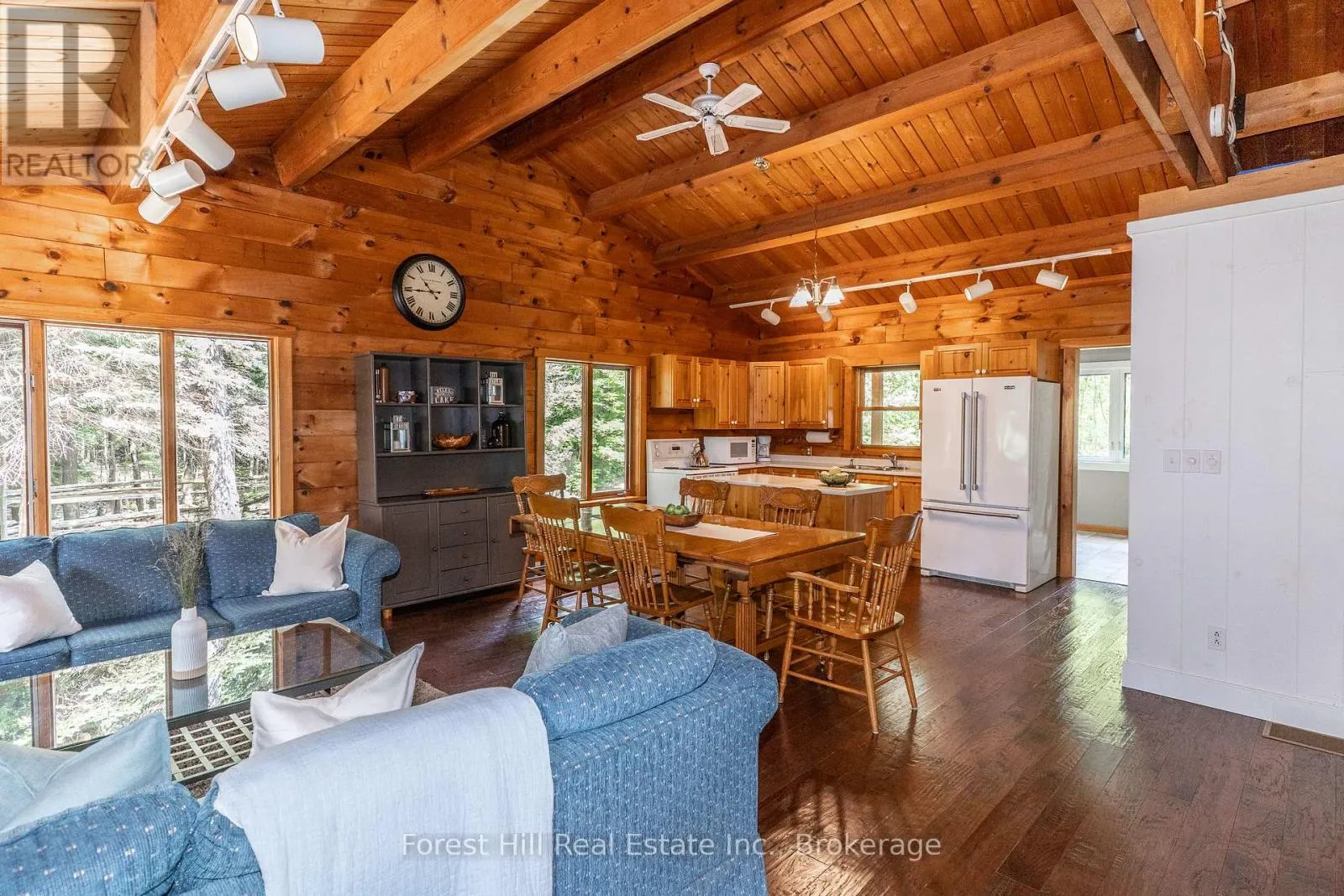 Cross Streets: hwy 141. ** Directions: Highway 141 to Beaumont Bay Road. Super sharp, unique, immaculately maintained Nova Scotia pine scribe three bed log cottage or home. Century pines, western sunsets and breezes grace this relaxing peaceful private locale, majestically perched above fabulous crystal clear Skeleton Lake. The true essence of cottaging abounds, warm cozy character filled exposed post and beam interior with engineered hardwood floors. Lovely master suite with lake views and private deck. Great entertaining with the open concept kitchen, dining and living room space. There are two wonderful covered porches to escape the sun or take in a summer rain storm. A large newer lounge deck to marvel at the star filled dark sky night that Skeleton Lake is known for. Enjoy great deep water swimming and fishing from the fixed and floating docks at the shore, plus a dry boathouse/storage building for all the toys. There is a fun outdoor shower plus an additional storage building, comes furnished. Enjoy all four seasons at beautiful Skeleton Lake! (id:27476)