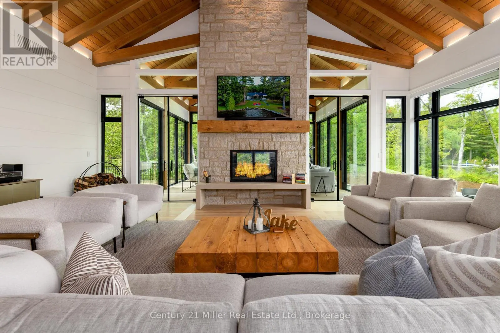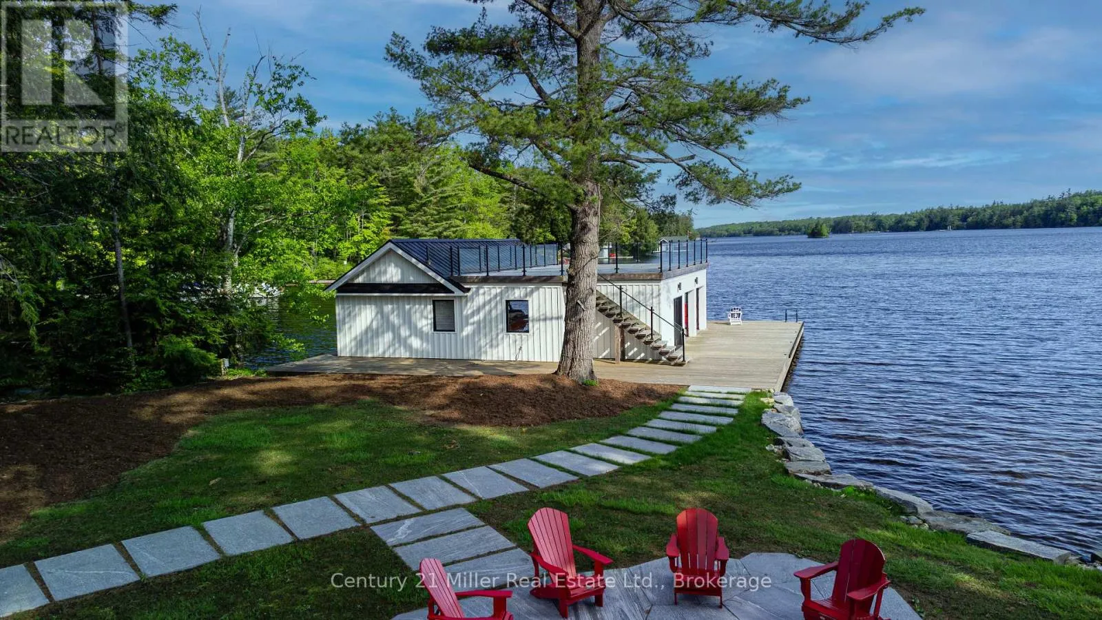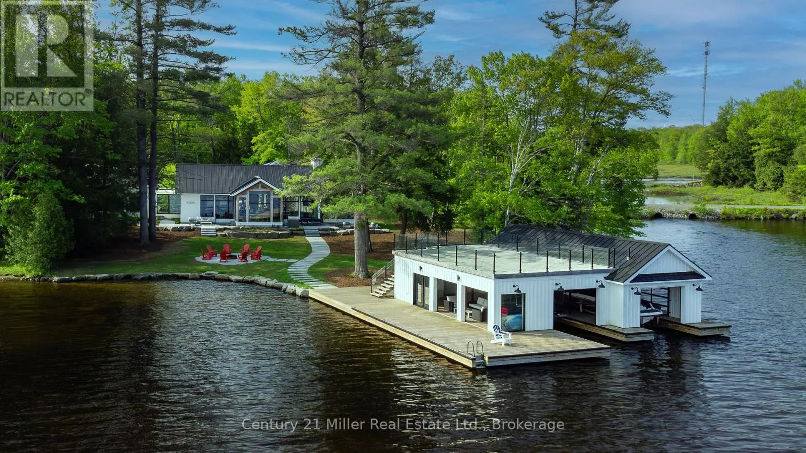 Cross Streets: Hwy 169 / Torrance Road. ** Directions: Hwy 169 to Torrance to Queens Walk to Keeler. This luxuriously appointed custom-built retreat sits on a spectacular level lot with 500+ feet of pristine shoreline, offering exceptional privacy, breathtaking sunset views, and the quintessential Muskoka lifestyle. Built by the renowned Cobalt Custom Homes, the property showcases outstanding craftsmanship and thoughtful design. The main cottage is a masterclass in refined lakeside living, highlighted by soaring vaulted open-beam ceilings, a striking double-sided limestone fireplace, and dramatic floor-to-ceiling windows that fill the interior with natural light while framing panoramic lake views. The gourmet kitchen is a chef's dream, fully equipped with Wolf and Sub-Zero appliances, butler pantry, and flows seamlessly into an expansive dining space anchored by an impressive harvest table-an ideal setting for gathering family and friends and truly the heart of cottage living. The cottage features six spacious bedrooms accommodating 20+ guests, including a private primary wing with a luxurious ensuite, oversized walk-in closet, and sliding doors leading to a tranquil patio. An inviting all-season Muskoka room allows you to enjoy the surrounding landscape comfortably all year. Additional guest accommodations include a two-bedroom bunkie, offering visitors their own relaxing retreat. The three-car garage is topped by a beautifully finished loft complete with a gym and extra sleeping quarters-perfect for overflow guests or a quiet escape after a day on the water. A two-slip boathouse with glass roll-up doors opens onto a generous dock ideal for swimming, sunbathing, and launching lake adventures. The elevated sundeck with glass railings provides sweeping views across the bay, an exceptional place to enjoy Muskoka's famous sunsets with a beverage. A short boat ride to Bala for shopping and dining-or a summer evening at The Kee. A year-round municipal road access, a drilled well, and a sandy lake bottom perfect for kids, creating a truly turn-key four-season sanctuary. (id:27476)