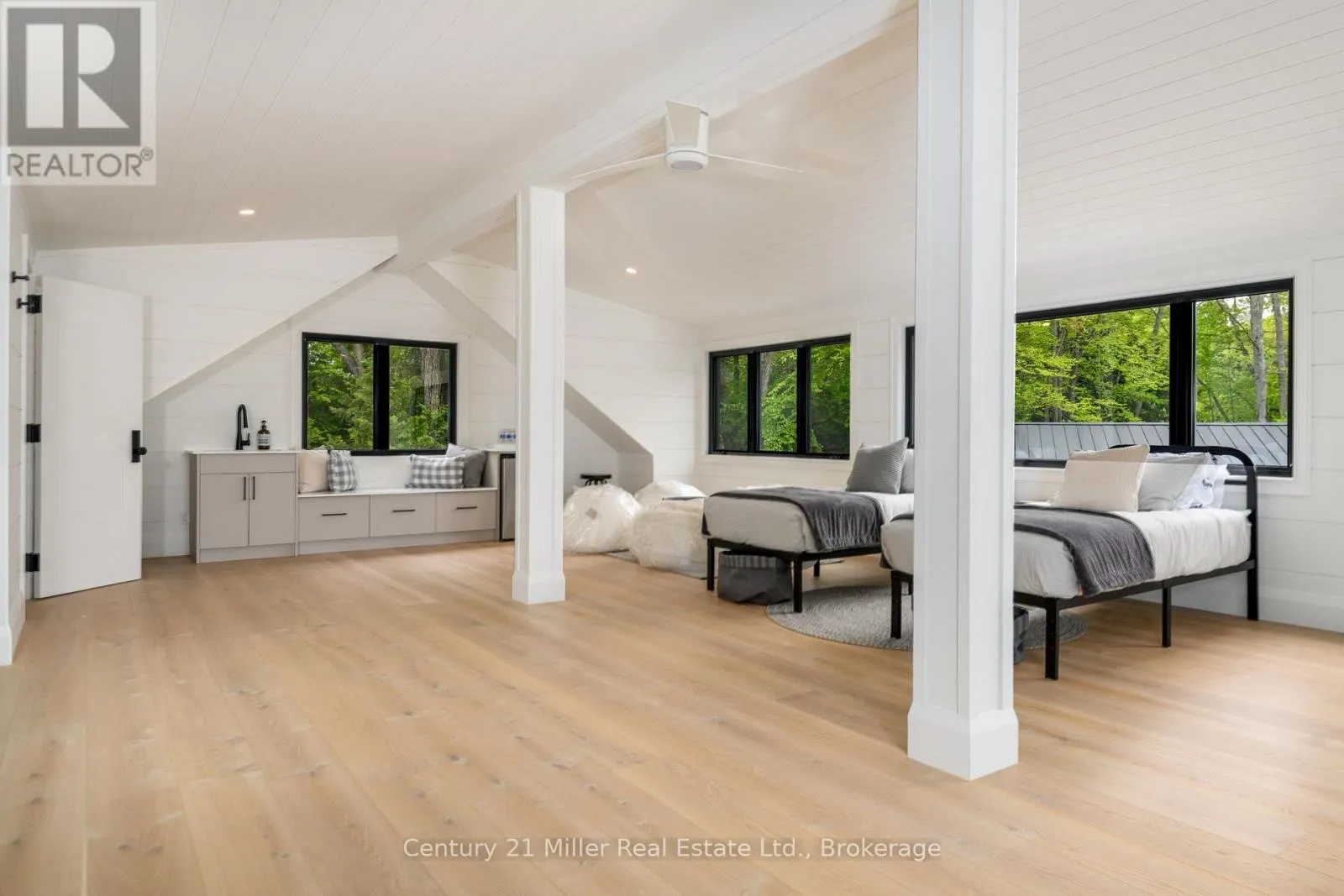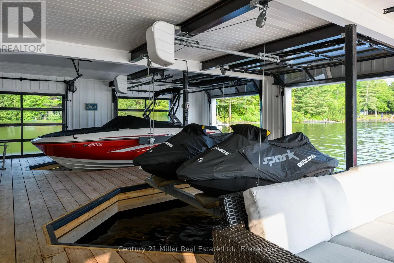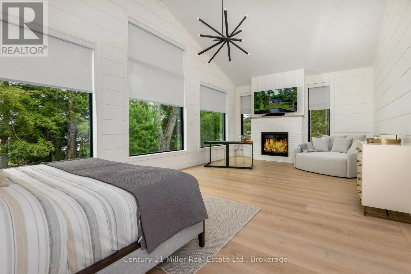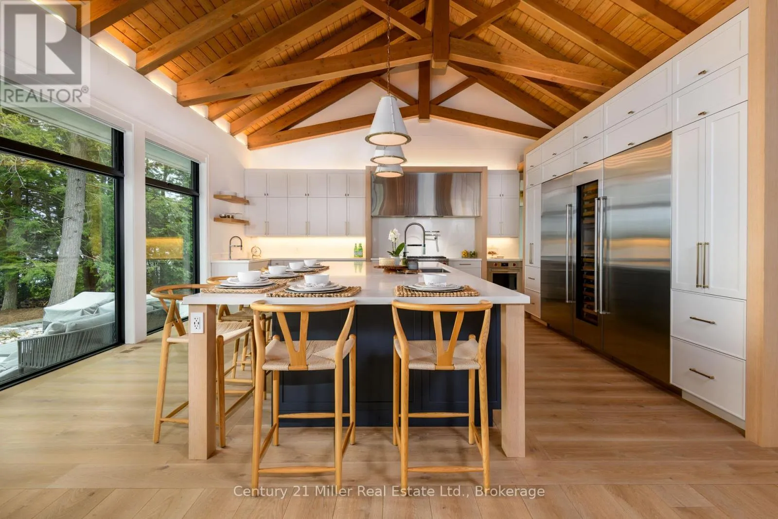 Cross Streets: Hwy 169 / Torrance Road. ** Directions: Hwy 169 to Torrance to Queens Walk to Keeler. This luxuriously appointed custom-built retreat sits on a spectacular level lot with 500+ feet of pristine shoreline, offering exceptional privacy, breathtaking sunset views, and the quintessential Muskoka lifestyle. Built by the renowned Cobalt Custom Homes, the property showcases outstanding craftsmanship and thoughtful design. The main cottage is a masterclass in refined lakeside living, highlighted by soaring vaulted open-beam ceilings, a striking double-sided limestone fireplace, and dramatic floor-to-ceiling windows that fill the interior with natural light while framing panoramic lake views. The gourmet kitchen is a chef's dream, fully equipped with Wolf and Sub-Zero appliances, butler pantry, and flows seamlessly into an expansive dining space anchored by an impressive harvest table-an ideal setting for gathering family and friends and truly the heart of cottage living. The cottage features six spacious bedrooms accommodating 20+ guests, including a private primary wing with a luxurious ensuite, oversized walk-in closet, and sliding doors leading to a tranquil patio. An inviting all-season Muskoka room allows you to enjoy the surrounding landscape comfortably all year. Additional guest accommodations include a two-bedroom bunkie, offering visitors their own relaxing retreat. The three-car garage is topped by a beautifully finished loft complete with a gym and extra sleeping quarters-perfect for overflow guests or a quiet escape after a day on the water. A two-slip boathouse with glass roll-up doors opens onto a generous dock ideal for swimming, sunbathing, and launching lake adventures. The elevated sundeck with glass railings provides sweeping views across the bay, an exceptional place to enjoy Muskoka's famous sunsets with a beverage. A short boat ride to Bala for shopping and dining-or a summer evening at The Kee. A year-round municipal road access, a drilled well, and a sandy lake bottom perfect for kids, creating a truly turn-key four-season sanctuary. (id:27476)