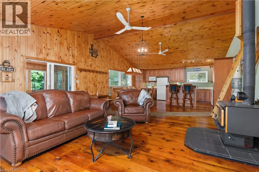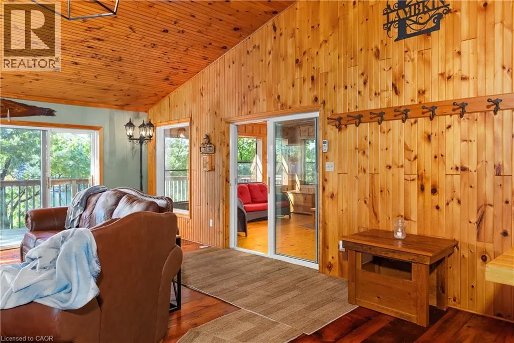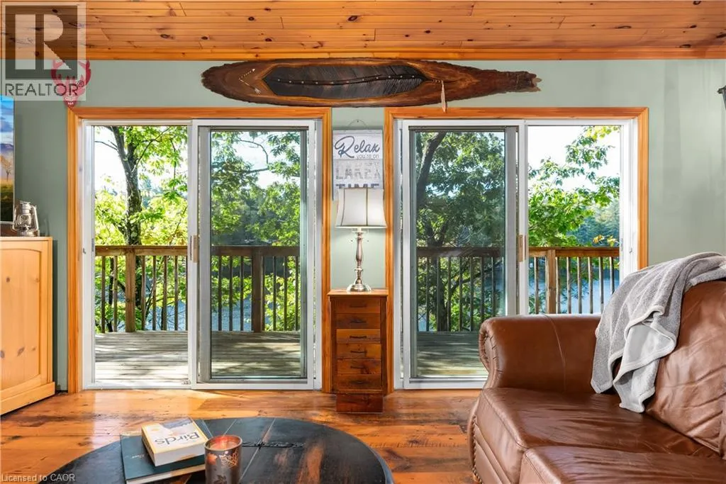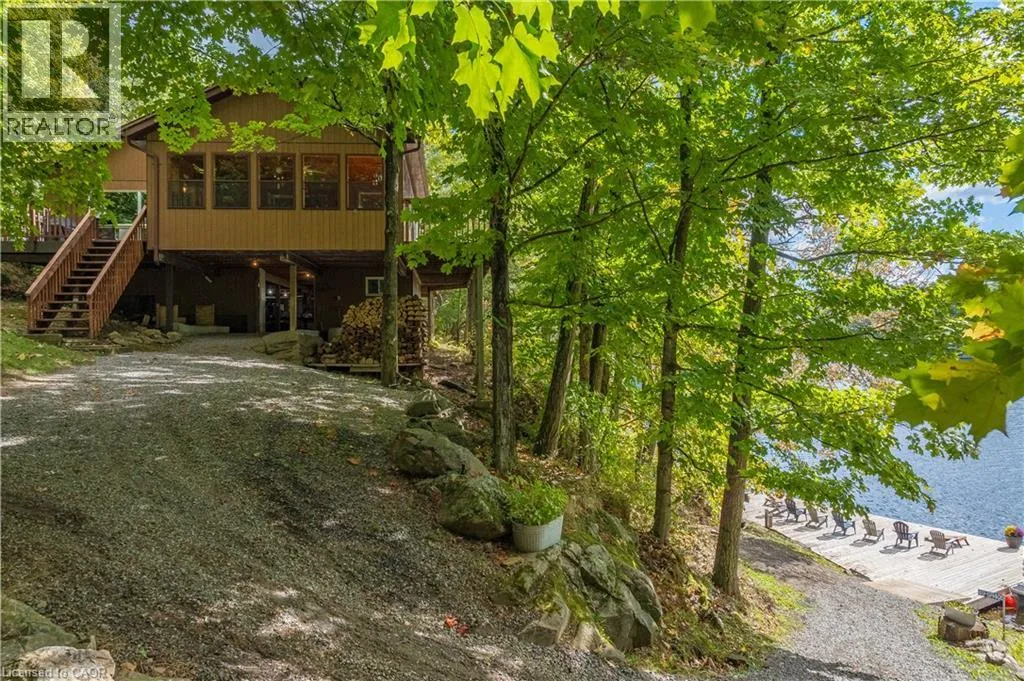 Boat Access - 5 minute boat ride from Severn Falls - going towards Big Chute - on east side of the Severn River Boat Access - Nestled along the Severn River sits this stunning 1,712 sq ft of above grade finished area, 3-bedroom + loft, 2-bathroom all season cottage. Just minutes by boat from Severn Falls, with a modern septic system, year round electricity and water supply. The property features 220ft of waterfront including a large dock with deep-water swimming, and a sandy beach area ideal for those warm summer days. Enjoy the attached raised deck or 3 season room, where you can relax and take in elevated panoramic views of the river or watch the sunset over the water. The generous lot, spanning over an acre with Crown Land beyond, offers plenty of space for hiking, gardening, and outdoor activities with snowmobile trails for winter access. Inside, the cottage features an open-concept design with cathedral ceilings, stunning hardwood floors, natural wood finishes, stone countertops, expansive windows and wall-to-wall sliding glass doors. The primary bedroom features a convenient ensuite, and a walkout to the raised deck with stunning river views. The expansive bonus loft offers additional space for a fourth bedroom, hobby room, or creative escape. The 1,400 sq ft, lower level serves as a workshop, storage area, and garage for your ATVs and tools, providing all the space you need for your outdoor pursuits. This is a large cottage with a fit and finish that you can be proud to entertain your family and friends in. Whether youâre enjoying the riverfront or unwinding indoors, this cottage is the perfect place to create lasting memories. (id:27476)