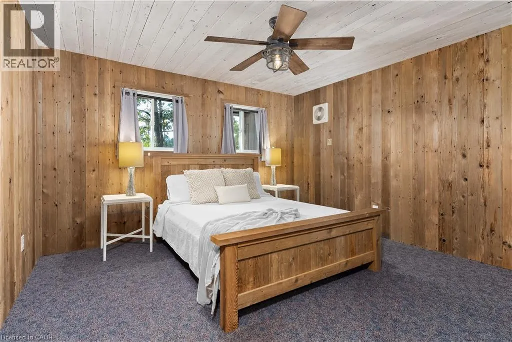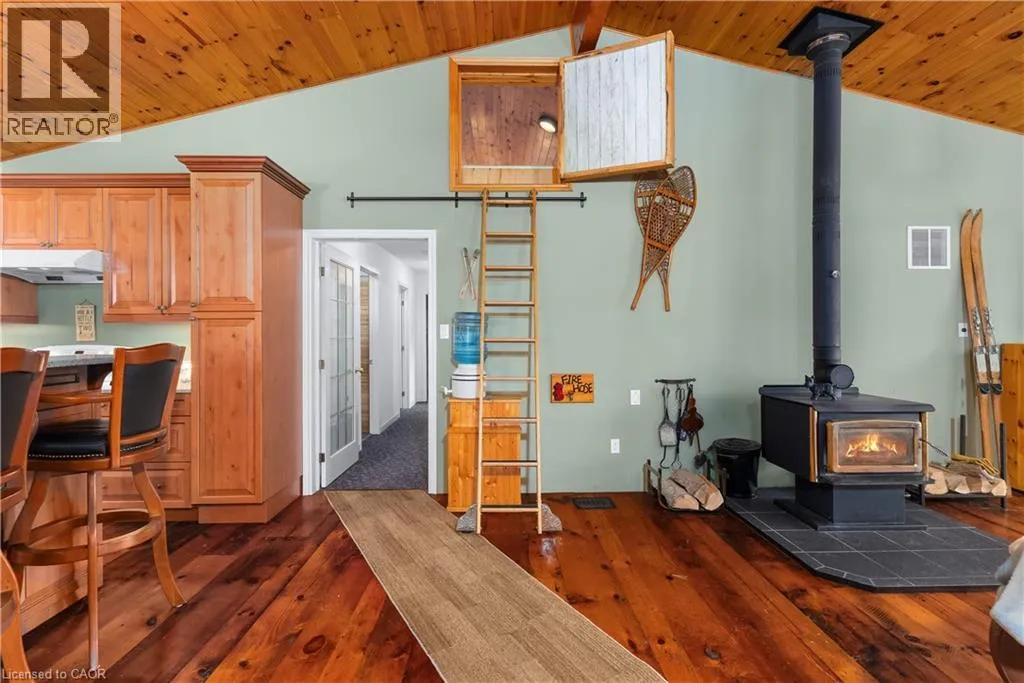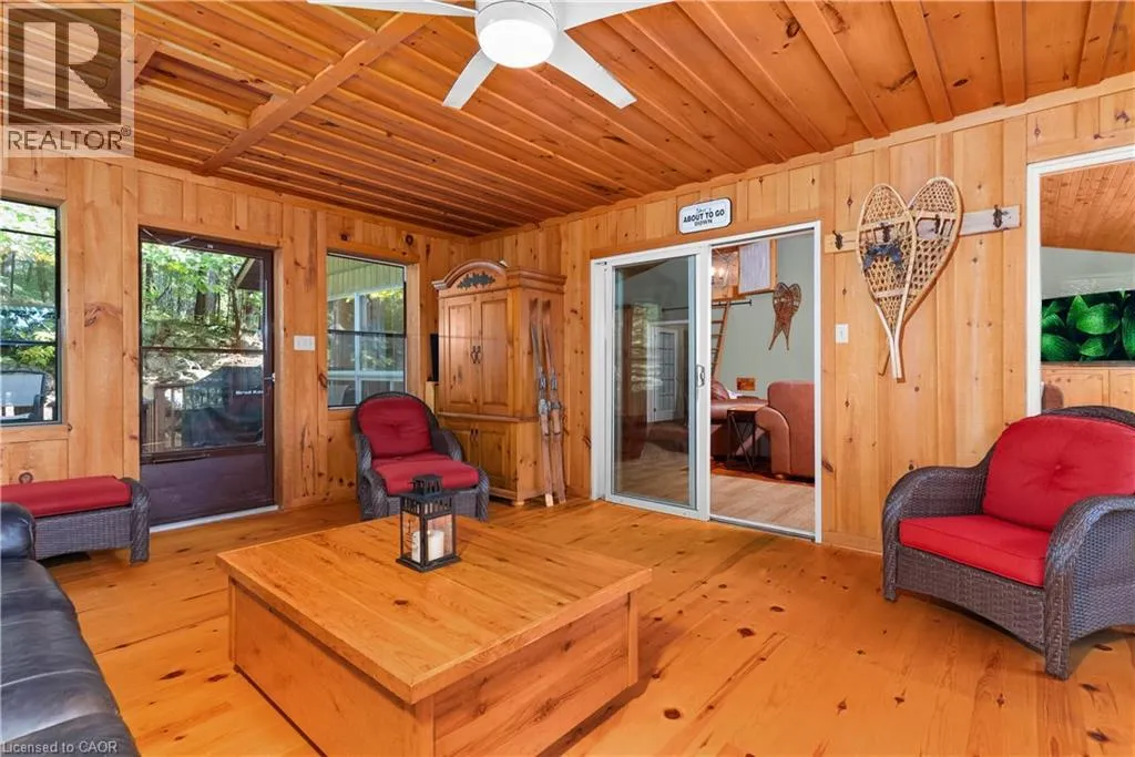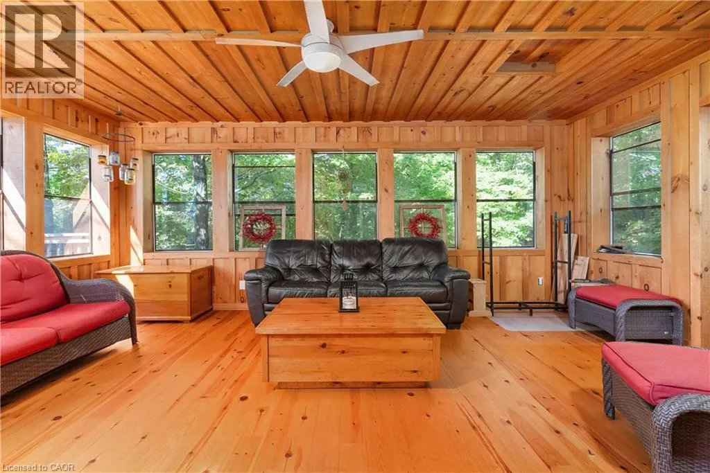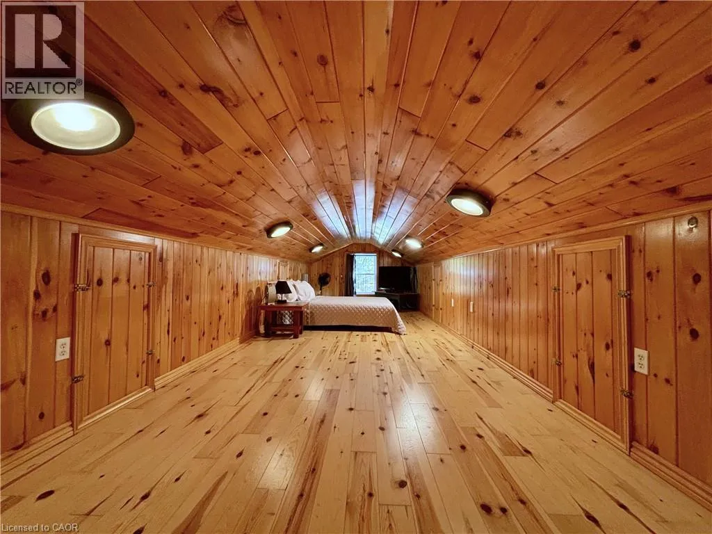 Boat Access - 5 minute boat ride from Severn Falls - going towards Big Chute - on east side of the Severn River Boat Access - Nestled along the Severn River sits this stunning 1,712 sq ft of above grade finished area, 3-bedroom + loft, 2-bathroom all season cottage. Just minutes by boat from Severn Falls, with a modern septic system, year round electricity and water supply. The property features 220ft of waterfront including a large dock with deep-water swimming, and a sandy beach area ideal for those warm summer days. Enjoy the attached raised deck or 3 season room, where you can relax and take in elevated panoramic views of the river or watch the sunset over the water. The generous lot, spanning over an acre with Crown Land beyond, offers plenty of space for hiking, gardening, and outdoor activities with snowmobile trails for winter access. Inside, the cottage features an open-concept design with cathedral ceilings, stunning hardwood floors, natural wood finishes, stone countertops, expansive windows and wall-to-wall sliding glass doors. The primary bedroom features a convenient ensuite, and a walkout to the raised deck with stunning river views. The expansive bonus loft offers additional space for a fourth bedroom, hobby room, or creative escape. The 1,400 sq ft, lower level serves as a workshop, storage area, and garage for your ATVs and tools, providing all the space you need for your outdoor pursuits. This is a large cottage with a fit and finish that you can be proud to entertain your family and friends in. Whether youâre enjoying the riverfront or unwinding indoors, this cottage is the perfect place to create lasting memories. (id:27476)