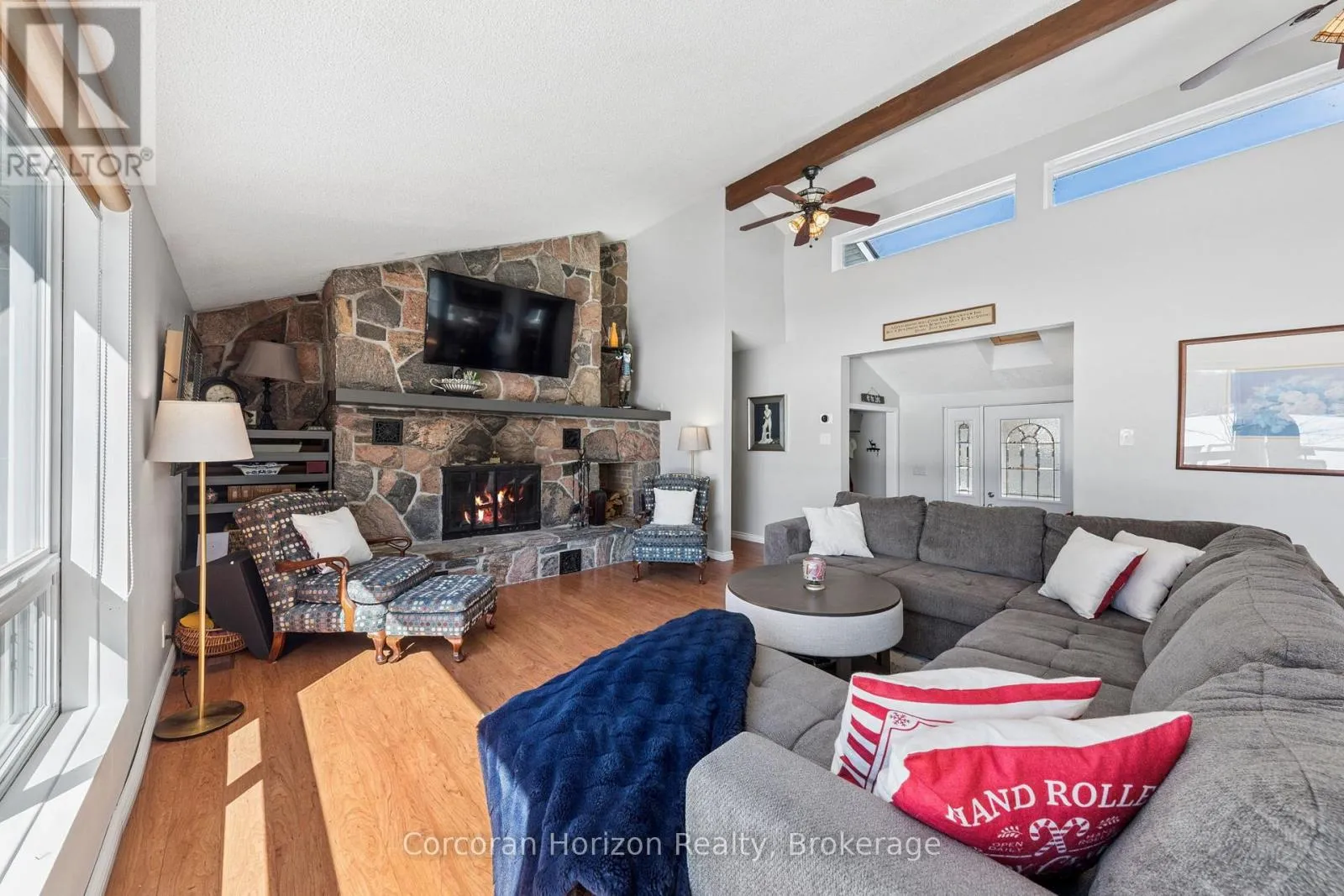 Cross Streets: Muskoka Road 38 & Hesners Lake Rd. ** Directions: HWY 400 N to Muskoka Road 38 to Hesners Lake Rd left at T intersection and property will be on your right. Welcome to your own slice of Muskoka! This 10.59-acre wooded property featuring 190 feet of shoreline on Hesners Lake is only 5 minutes away from downtown Bala. The four-season bungalow cottage offers a 4 bedroom, 3 bathroom main residence, including a connected 1-bedroom guest suite, providing a practical layout for extended family or guests. The lot is level & features a sandy beach with a shallow entry, along with an L-shaped dock, ideal for all ages. Enjoy all-day sun and sunset views provided by the southwest exposure. The interior includes a large open kitchen equipped with a wine fridge, dishwasher, and breakfast nook. The living area is anchored by a granite wood-burning fireplace, and a dedicated laundry room is located conveniently off the kitchen. Outside, an expansive two-tiered deck that wraps around one side provides ample space for outside dining, entertaining, and a perfect viewpoint to watch everyone enjoy the waterfront. The 8-person hot tub is ideal for starry nights and or for overlooking the lake. You can have the best of both worlds with this private wooded cottage, only being 4 minutes from the famous concert venue The KEE to Bala and the shores of Lake Muskoka. (id:27476)