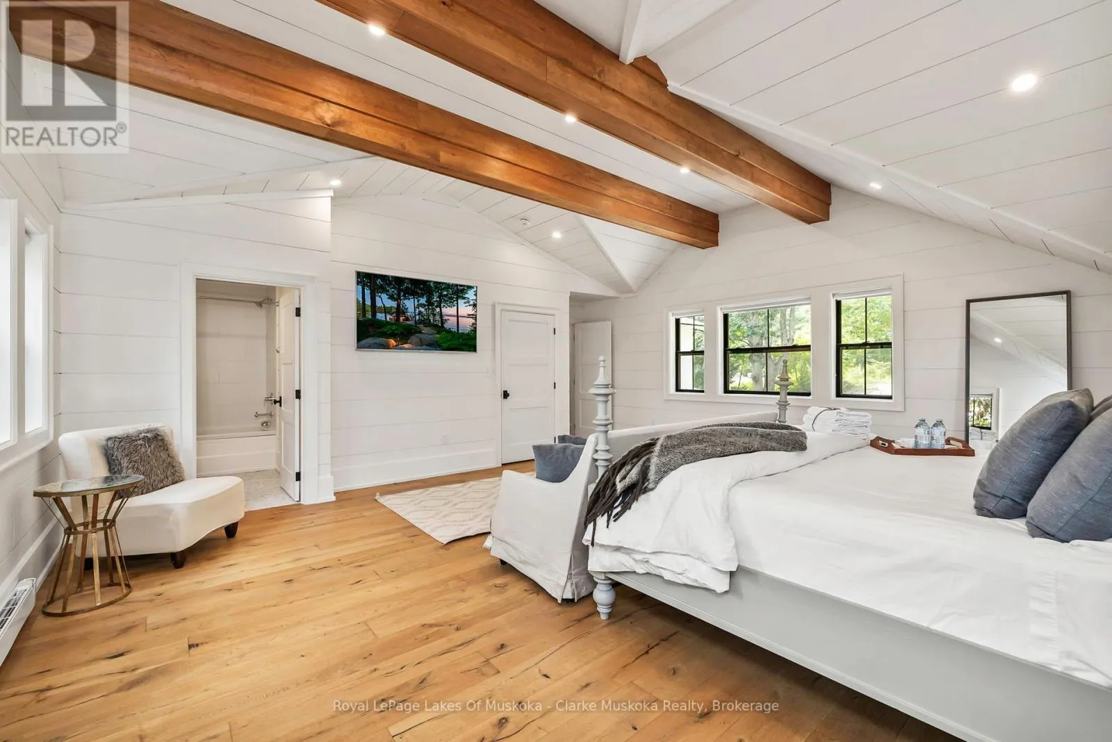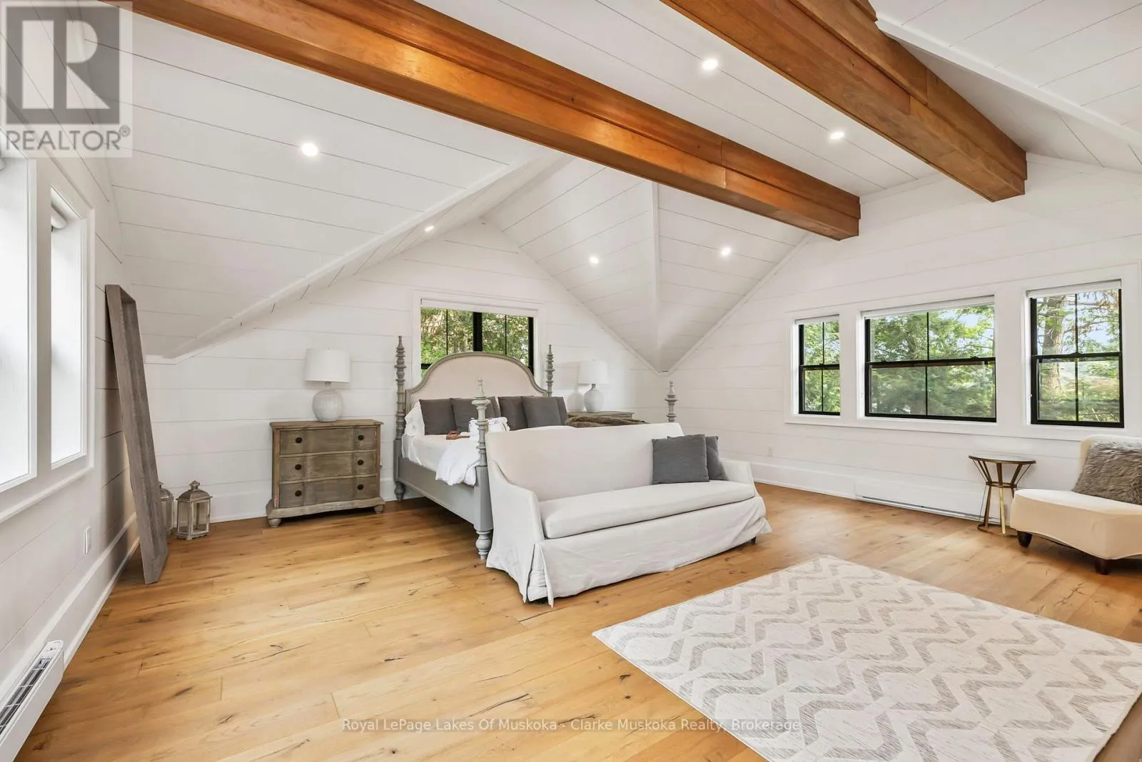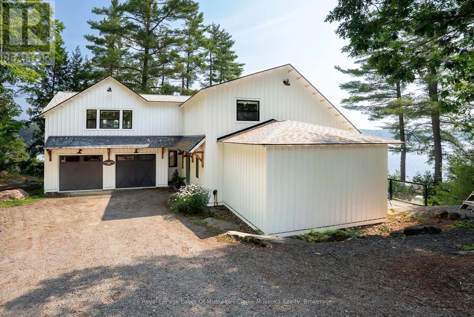 Cross Streets: Take Hwy 169 to Mortimer's Point Rd, follow to 1184 \"Clarkson Lane\", follow #s to #9. ** Directions: Take Hwy 169 to Mortimer's Pt Rd, follow to 1184, follow to unit #9. This 3800+ sq ft, 1.5 storey Modern Farmhouse features 4 + 1 Bedrooms, a den, 6 baths, 3 separate living areas, a main floor master with walkout to a private deck, attached 2-car garage, and a large sunroom off the main floor living room. Enjoy both wood-burning and gas fireplaces, as well as a single-storey, two-slip boathouse with glass garage doors opening to a covered entertainment area. This successful rental property boasts spectacular attention to detail throughout, including custom millwork, a gorgeous kitchen featuring oak detailing, MDF shiplap walls, and a beautiful mix of oak hardwood and tile. Fully landscaped with various outdoor seating areas to take in long views down Lake Muskoka, the east-facing shoreline offers deep water off the dock perfect for swimming and boating. (id:27476)