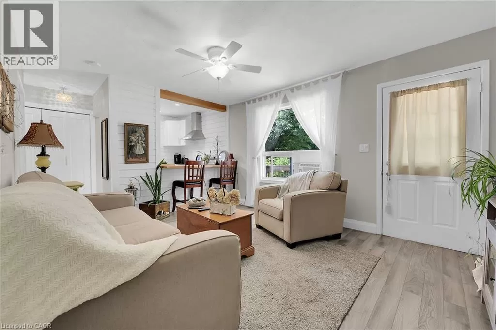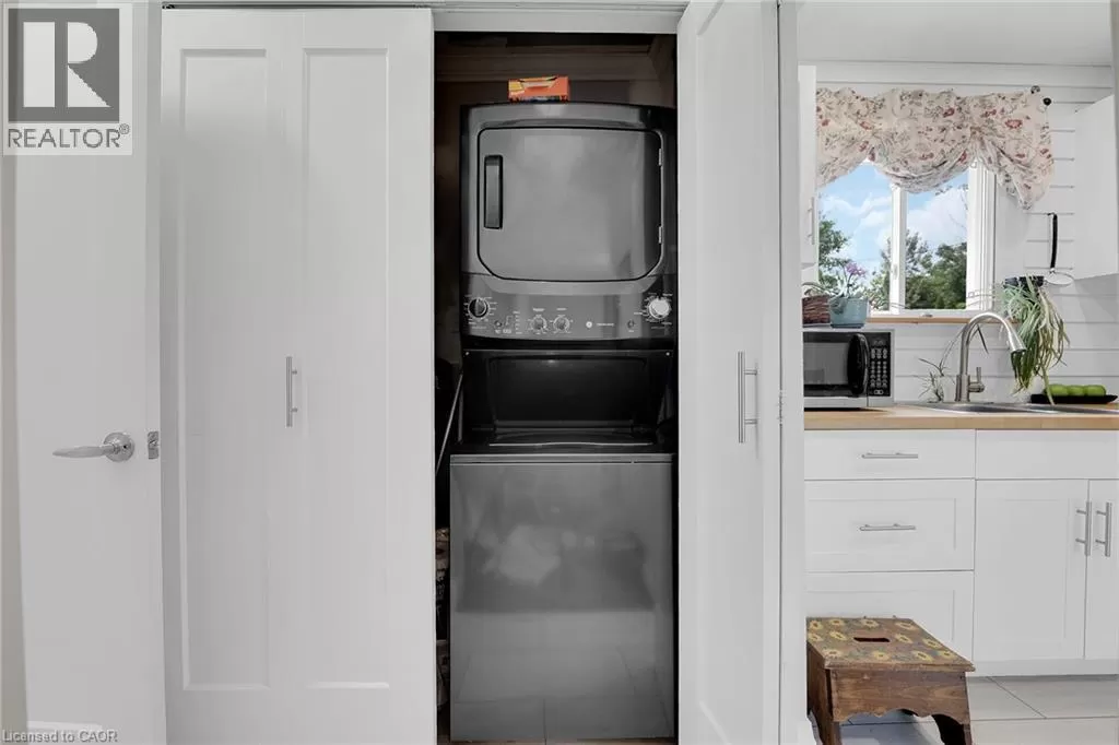 Rainham Road west through Nanticoke to Left on Nanticoke Valley Road - almost to the end An original tiny home!! Well maintained, super clean one storey, 2 bedroom home with updated kitchen and bathroom located on park like 62x152ft lot with fenced yard and mature trees. Way down a private road, bordered by beautiful foliage and Nanticoke Valley creek - this home provides peace and privacy from the chaos of the world! Recently renovated kitchen features a butcher block countertop, stainless steel appliances, ship lap backsplash, white cabinetry and unique half wall look through to the living room. Laundry closet tucked away in tiny home style. Lots of bright windows. Patio door walk out to rear entertainment area shaded by mature trees. Lots of parking, metal roof, a 2000 gallon cistern and 2000 gallon holding tank - nothing to do here but breathe! Minutes to Hoovers marina - popular place to dine and enjoy, about 10-15 minutes to Port Dover. Make this great little place your new zone! (id:27476)