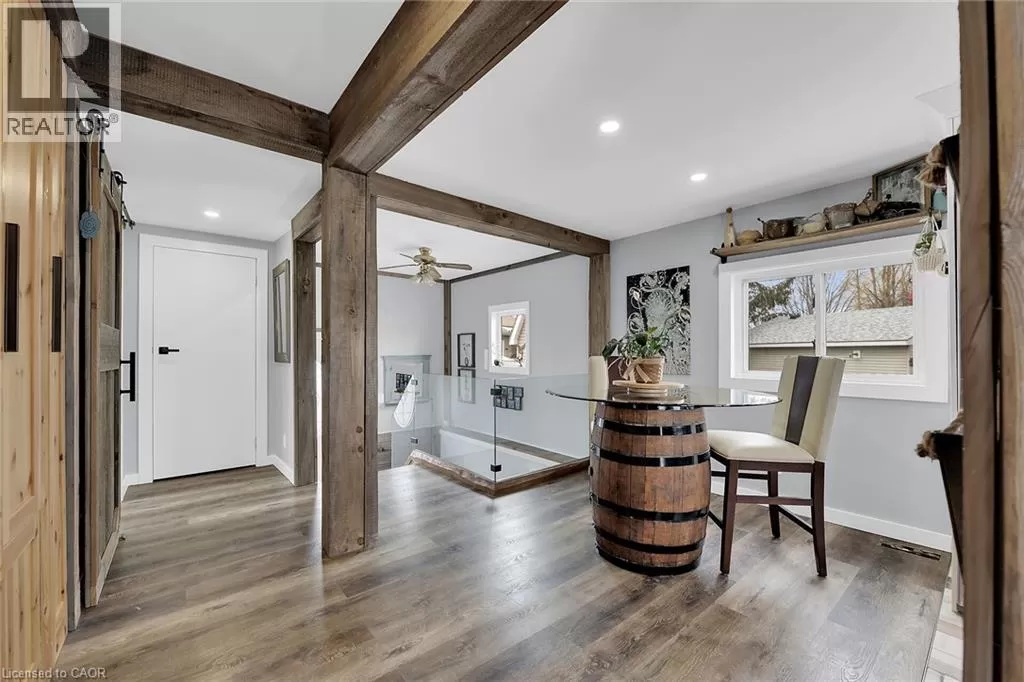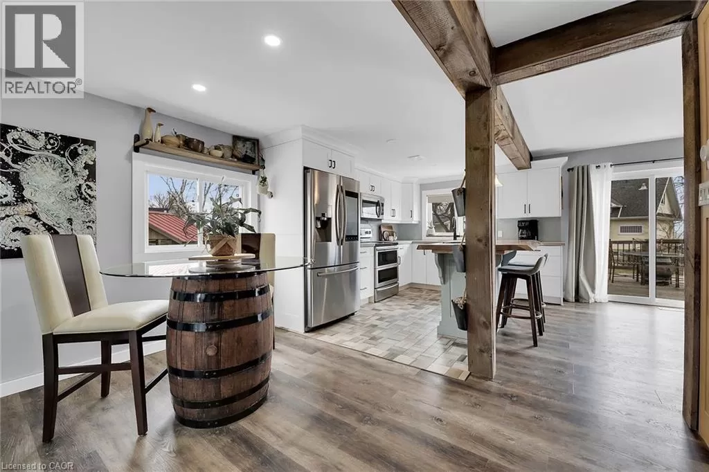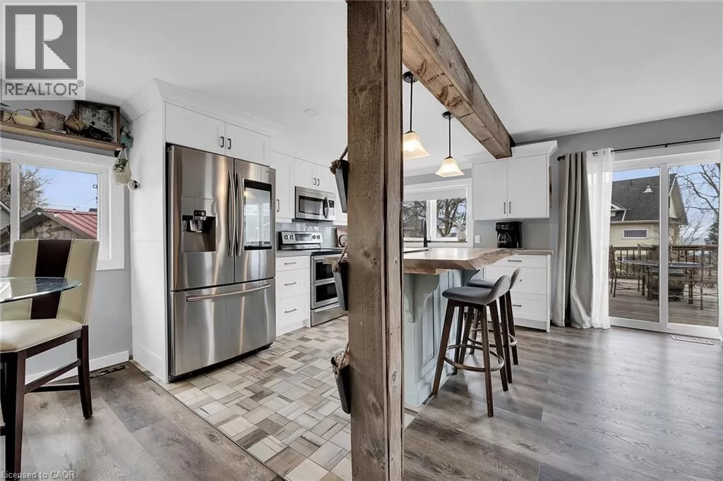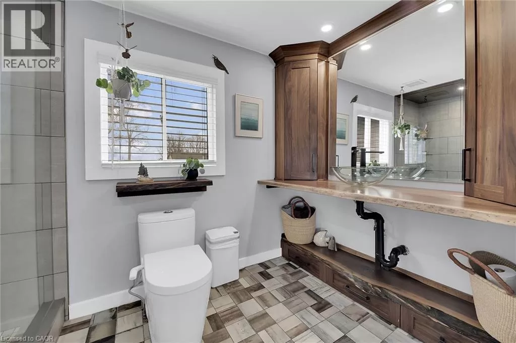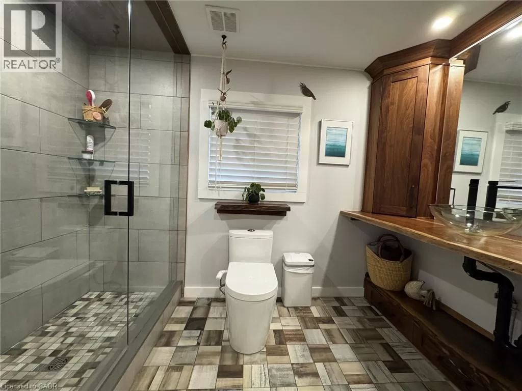 SouthCoast Drive to Wilcox Drive. South on Wilcox Drive, property is on the right COME HOME TO THE LAKE! 3 Wilcox is a nicely appointed corner lot in Peacock Point with Lake Erie views from all sides of the oversized patio. Parking for four, hot tub, firepit, 12X12 workshop and quaint rustic cedar storage shed complement the very well positioned lot. Indoors has been masterfully updated including a kitchen with high end appliances and quartz counters, bathroom with walk in glass shower, custom live edge woodwork and heated floor, family room with professionally installed in-ceiling Dolby Atmos 7 speaker system and accent wall, modern glass railings and door, custom shelving and so much more. The full basement offers two more bedrooms and a family room awaiting your creativity. Year round living, a vacation home, or investment, this home has many possibilities. (id:27476)