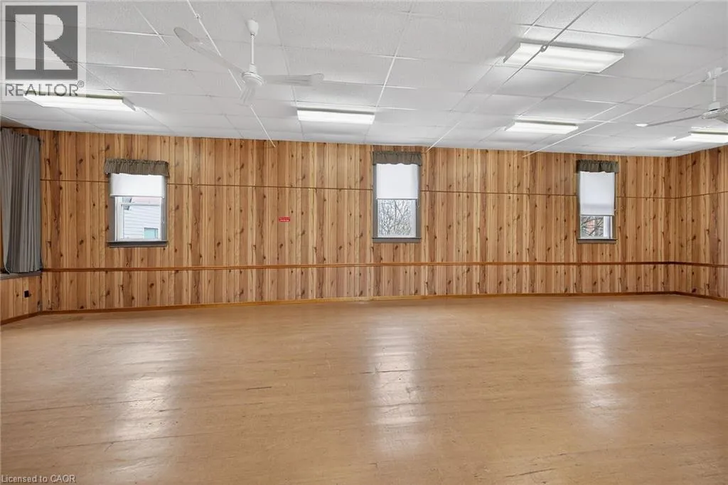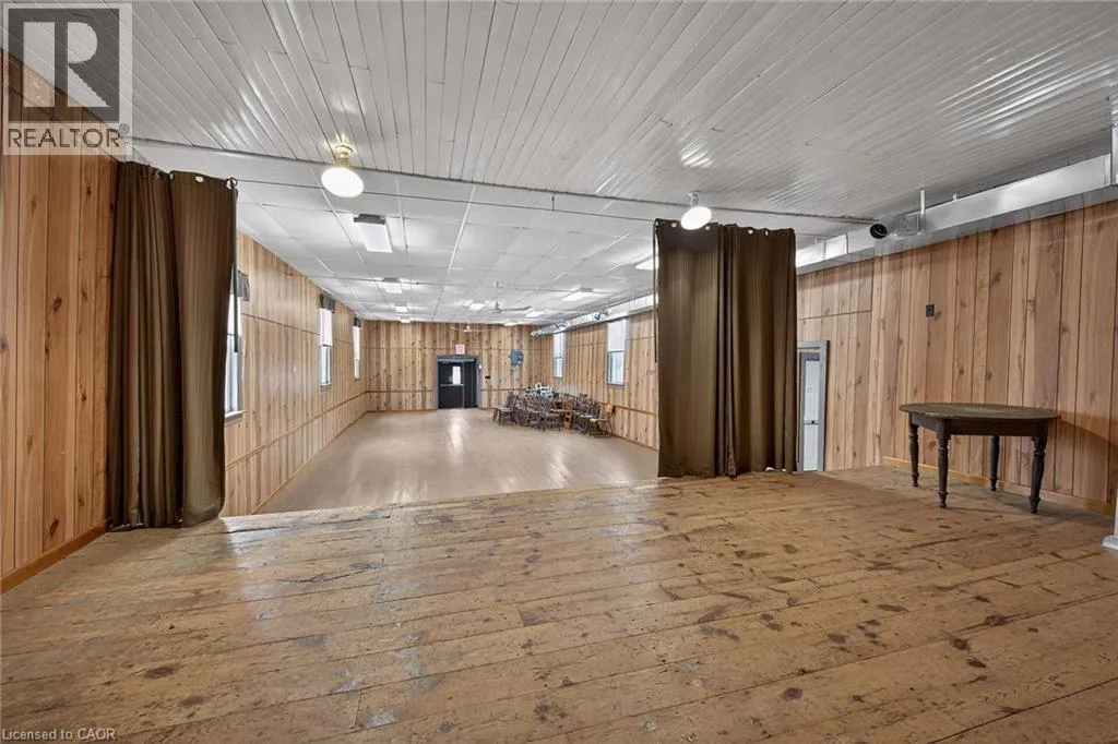From Highway 3, turn south on Cheapside Road to the hamlet - turn right on Concession 2 Versatile commercial building in the quaint hamlet of Cheapside, previously known as The Cheapside Community Hall - offers 2363 sq ft with a welcoming foyer, large hall with high ceilings and hardwood floors, newer vinyl windows plus stage area and backstage area. Large commercial sized kitchen with older cabinetry and access to two public washrooms. Clad in vinyl siding with a metal roof, and includes a natural gas furnace. Water provided by a cistern, and a holding tank for sanitation. Zoning is IR - Rural Instititional - which permits uses such as day care, place of entertainment, place of sports and recreation, private club, school, office, and more! Sitting on a 0.124 acre lot close to the hamlet - only a km or so from Lake Erie. Worth a look! (id:27476)