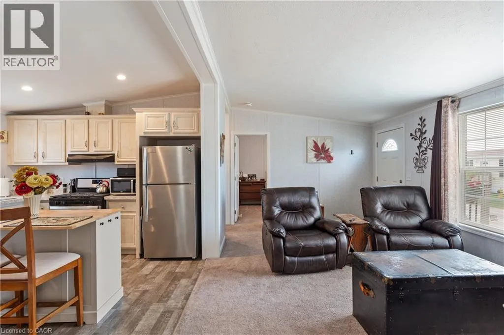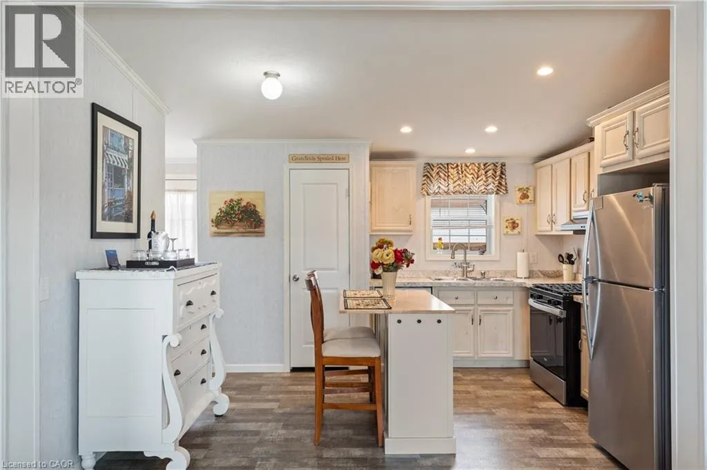 Cheapside Rd. - East on Murphys Ln, South on Cricklewood Cres., North on Copper Beech. Experience Lakeside Living in a quiet community known as Sandusk Creek. Located beside the serene waters of Lake Erie just a stone's throw away from the charming village of Selkirk, Ontario. Dive into modern comforts with this recently constructed, tailor-made prefabricated 934 square foot residence boasting three spacious bedrooms. The heart of the home lies a state of the art kitchen with modern appliances - a Bosch dishwasher and modern island that adds additional seating and storage. The kitchen leads onto a new, well designed 16'x20' private deck with pergola which expands the living space and offers the fresh air of the Lake. Just off the deck is a 7.5'x6' patio that is perfect to park a golf cart or place your barbecue. The home is tastefully decorated and offers two full bathrooms and a laundry room which includes appliances and a gas dryer, with an electrical outlet in place for conversion to an electric dryer. The home also offers a 10'x10' insulated shed that is wired for a workshop or use for all your storage needs. Also, as an added bonus the home is equipped with fibre optic and router included for seamless home office communication or steaming. The community has access to boat slips, an in ground pool, walking trails and a dog park. Sellers have included two kayaks so you can indulge yourself with the luxury and convenience of the Lake. Affordable Lakeside living at its best! Sadly, sellers have to say goodbye to their Lakeside home to move closer to family! (id:27476)