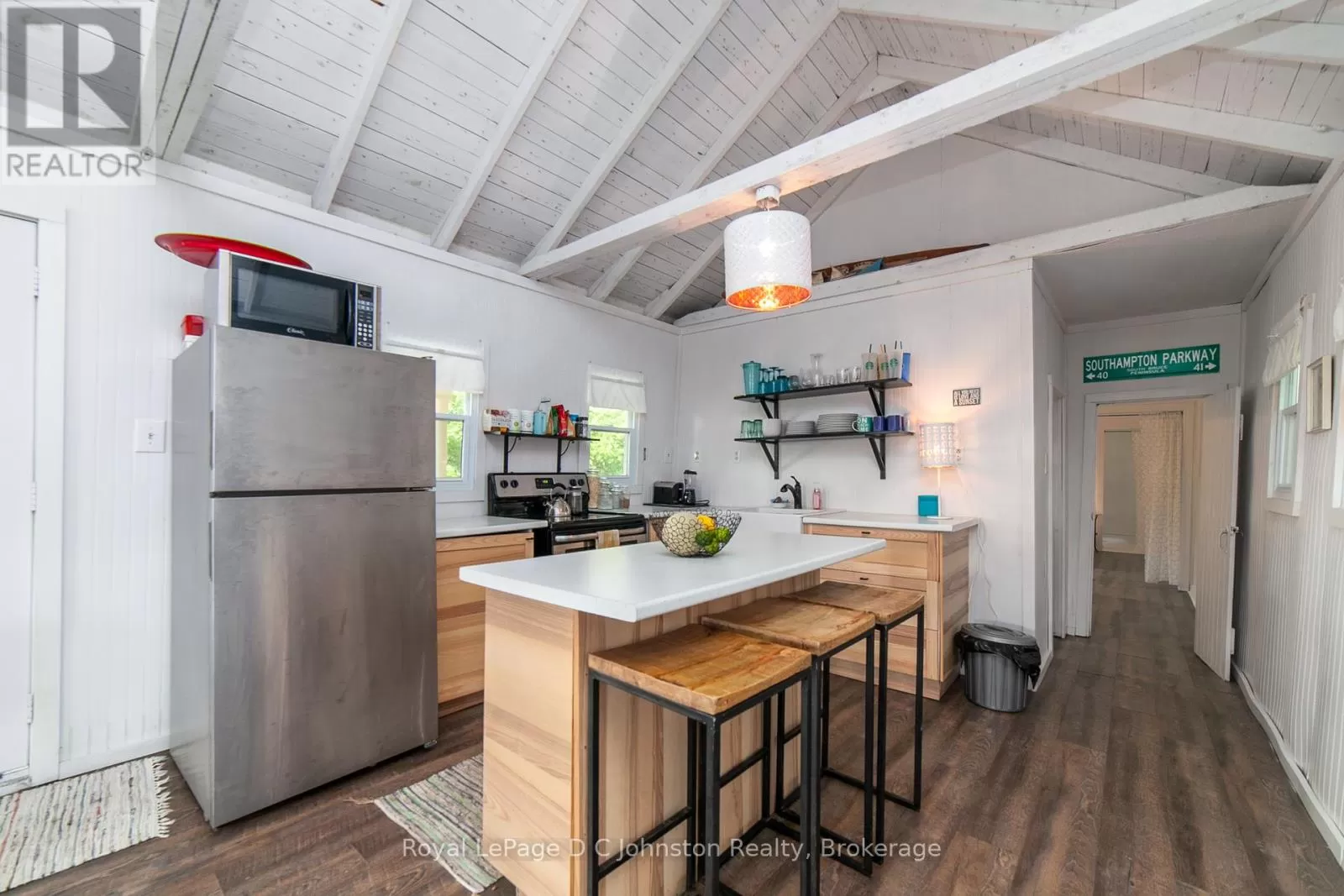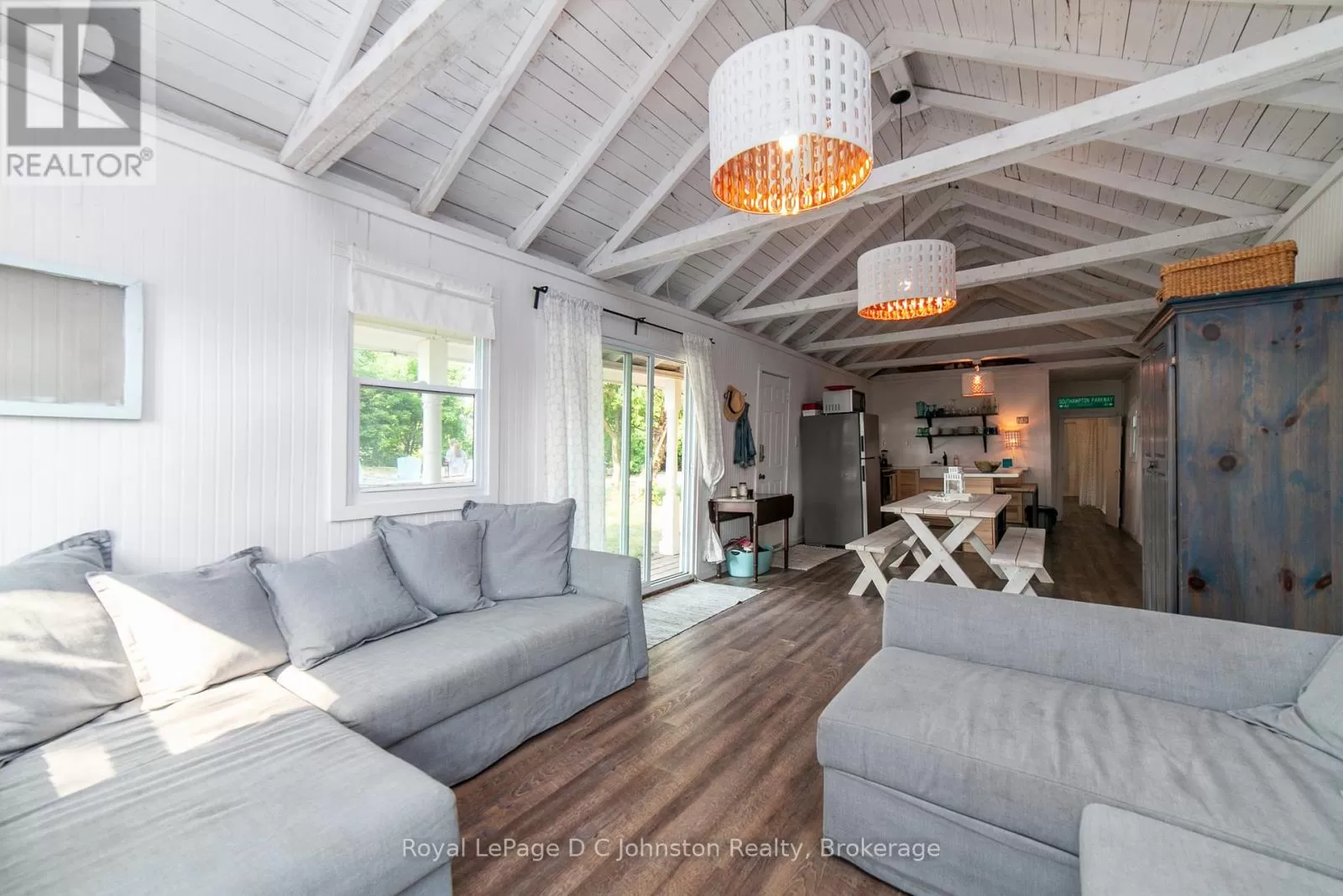 Cross Streets: 2nd Ave & 10th St S. ** Directions: From Sauble Beach head South on Bruce Road 13 (Southampton Pkwy) turn West on 9th st S, Turn South on 2nd Ave S, West on 10th St S, Turn North on 5th Ave S - Cottage on left #105. A Waterfront Beach Oasis! A leased land cottage near Sauble Beach is proudly being offered For Sale. Every little detail has been considered, from a yellow door representing the sun, blue shingles for the sky and white cedar shakes for the sand. The interior reflects the same beach house theme, complete with 3 bedrooms and 1 bathroom. Extensively renovated in 2017, the main living space has rebuilt floor supports, insulation, a new kitchen, some windows, bathroom, and vinyl plank flooring. East end bedroom new floor supports 2025. Shingles 2021. New approved holding tank 2024, updated 200-amp panel, and EV charger installed 2024. Extras: Bunkie + Storage Shed. Private Lot 85' Lake Frontage Fire Pit. Outdoor shower. Will consider selling furnished. 25 Yr Lease Until 2046. Current 5 Year Lease Rates of $9600/Year + $1200 Service Fee. (id:27476)