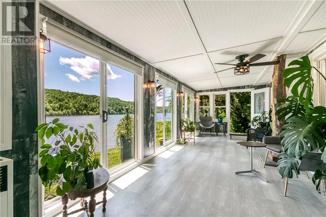 This extensively upgraded 3+1 bedroom, 2 full bathroom waterfront home is set on over an acre of beautiful flat land, offering panoramic lake views, a gentle slope to the shoreline, and a serene backdrop of untouched forest across the water. The bright, open-concept interior is filled with natural light and showcases expansive windows that bring the outdoors in. A large year round sunroom adds space great for entertaining, office, or quiet retreat. Outdoors, enjoy a vibrant, well-cared-for garden, producing second year cherry tree, apple trees, Hascap tree (15 cups) and raspberries (200+cups). With a detached garage and numerous thoughtful enhancements throughout, this private lakeside haven offers the perfect blend of comfort, tranquility, and natural charmâthe ideal year-round lake house. (id:27476)