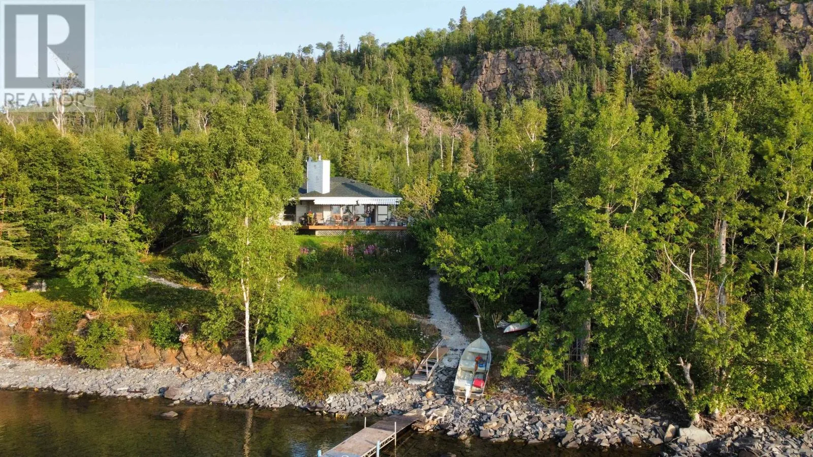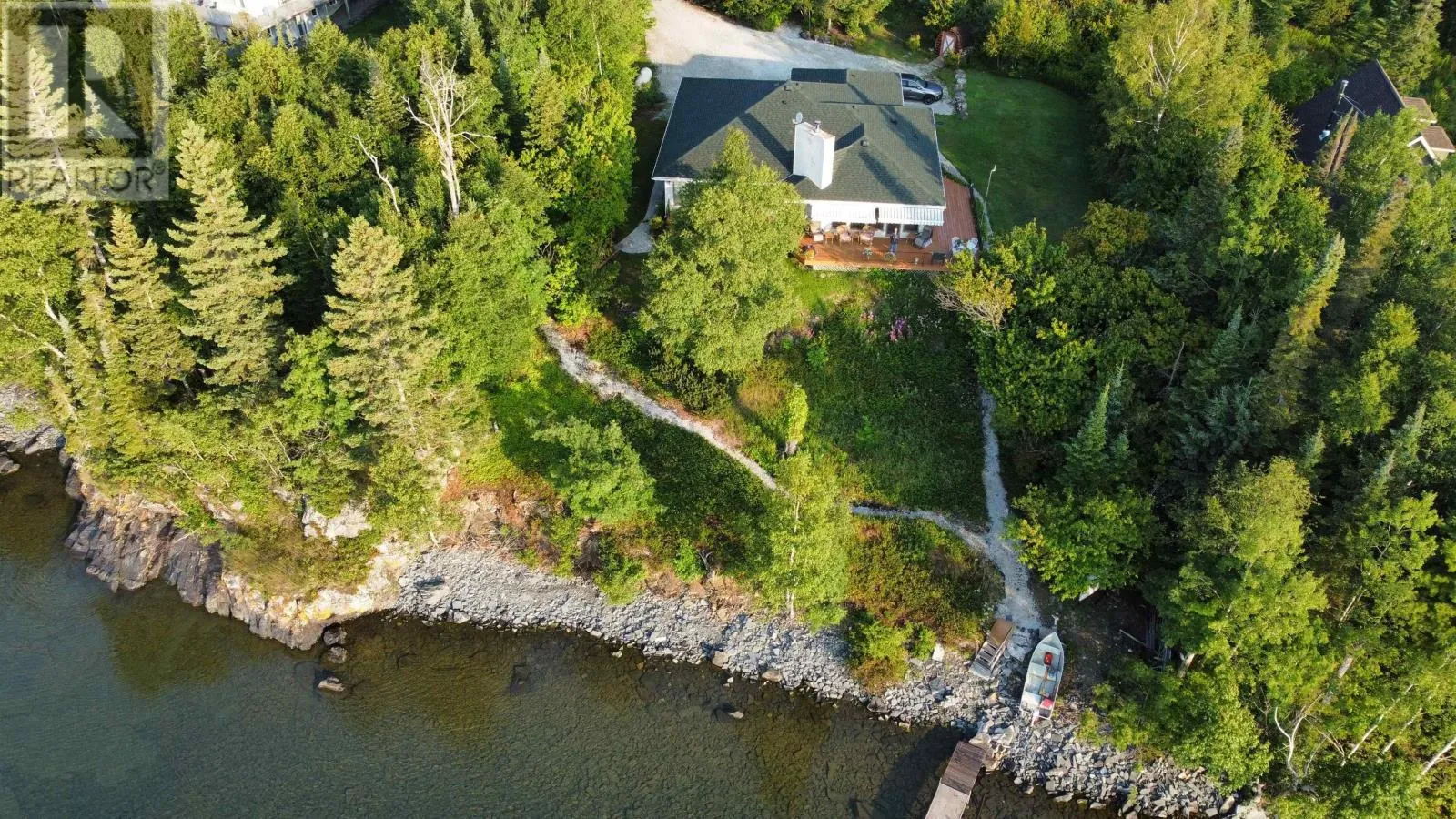 46 KLMS FROM THUNDER BAY AIRPORT HWY61 LEFT ON STURGEON BAY RD, RIGHT ON MINK MOUNTAIN DR., LEFT ON ISLAND AVE. You're Not Dreaming! This 1800 sq.ft. bungalow with a two car attached garage is on the market for the First time. Located on the North Shore of Lake Superior in exclusive Mink Mountain Estate homes. With a panoramic view of Islands to the East and Mink Mountain Cliffs to the West. Features include open concept living dining room, wood burning fireplace, jet tub, all appliances included, garden doors from dining area and primary bedroom to 1000 sq. ft. deck, and much more. A place to Breathe and Relax. DON'T MISS OUT ON THIS ONCE IN A LIFE TIME OPPORTUNITY! (id:27476)