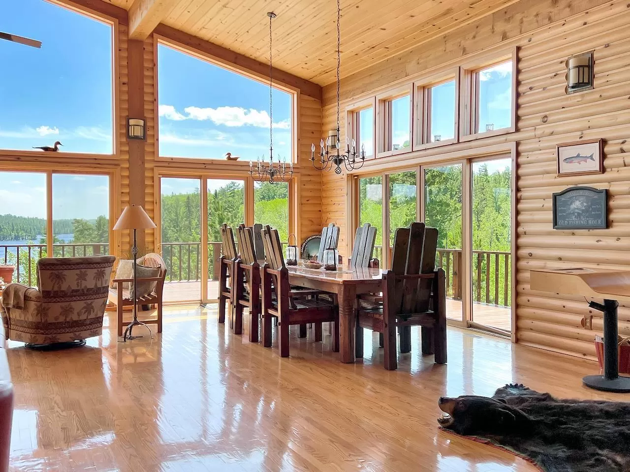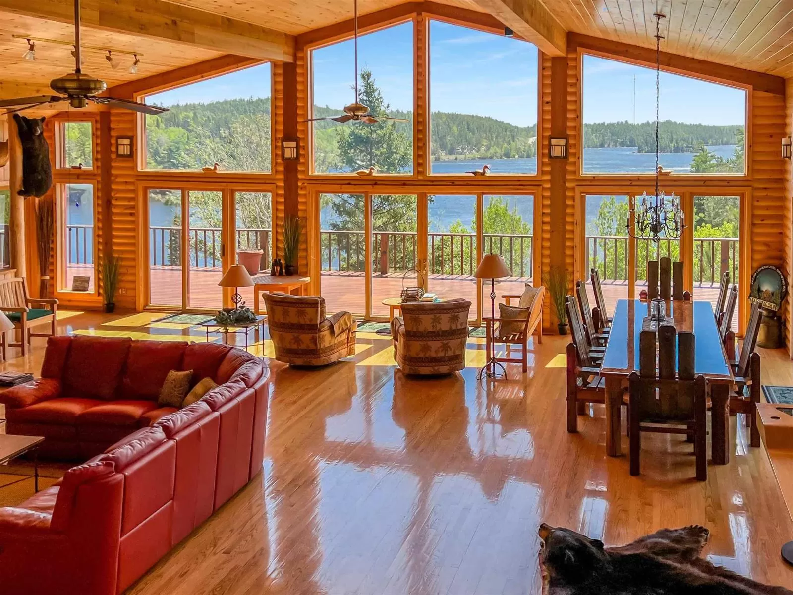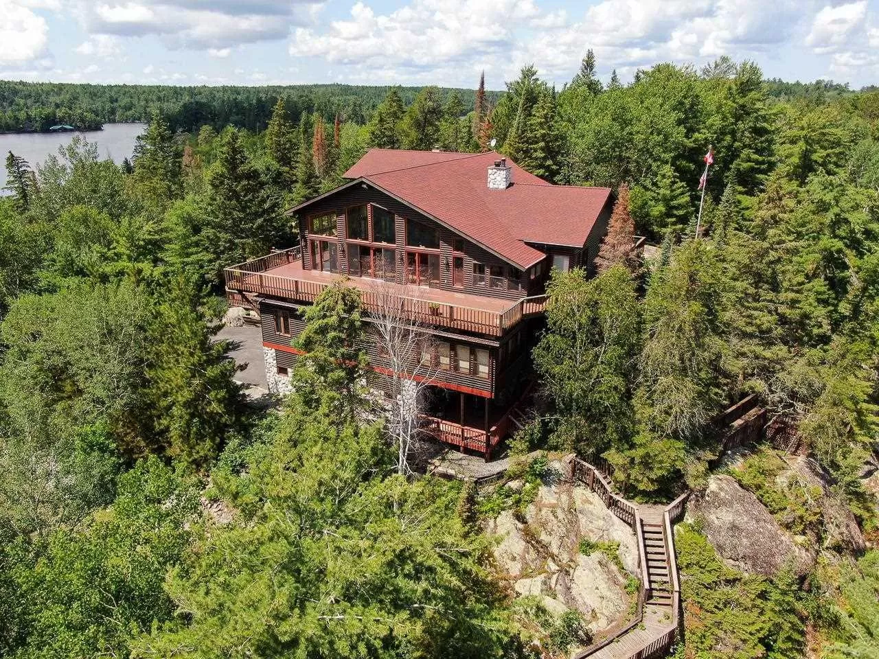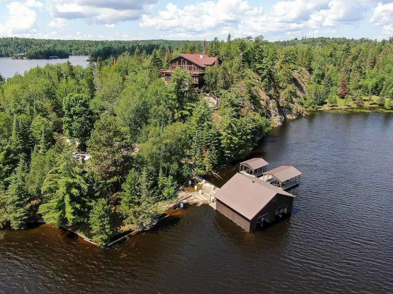 Sabaskong Bay Road, turn left on Marsh Bay Road. Driveway is on the left at the blue 60 sign. Located on Sabaskong Bay, Lake of the Woods, this exclusive estate promises an unparalleled living experience, blending luxurious comfort with the spirit of adventure that beckons every fishing and outdoor enthusiast. Spanning an impressive 6,500 sq. ft., this year-round sanctuary is thoughtfully designed to host large family gatherings or serve as a tranquil haven for the avid fisher. The heart of the home is a magnificent great room and dining area, boasting over 1,200 sq. ft. of space where panoramic views of the lake unfold through expansive windows. Vaulted ceilings and a majestic stone fireplace add to the roomâs grandeur, making it an ideal setting for memorable entertainment. Adjacent to it, a gourmet kitchen with a dedicated dining space opens onto a screened porch, offering a dining experience amidst the beauty of nature. The outdoor space is a realm of relaxation, featuring a grilling area, hot tub, and fire pit for cozy evenings under the stars. The main residence has four bedrooms, each a private retreat with its own ensuite bathroom, promising comfort and seclusion. The master suite is a testament to luxury, with a fireplace, walk-in closet, and an ensuite bathroom equipped with a jacuzzi, shower, and double vanity. Two screened-in porches, including one accessible from the master bedroom, offer a unique opportunity for sleeping under the whisper of the breeze, enclosed by all-weather windows for year-round enjoyment. Accompanying the main residence is a charming 1,300 sq. ft. guest cabin, nestled among majestic white pines and perched at the waterâs edge. It comprises three cozy bedrooms and two bathrooms, providing additional space for guests or as a serene lakeside retreat. The propertyâs crown jewel for fishing aficionados is the two-stall floating boathouse, complete with boat lifts and additional loft space, flanked by two covered boat slips, ensuring that your fishing expeditions start and end with utmost ease. (id:27476)