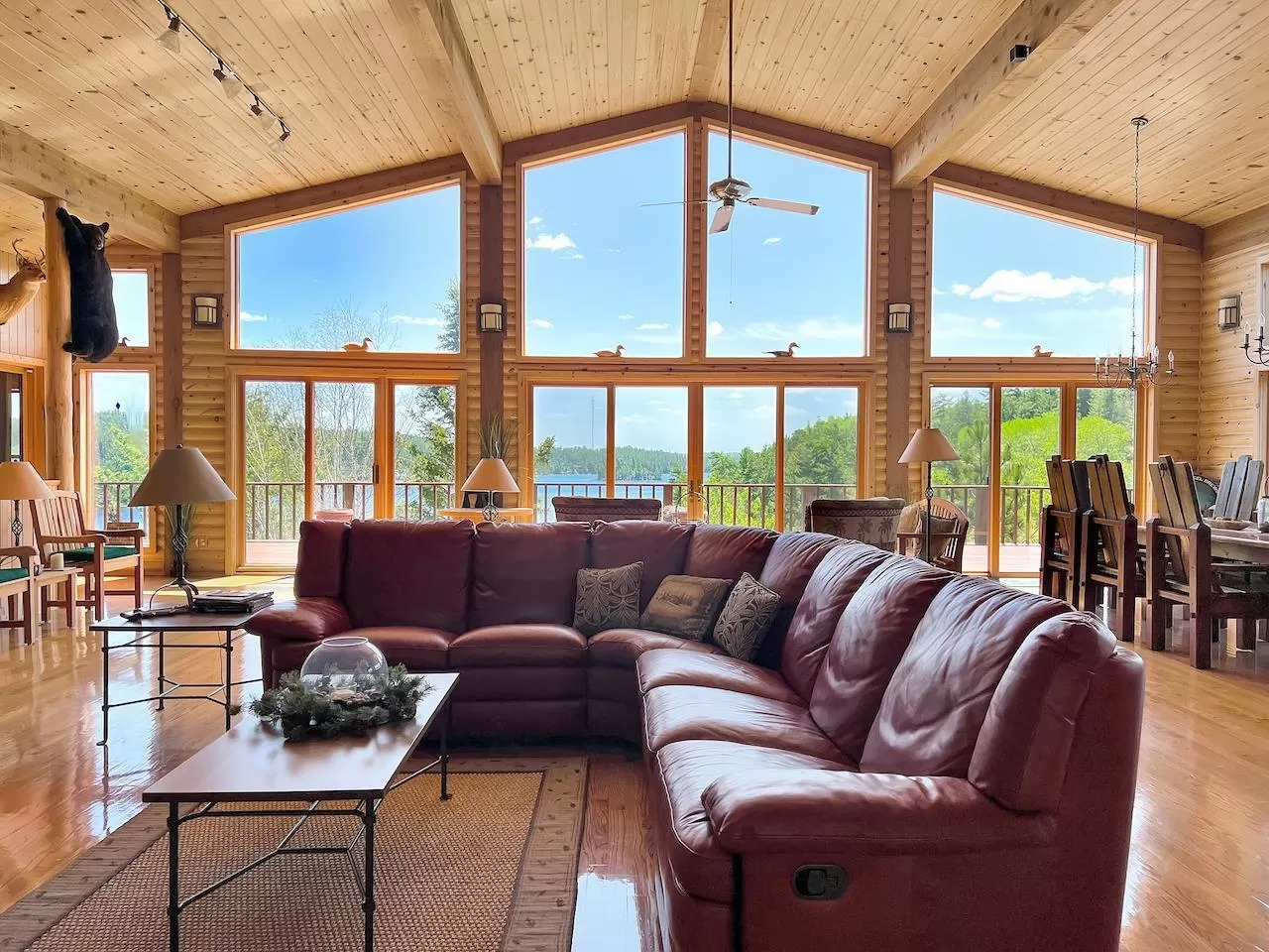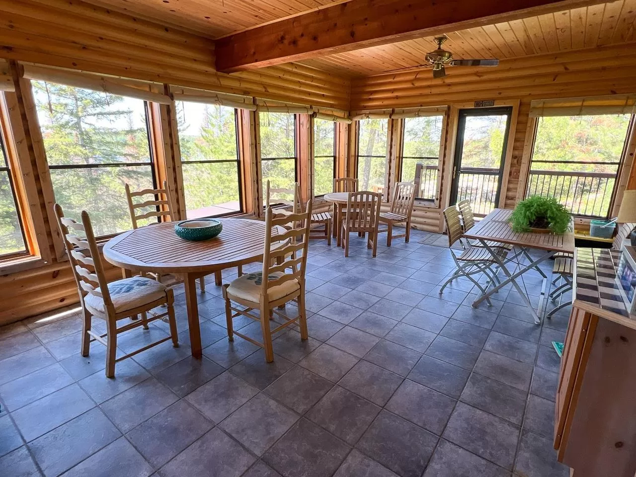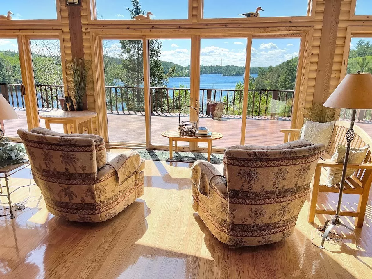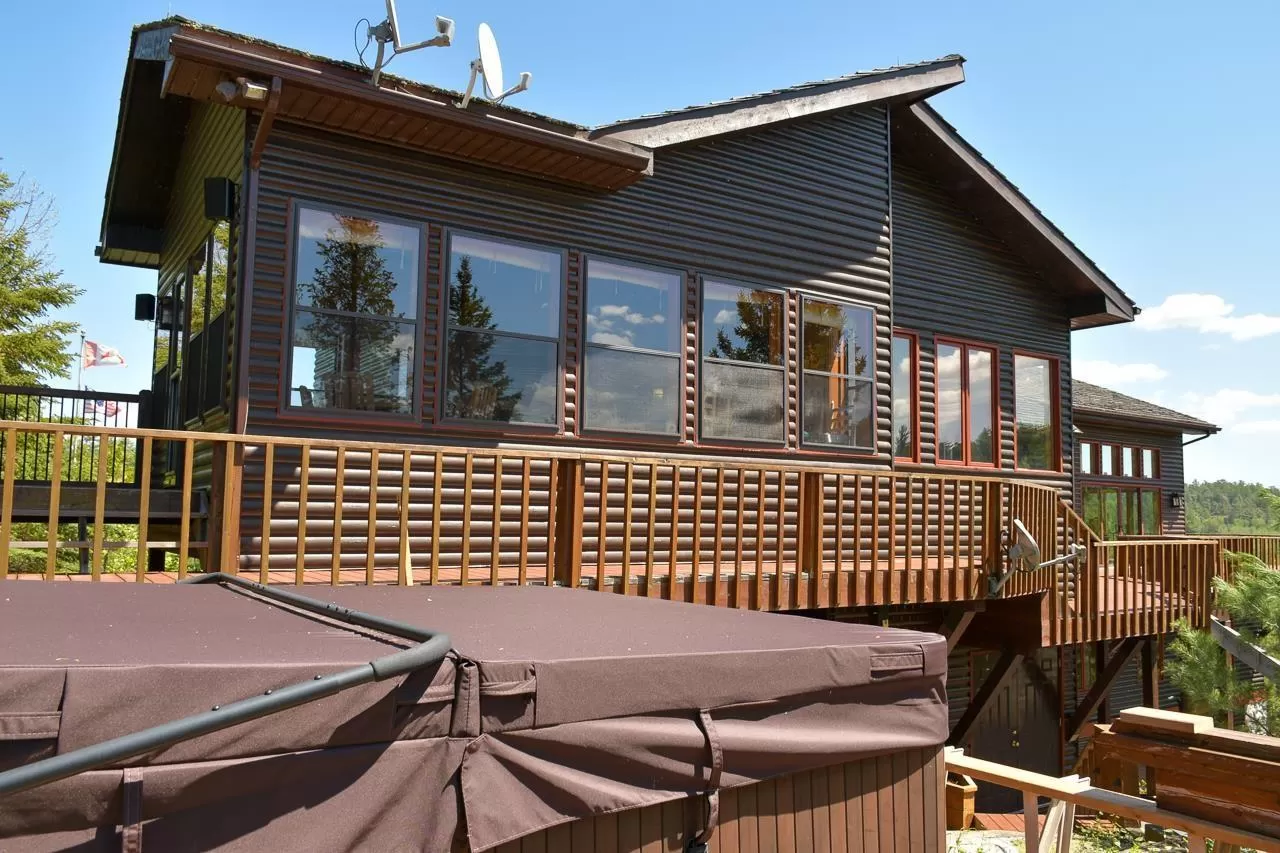 Sabaskong Bay Road, turn left on Marsh Bay Road. Driveway is on the left at the blue 60 sign. Located on Sabaskong Bay, Lake of the Woods, this exclusive estate promises an unparalleled living experience, blending luxurious comfort with the spirit of adventure that beckons every fishing and outdoor enthusiast. Spanning an impressive 6,500 sq. ft., this year-round sanctuary is thoughtfully designed to host large family gatherings or serve as a tranquil haven for the avid fisher. The heart of the home is a magnificent great room and dining area, boasting over 1,200 sq. ft. of space where panoramic views of the lake unfold through expansive windows. Vaulted ceilings and a majestic stone fireplace add to the roomâs grandeur, making it an ideal setting for memorable entertainment. Adjacent to it, a gourmet kitchen with a dedicated dining space opens onto a screened porch, offering a dining experience amidst the beauty of nature. The outdoor space is a realm of relaxation, featuring a grilling area, hot tub, and fire pit for cozy evenings under the stars. The main residence has four bedrooms, each a private retreat with its own ensuite bathroom, promising comfort and seclusion. The master suite is a testament to luxury, with a fireplace, walk-in closet, and an ensuite bathroom equipped with a jacuzzi, shower, and double vanity. Two screened-in porches, including one accessible from the master bedroom, offer a unique opportunity for sleeping under the whisper of the breeze, enclosed by all-weather windows for year-round enjoyment. Accompanying the main residence is a charming 1,300 sq. ft. guest cabin, nestled among majestic white pines and perched at the waterâs edge. It comprises three cozy bedrooms and two bathrooms, providing additional space for guests or as a serene lakeside retreat. The propertyâs crown jewel for fishing aficionados is the two-stall floating boathouse, complete with boat lifts and additional loft space, flanked by two covered boat slips, ensuring that your fishing expeditions start and end with utmost ease. (id:27476)