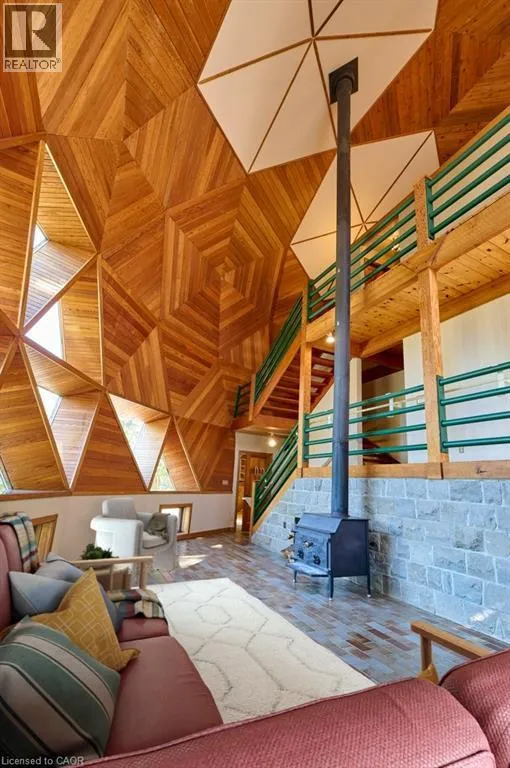 Bridge St to Meadowbrook Set at the end of a quiet cul-de-sac, this Geodesic Dome offers a retreat-like setting on 3.4 acres of private land. Nearly 500 feet of river frontage stretches along the propertyâs edge, with your own forest walking trail following the riverbank, creating a sense of peace and connection to nature. The home itself reflects the vision of Buckminster Fuller, designed for efficiency, strength, and harmony with the environment. The 20-inch exterior walls, insulated with spray foam, provide outstanding efficiency and comfort. The bulk of the many windows face south to take advantage of the sun, while a decorative concrete block wall inside acts as a natural heat sink, storing warmth during the day and releasing it slowly into the evening. A dramatic soaring ceiling with exposed wood beams and a warm wood-clad interior create a welcoming atmosphere, with natural light flooding the open spaces and framing views of the forest and river. Adding to the uniqueness of the property, a second dome forms part of the cluster of geodesic design. This insulated garage not only accommodates vehicles, it can also be heated for use as a workshop and includes a loft space for storage or projects. The walk-out basement provides additional living area with plenty of potential to finish and customize. Water service is supplied by a well, with a cistern for gardening needs, and a municipal connection is also available if desired. Every aspect of this property blends architectural significance with everyday function. From the super-efficient dome design to the natural sanctuary along the river, this home is more than a residence, it is an inspiring place to live, create, and connect. (id:27476)