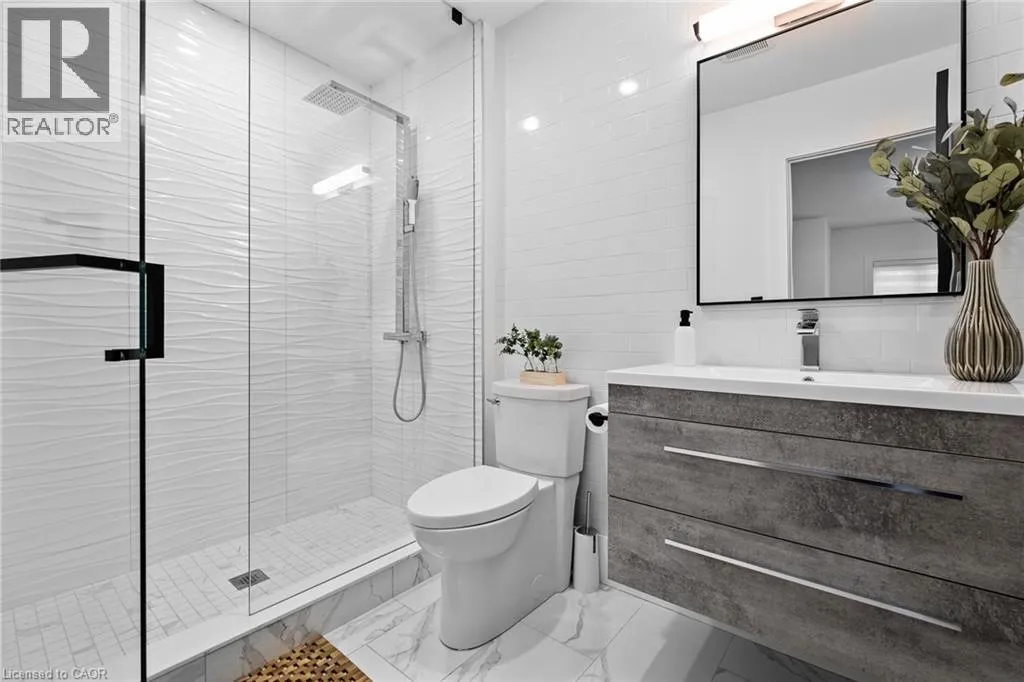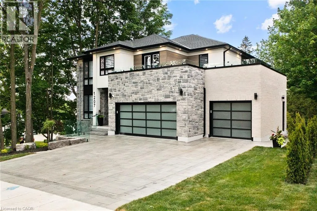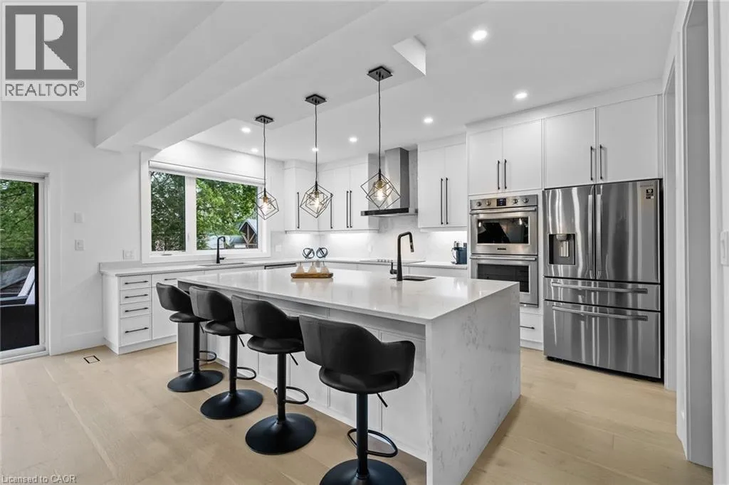 From Bridge Street, turn left onto Queen located between North and Water Streets Welcome to this beautiful executive home in the quiet village of New Dundee. CUSTOM-BUILT HOME that EPITOMIZES LUXURY. The open concept floor plan features marble & engineered flooring throughout. A front den, powder room, & bright living room, w/ striking feature wall. The kitchen offers a large center island, QUARTZ countertops w/ waterfall feature, and backsplash. STAINLESS APPLIANCES, soft-close mechanisms, a dream walk-in pantry, & a convenient mudroom that provides access to the triple garage, boasting epoxy flooring, & a TANDEM DRIVETHROUGH FEATURE. Double slider doors lead you to the COMPOSITE DECK, where you can relax and enjoy the serene views of Alder Lake in the background. Admire the GRAND SOLID WOOD STAIRCASE, adorned w/ open tread risers, GLASS SLAB ACCENT RAILINGS, & a stunning brick veneer backdrop that spans all three levels. The upper level offers three spacious bedrooms, each w/ its own walk-in closet & ensuite bathroom. Don't miss the private access through the loft, leading you to a ROOFTOP TERRACE. The primary bedroom, accessed through double doors boasts two walk-in closets, & a LUXURIOUS 5-PIECE ENSUITE w/ a floating tub & separate shower. The private access to your own primary balcony allows for INCREDIBLE VIEWS. The lower level has been thoughtfully arranged to include a full kitchen, two bedrooms (one currently serves as an office), a separate laundry area, & a full 3-piece bathroom. FULL WALKOUT w/ access to a stone patio, hot tub, & a fire pit area, all within a fully fenced lot. Just minutes away from all the conveniences. (id:27476)